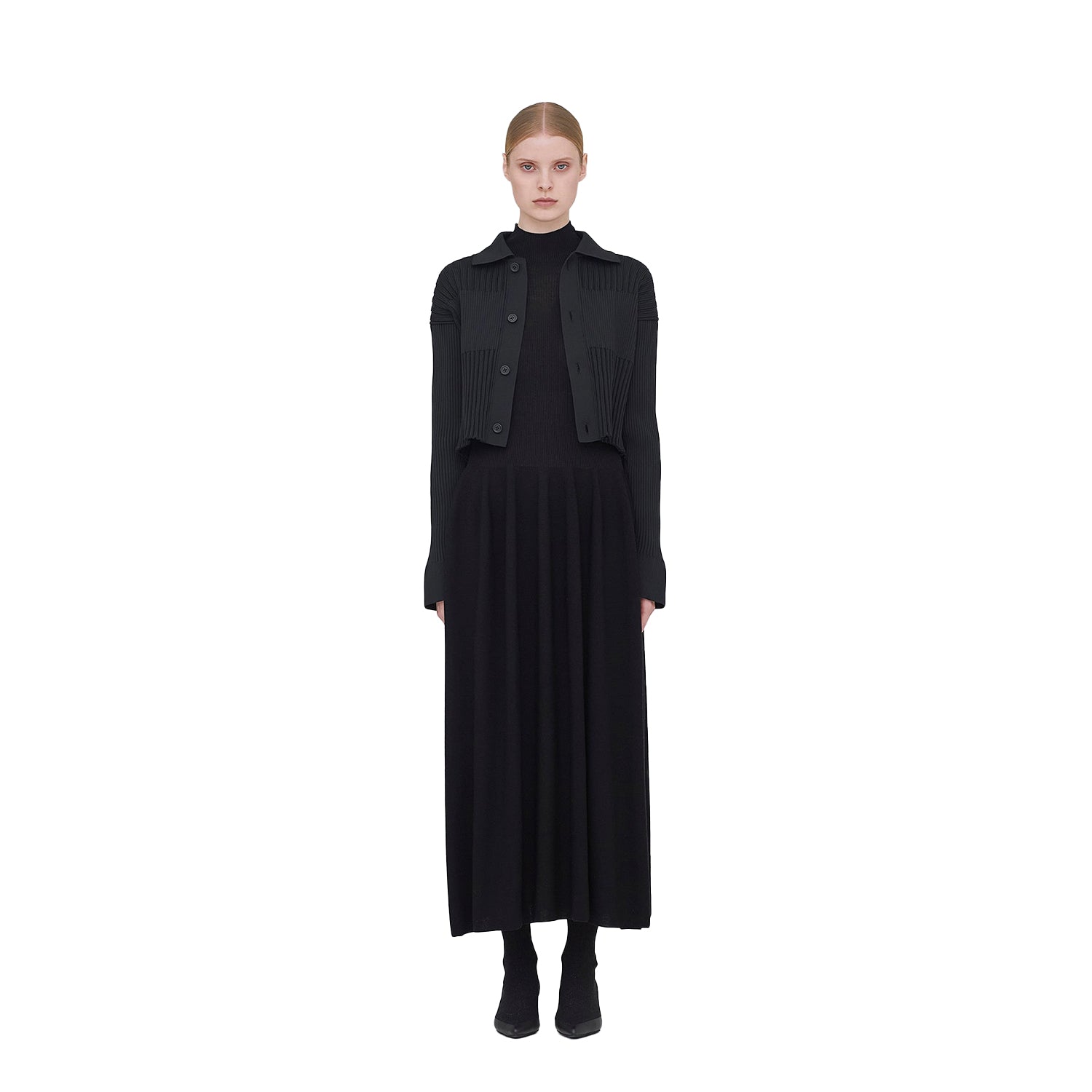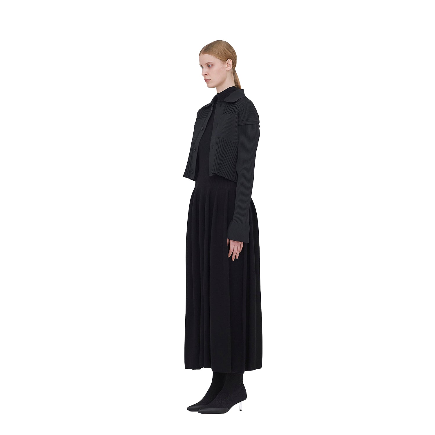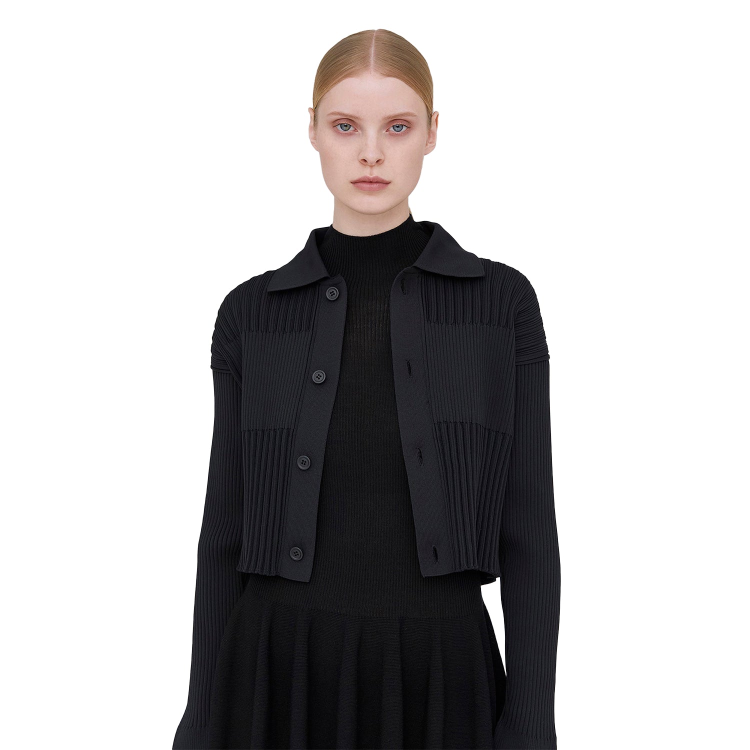Fluted Cropped Shirt Cardigan
