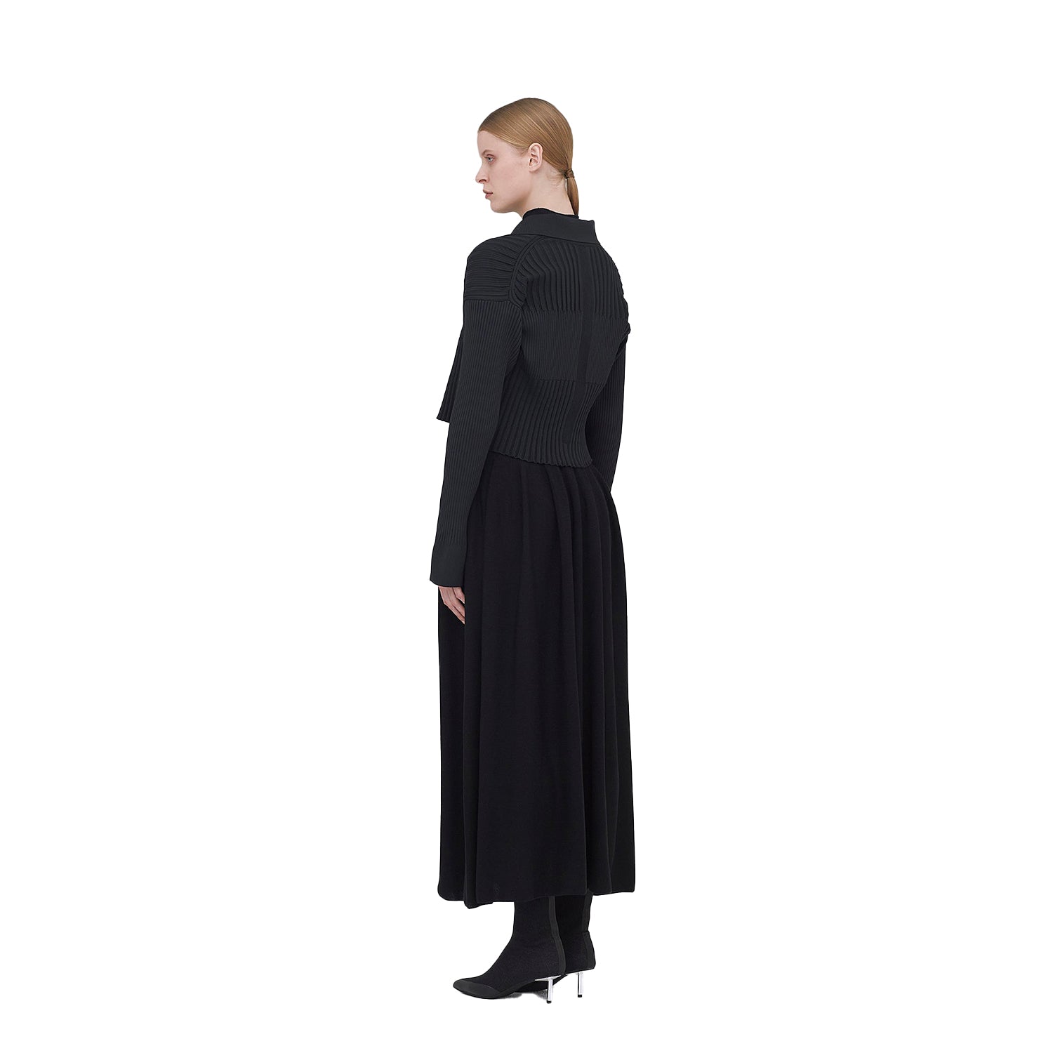 ・Unique silhouette created by 2 different types of elastic rib