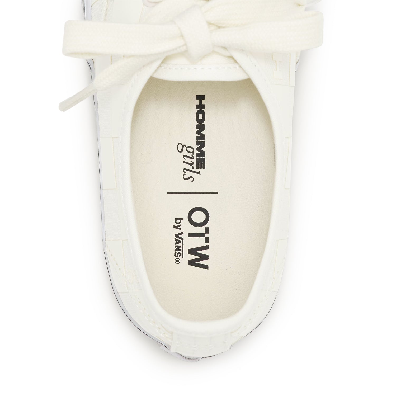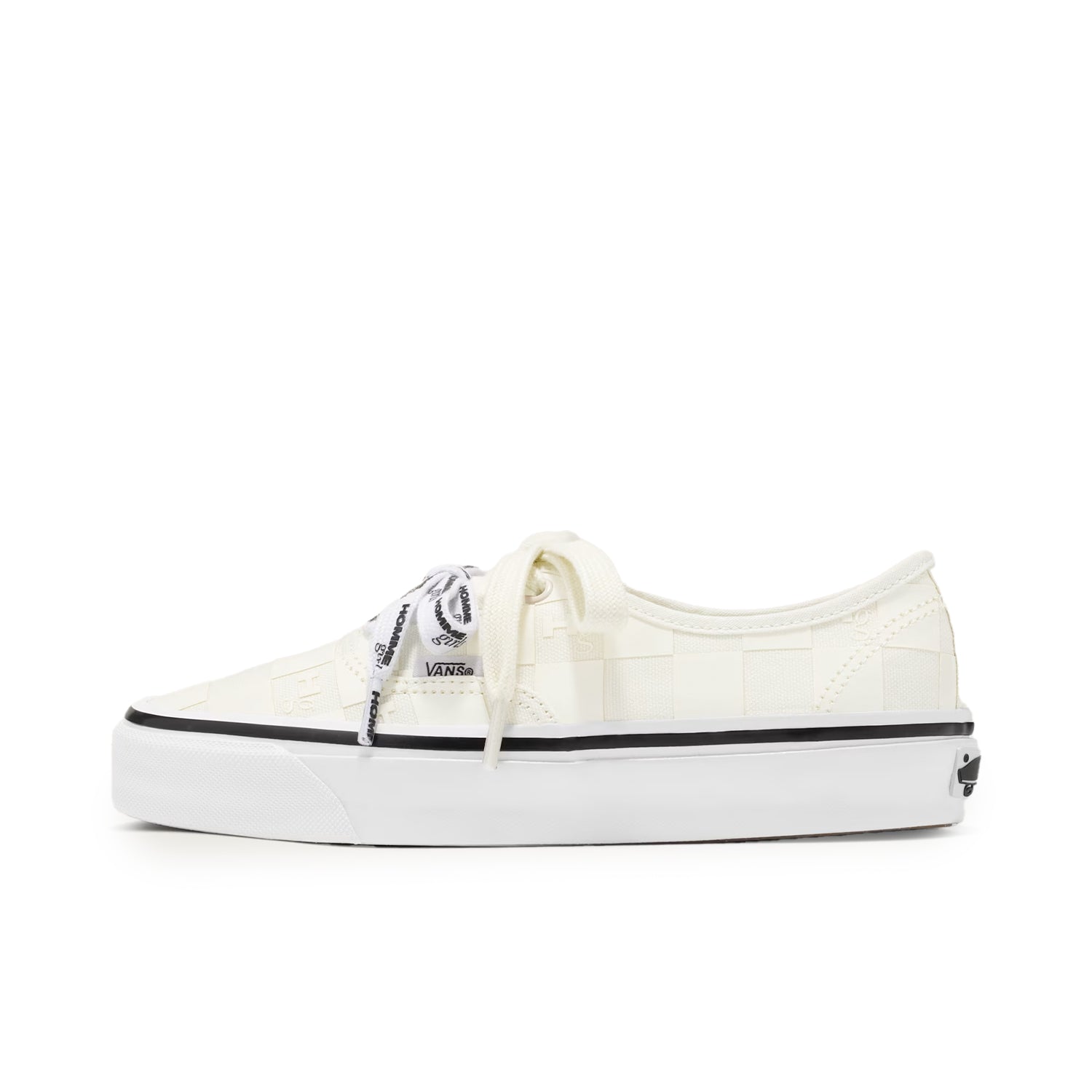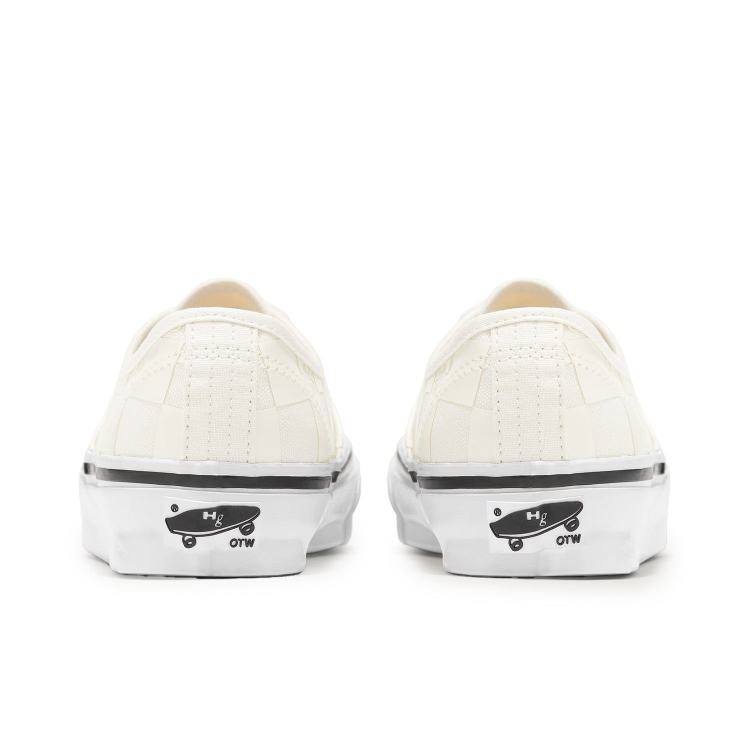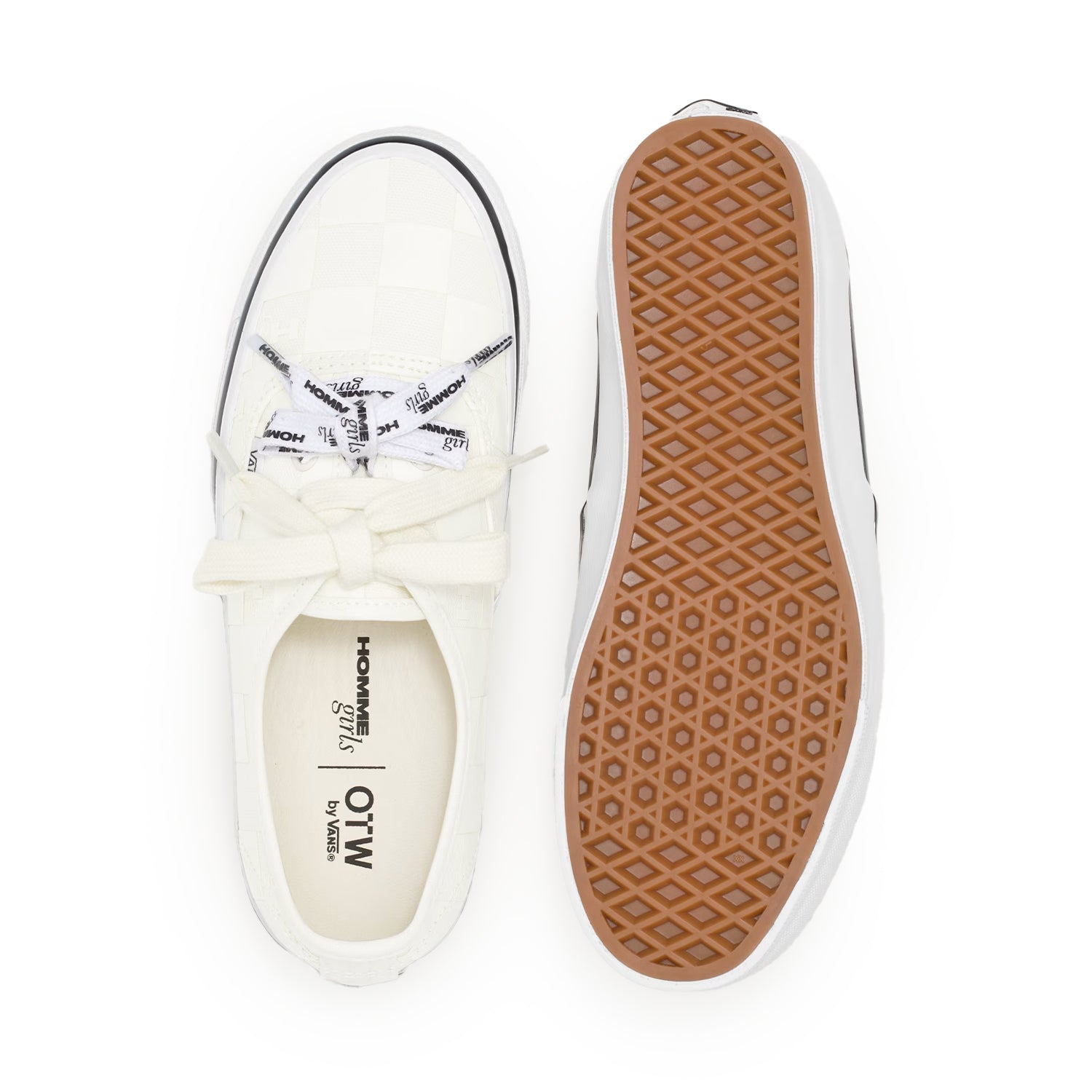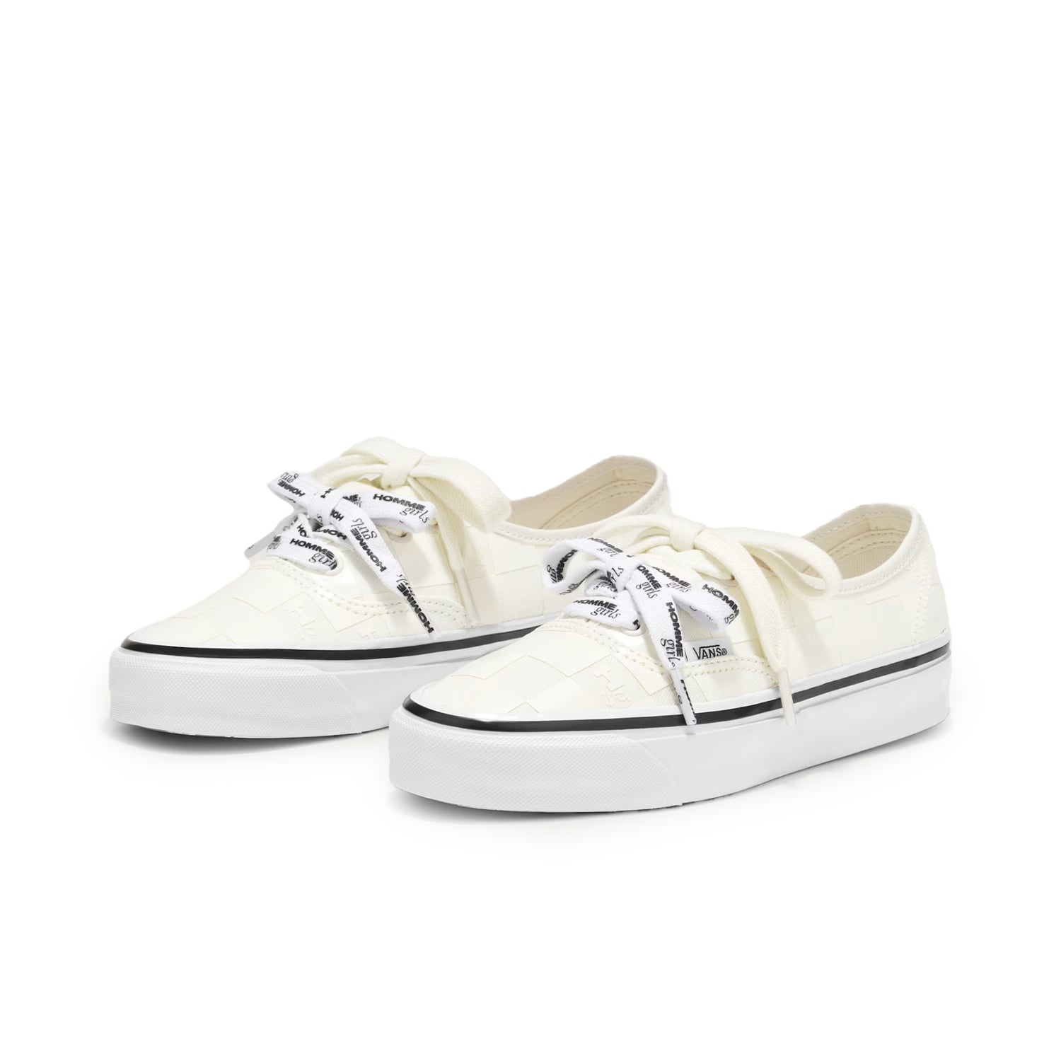 The Authentic reimagined throught the HommeGirls lens. Off-white tonal checkerboard, layered textures, and doubled lace option bring new depth to a Vans icon—finished with a cushioned insole and a refined fit.