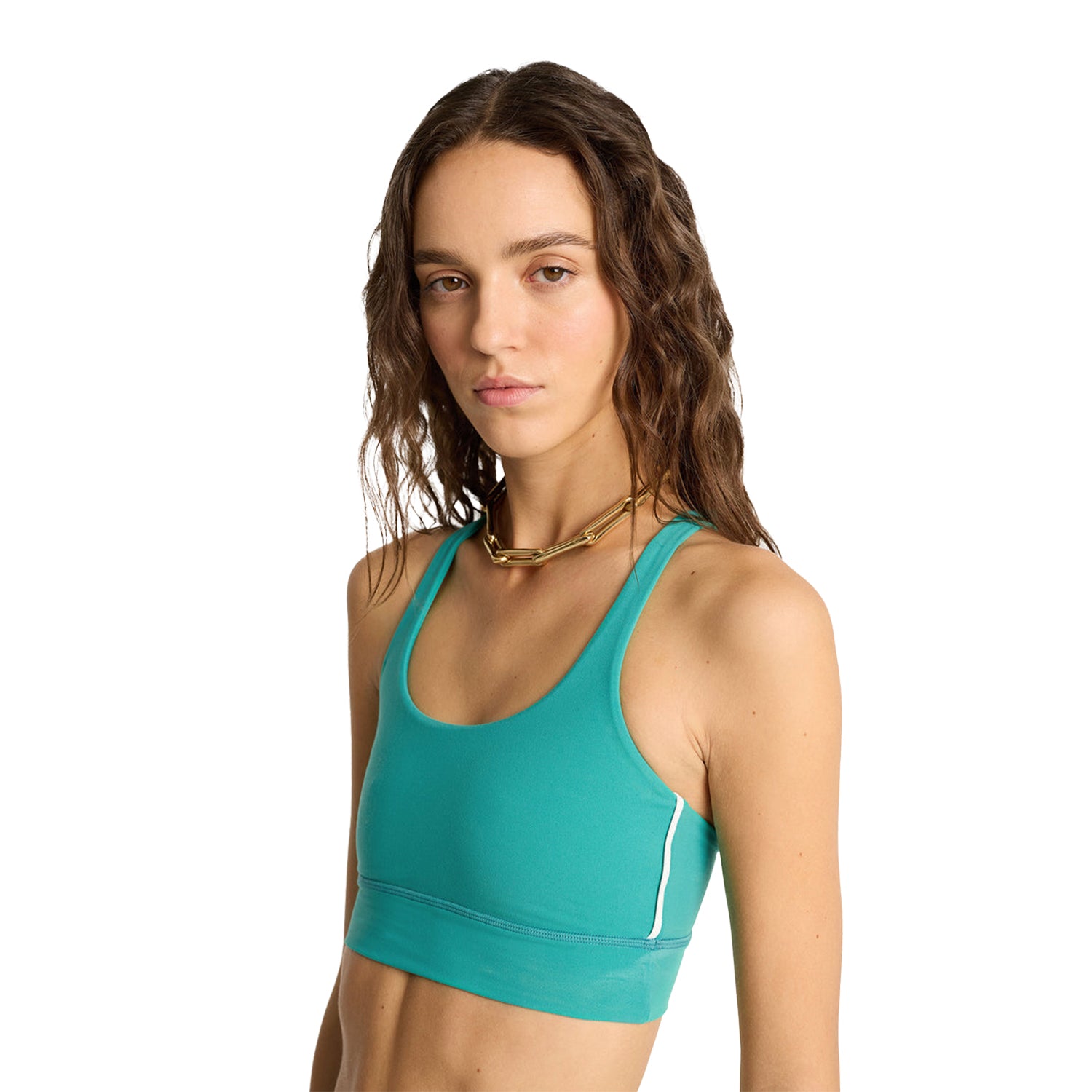 This sports bra is ideal for all kinds of sports and activities, providing great support and comfort thanks to its luxurious fabric. Contrasted piping on the sides.