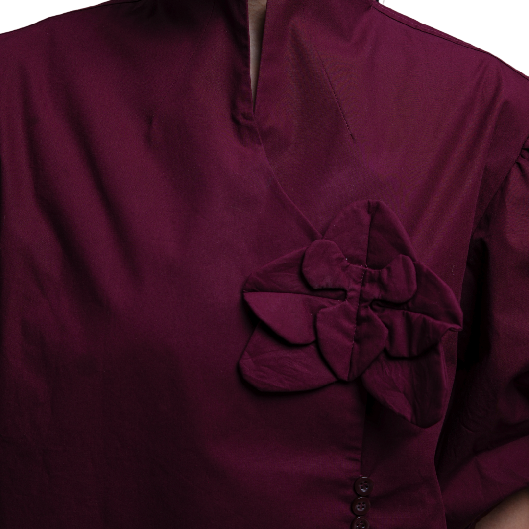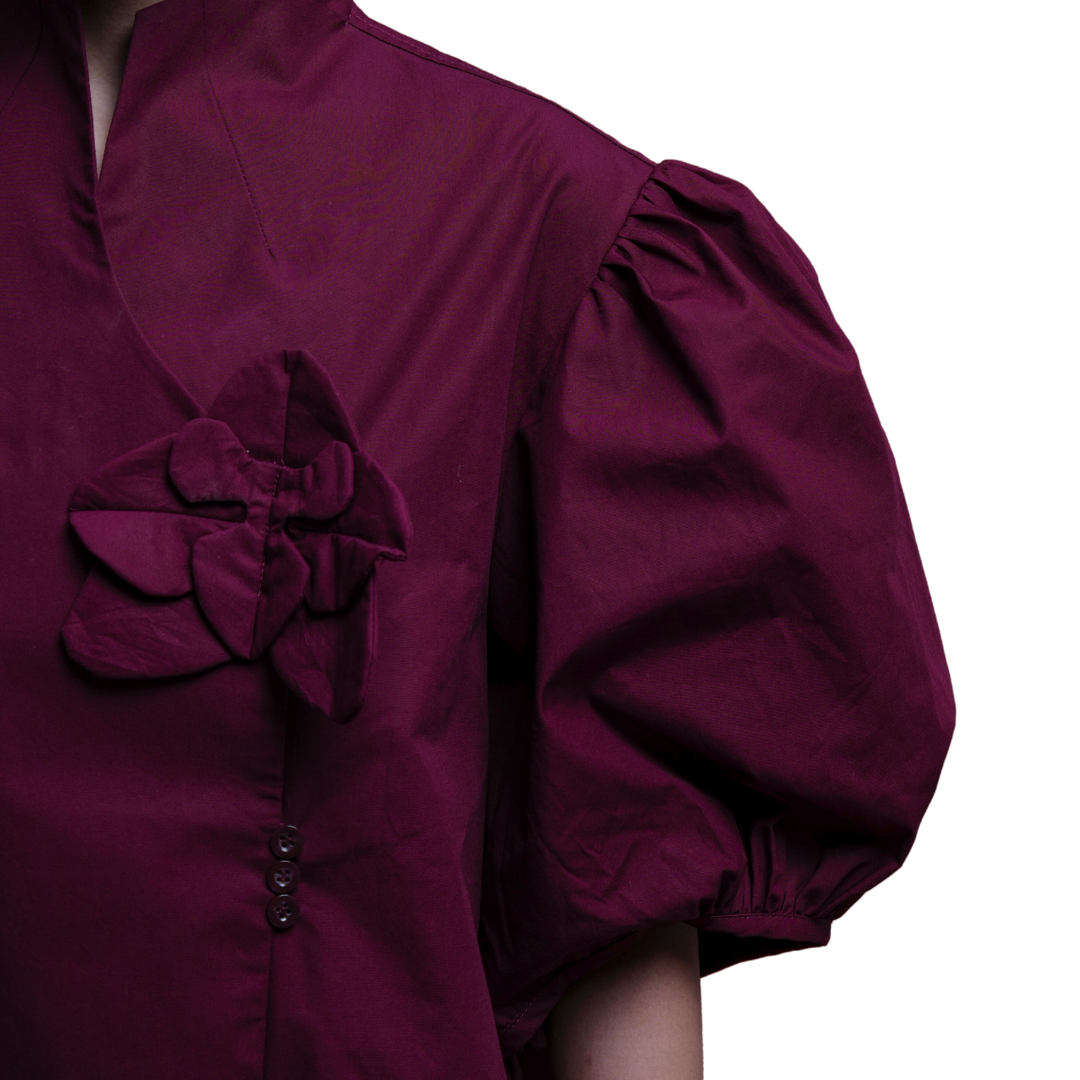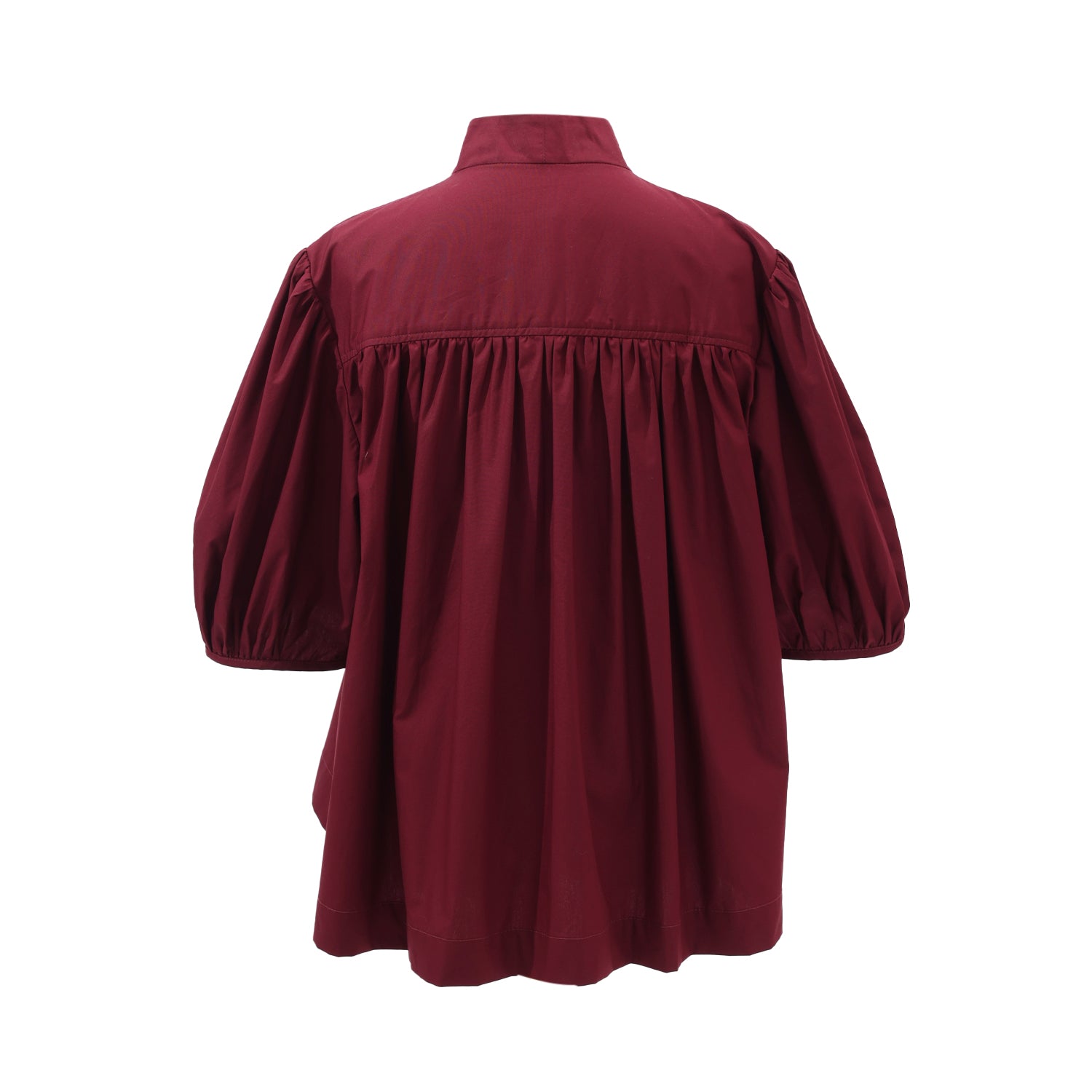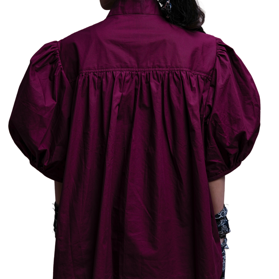 "Aru" means "to exist" in Japanese—a quiet nod to presence, to simply being. Designed with a boxy silhouette, long puff sleeves, and ruffle detailing along the back, the Aru Shirt blends historical references with everyday ease. Its cheongsam-inspired front opening and mandarin-style collar add a refined touch rooted in tradition.
