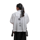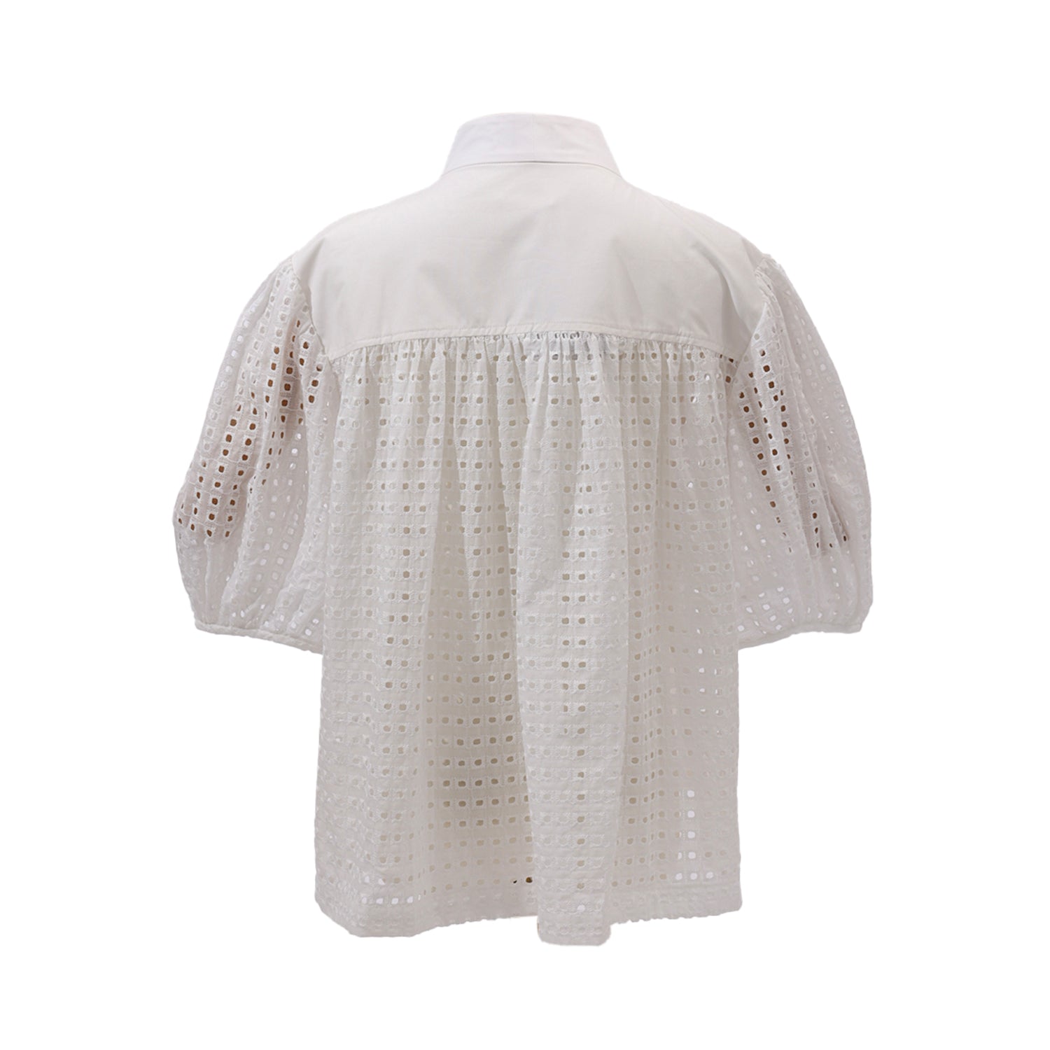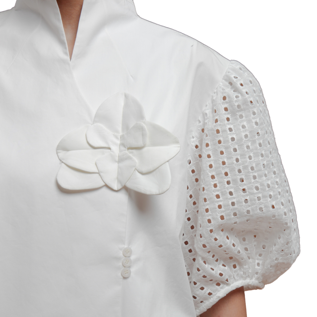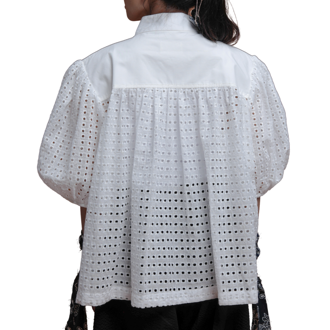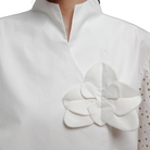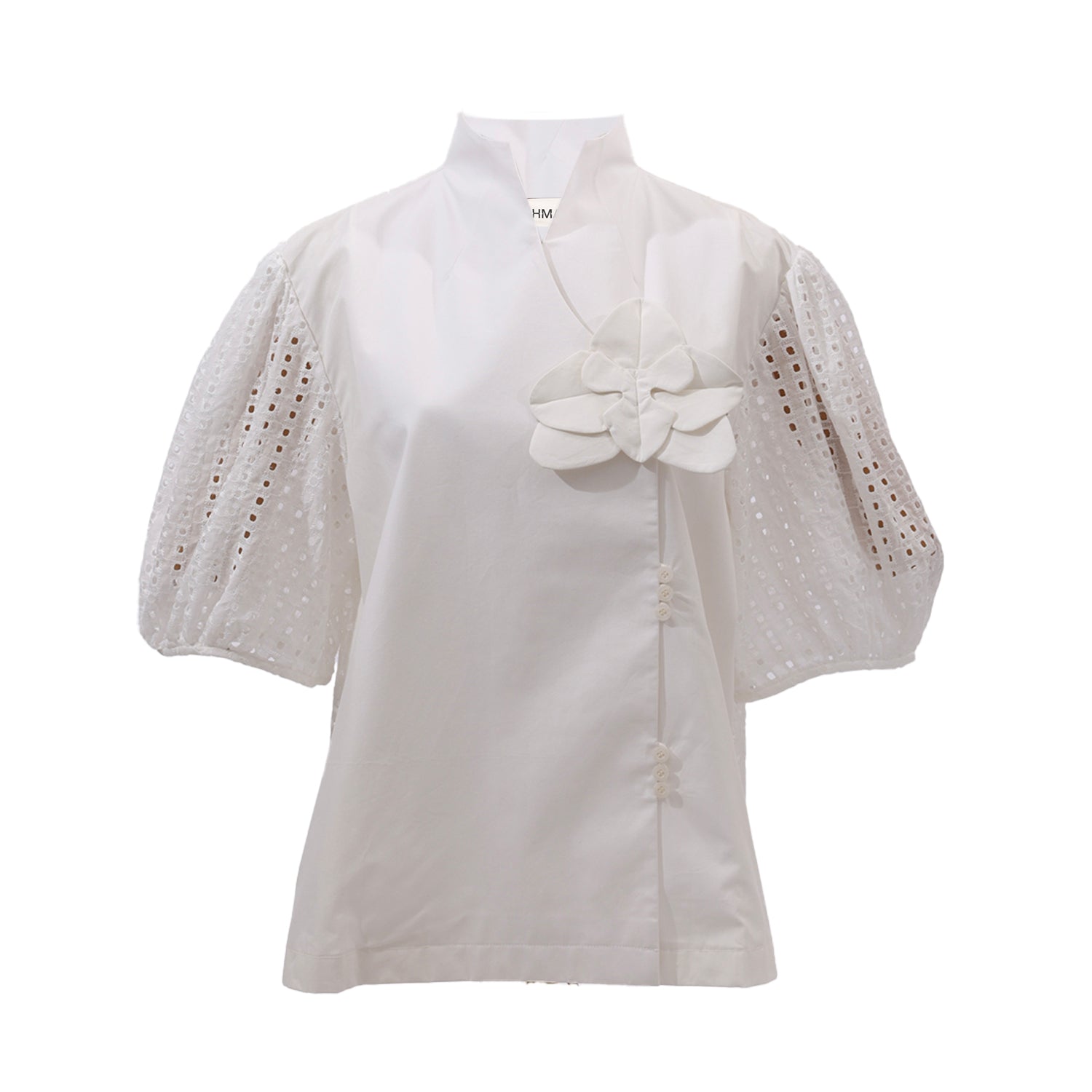 "Aru" means "to exist" in Japanese—a quiet nod to presence, to simply being. Designed with a boxy silhouette, long puff sleeves, and ruffle detailing along the back, the Aru Shirt blends historical references with everyday ease. Its cheongsam-inspired front opening and mandarin-style collar add a refined touch rooted in tradition.