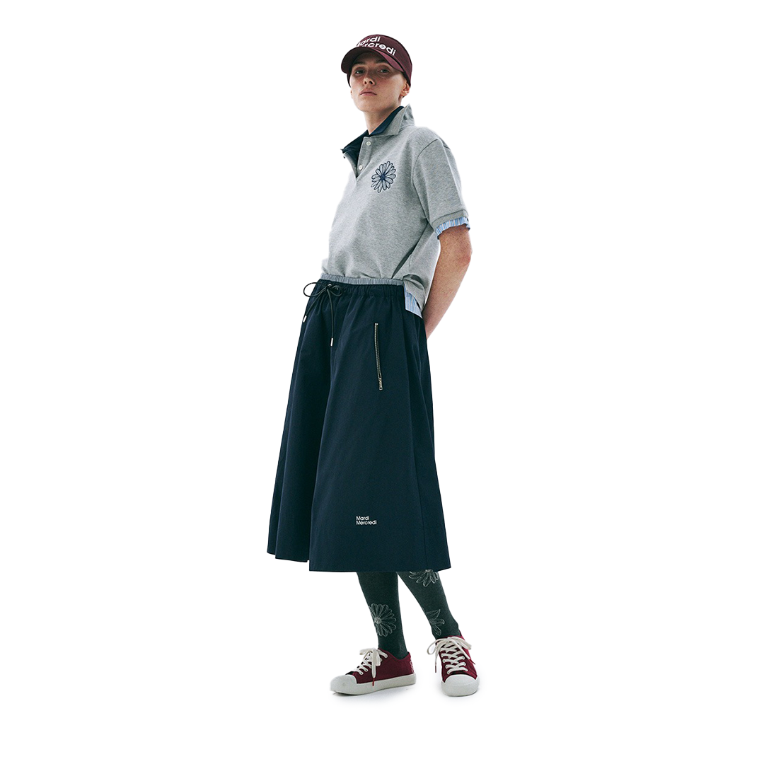 Double Waisted Logo Printed Midi Skirt