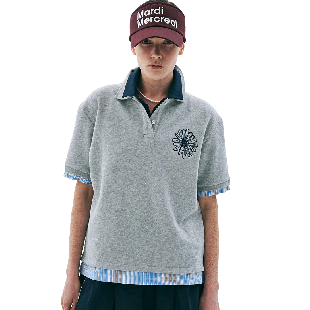 Layered Piquet T-Shirt Flower Needlework