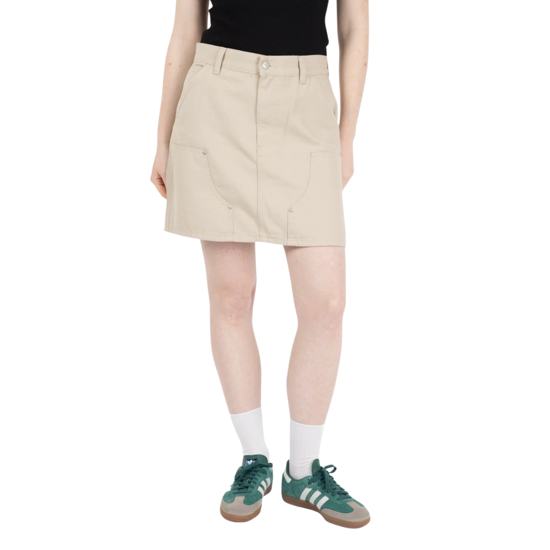 The Women's Maeve Double Knee Skirt is made from midweight, stone-washed cotton canvas in a straight fit with a high waist. Triple-stitched details, metal rivets, and double-layer knees nod to the item's utilitarian roots. A woven Square Label appears on the rear pocket.