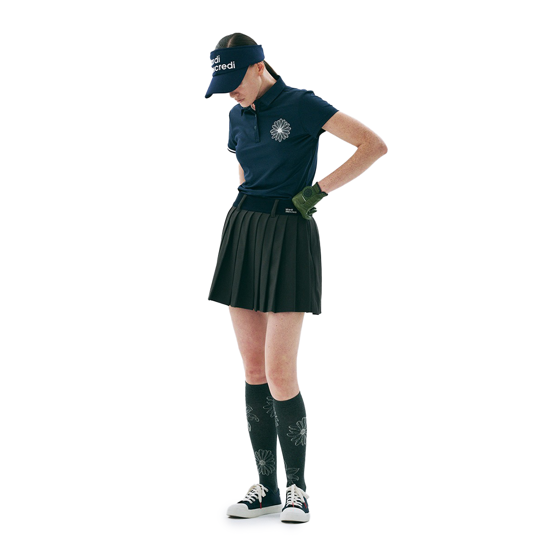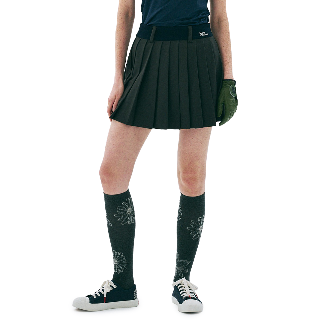 Waist Logo Needlework Pleats Mini Skirt