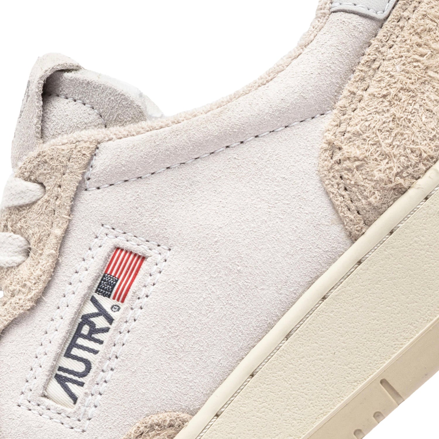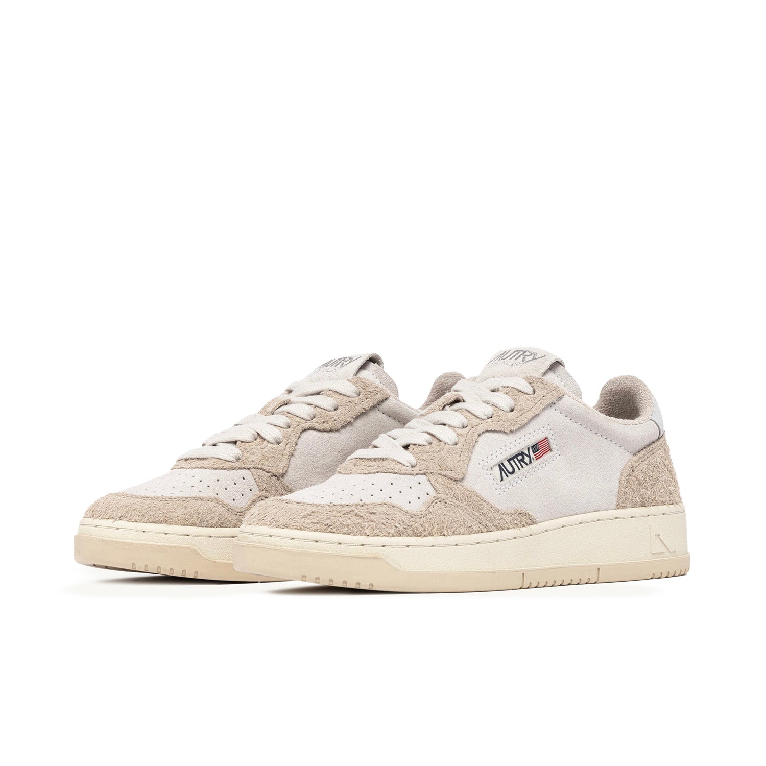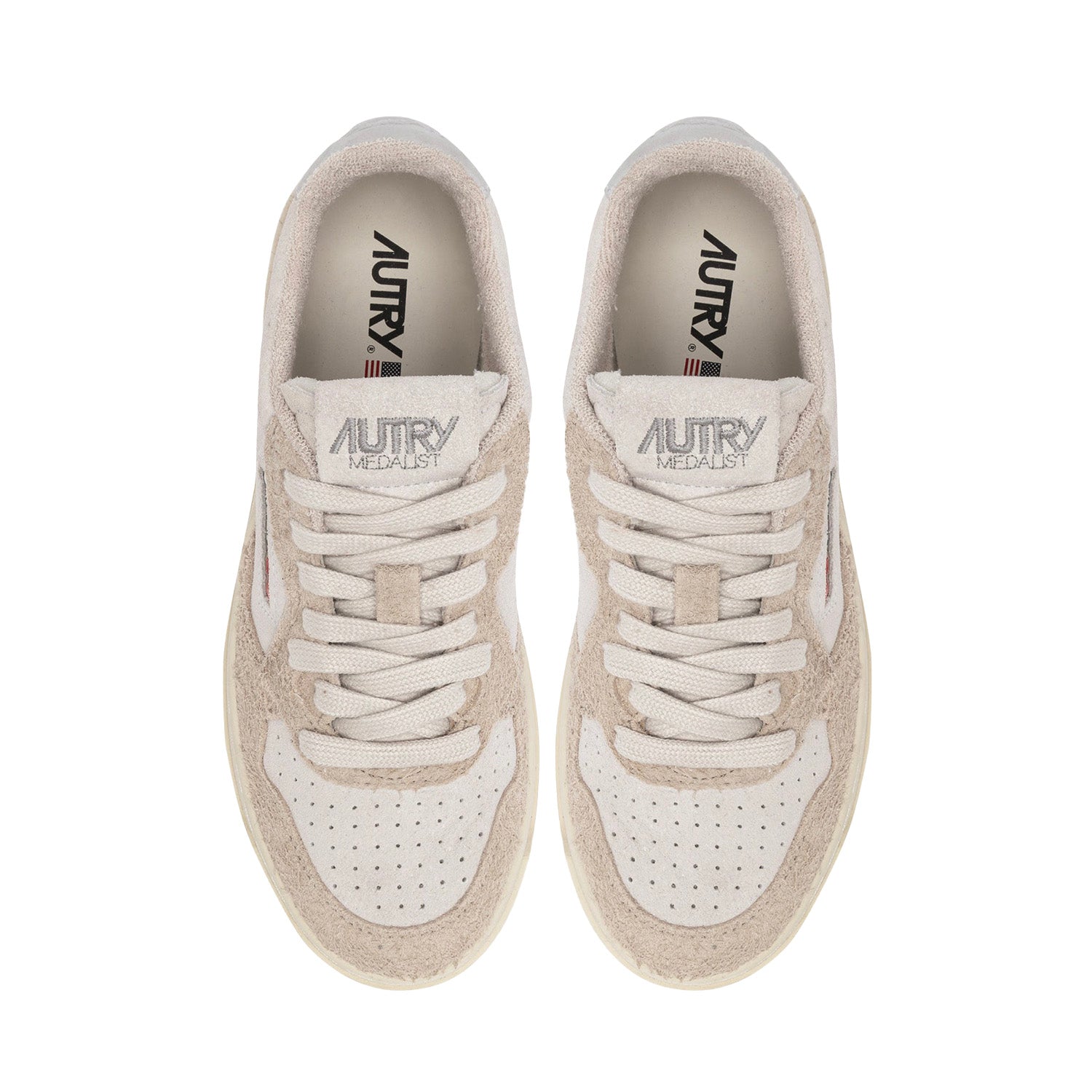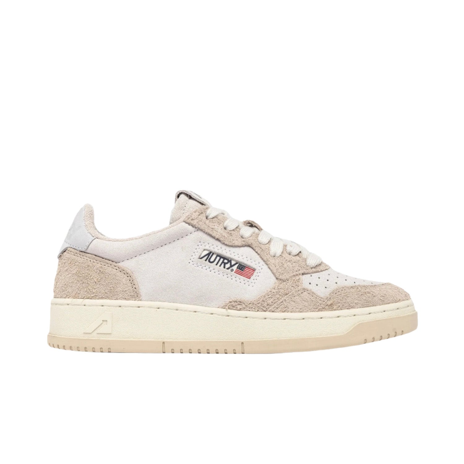 This women's Medalist sneaker by Autry is perfect to express your character without holding back. Characterized by a visually and tactually striking effect, these shoes are entirely crafted from suede and feature contrast inlays in a warm beige hue, treated to create a rough texture.
