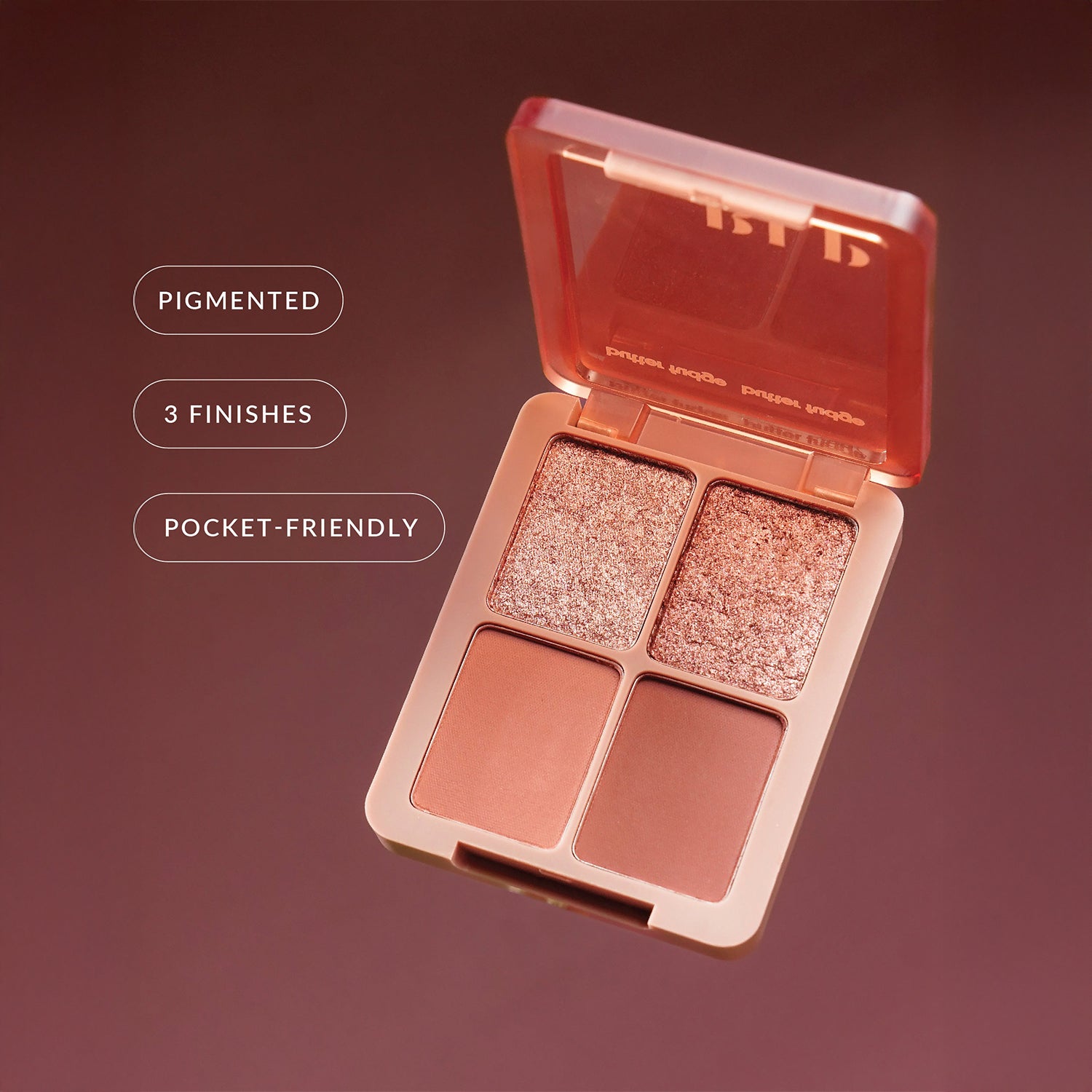 Eyeshadow Pocket is a compact 4-in-1 eyeshadow palette in a pocket-friendly packaging. Create endless looks with its buttery-matte, shimmer, and glittery-shimmer finishes, from casual day out to special events. With its pigmented, non-creasing, blendable formula, let your eyes be the icon and steal the spotlight!