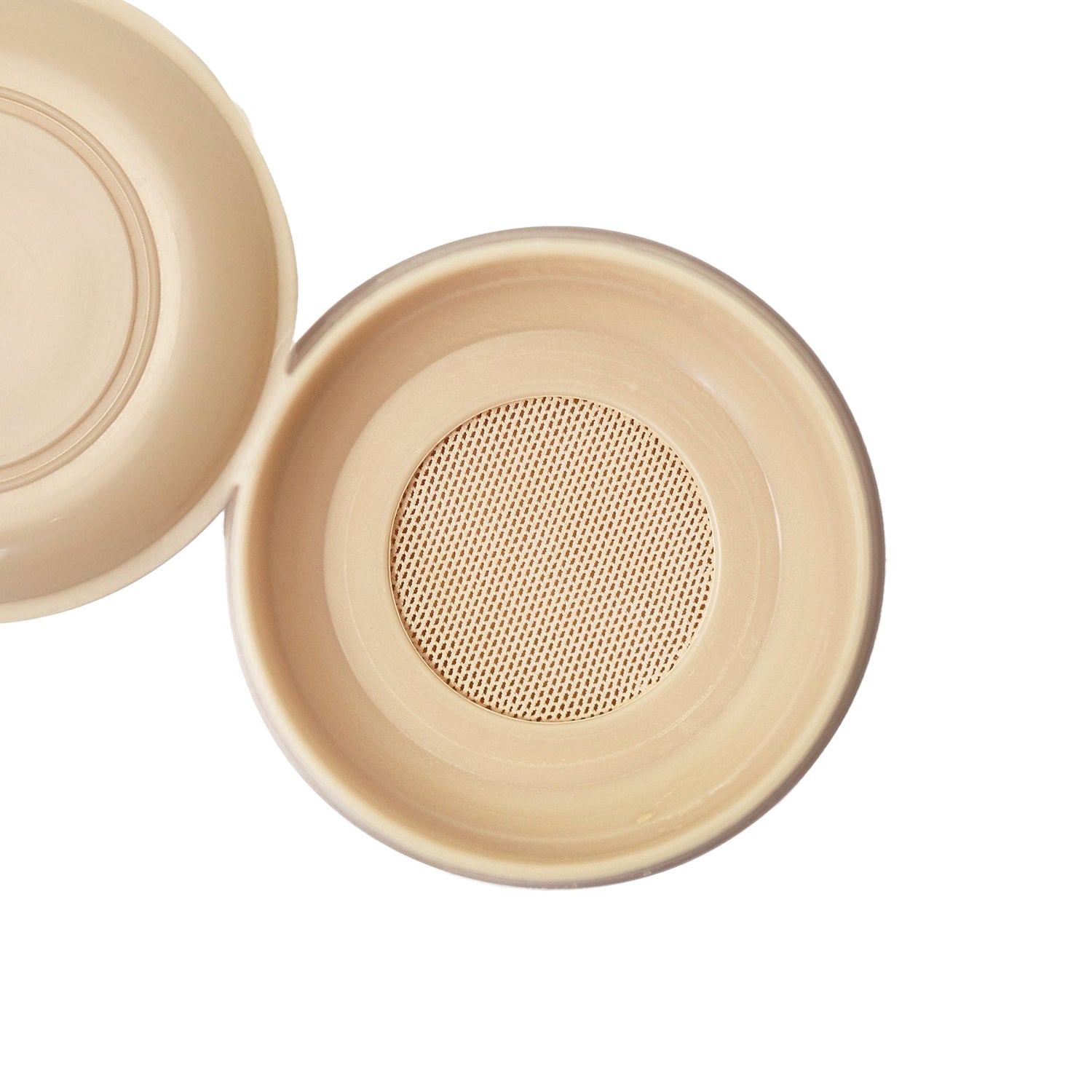 • Pour a small amount of powder on the cover lid, then swipe the puff.