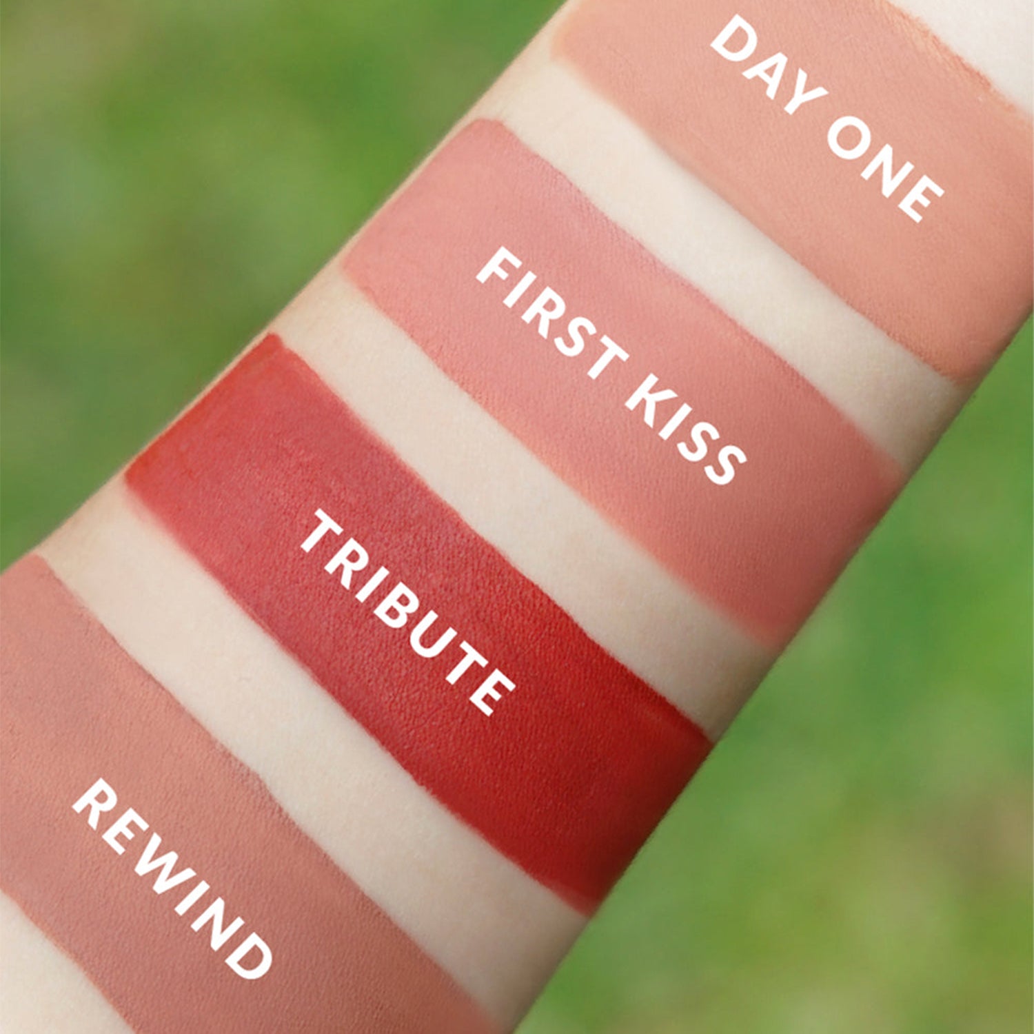 Day One is a light warm beige with a hint of peach that’s fresh and easy to wear. Perfect for those with a warmer undertone, this can be your next my-lips-but-better color!
