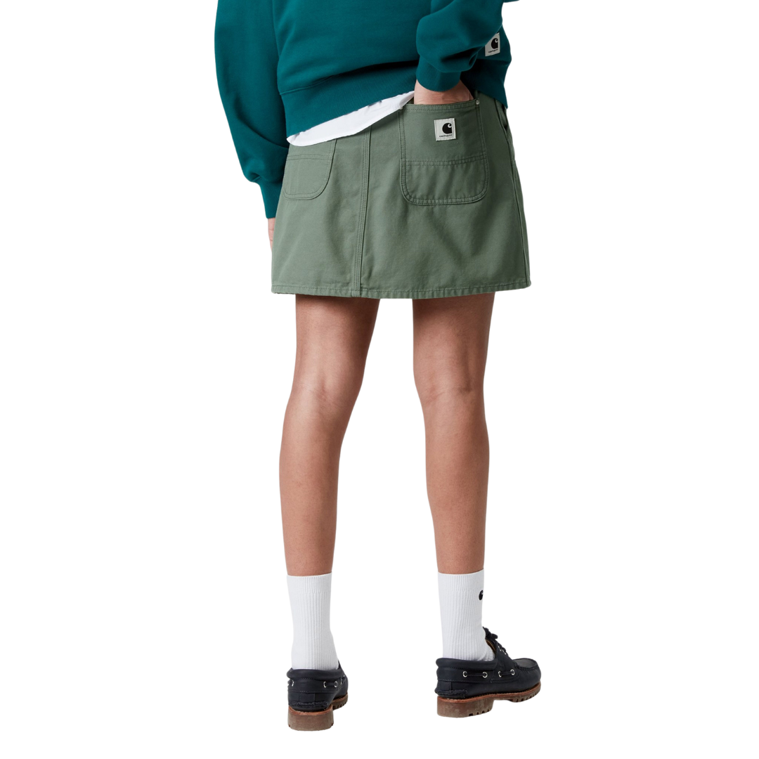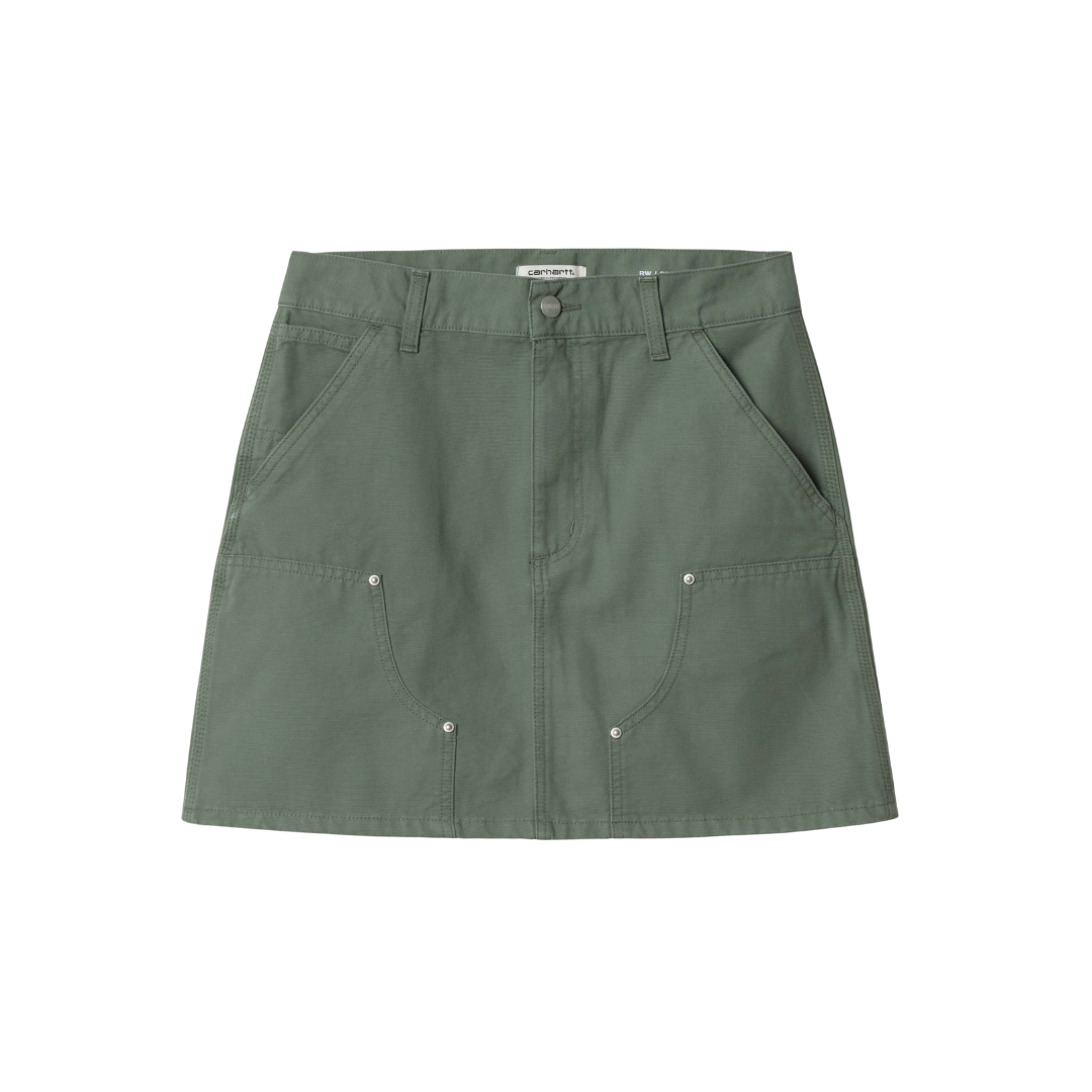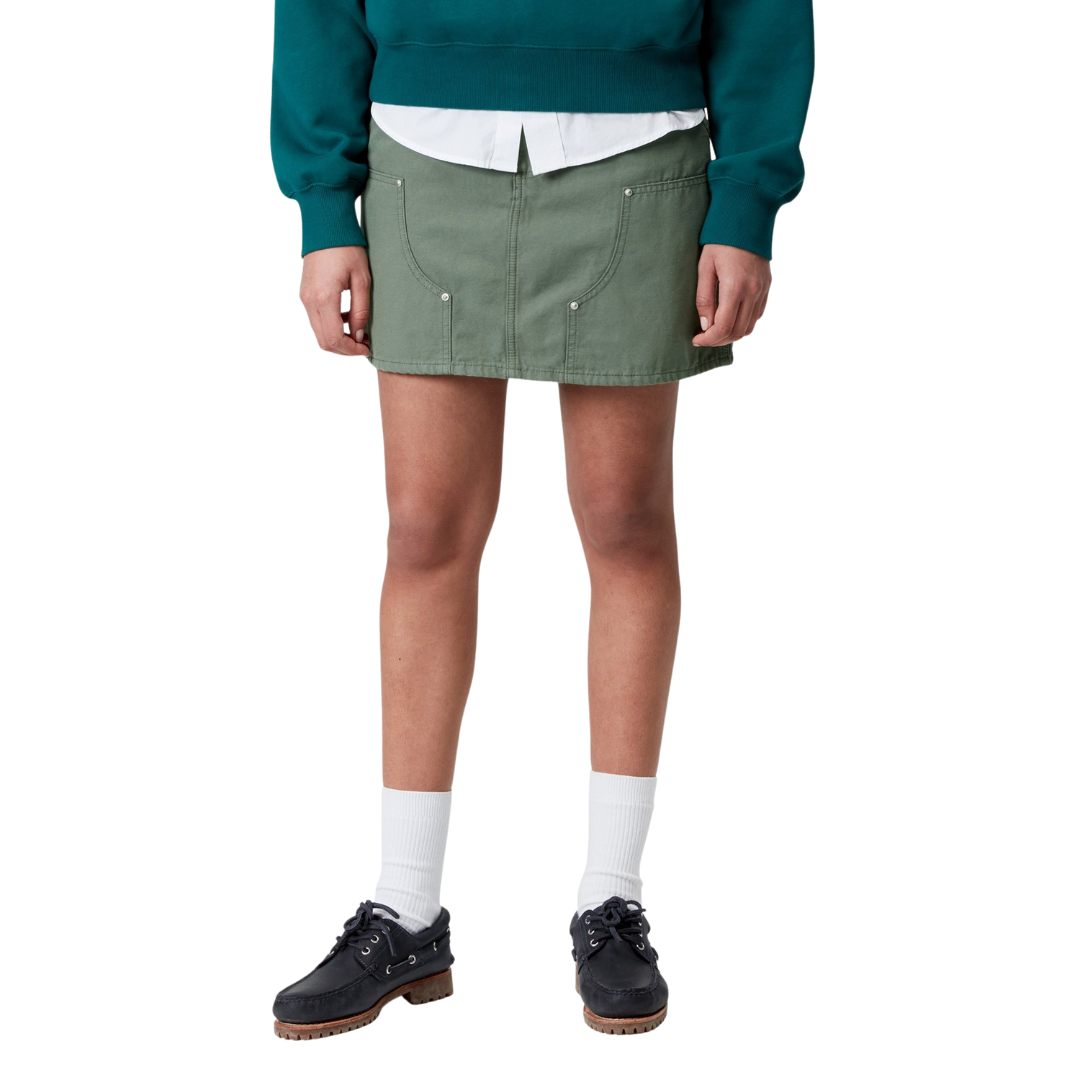 The Women's Maeve Double Knee Skirt is made from midweight, stone-washed cotton canvas in a straight fit with a high waist. Triple-stitched details, metal rivets, and double-layer knees nod to the item's utilitarian roots. A woven Square Label appears on the rear pocket.