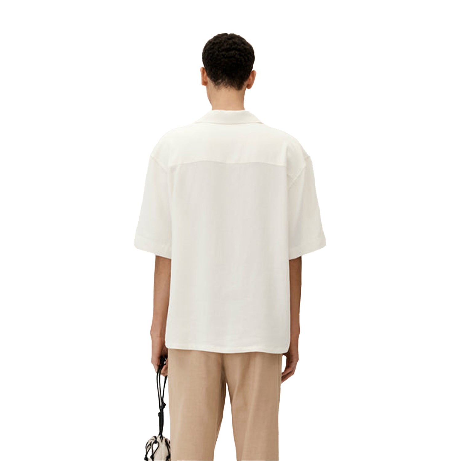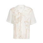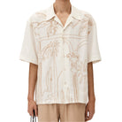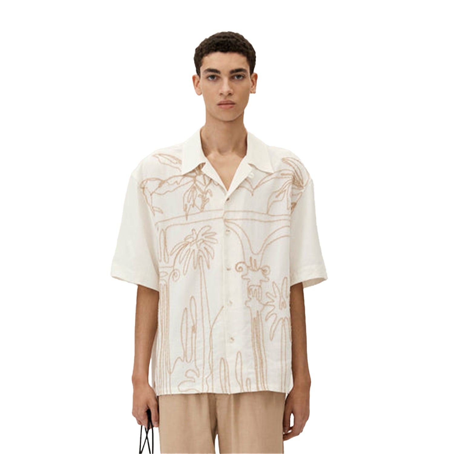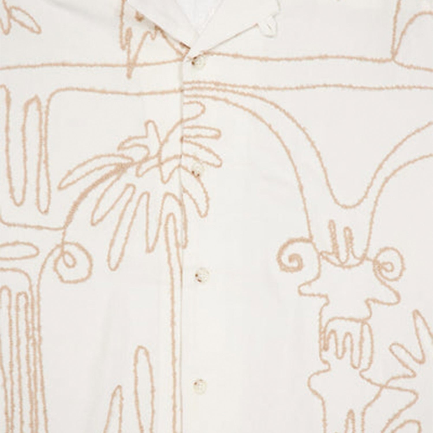 The COMMAS Embroidered Shirt features boucle embroidery reminiscent of palms found in tropical oases'. Crafted with a boxy silhouette and Japanese resin buttons.
