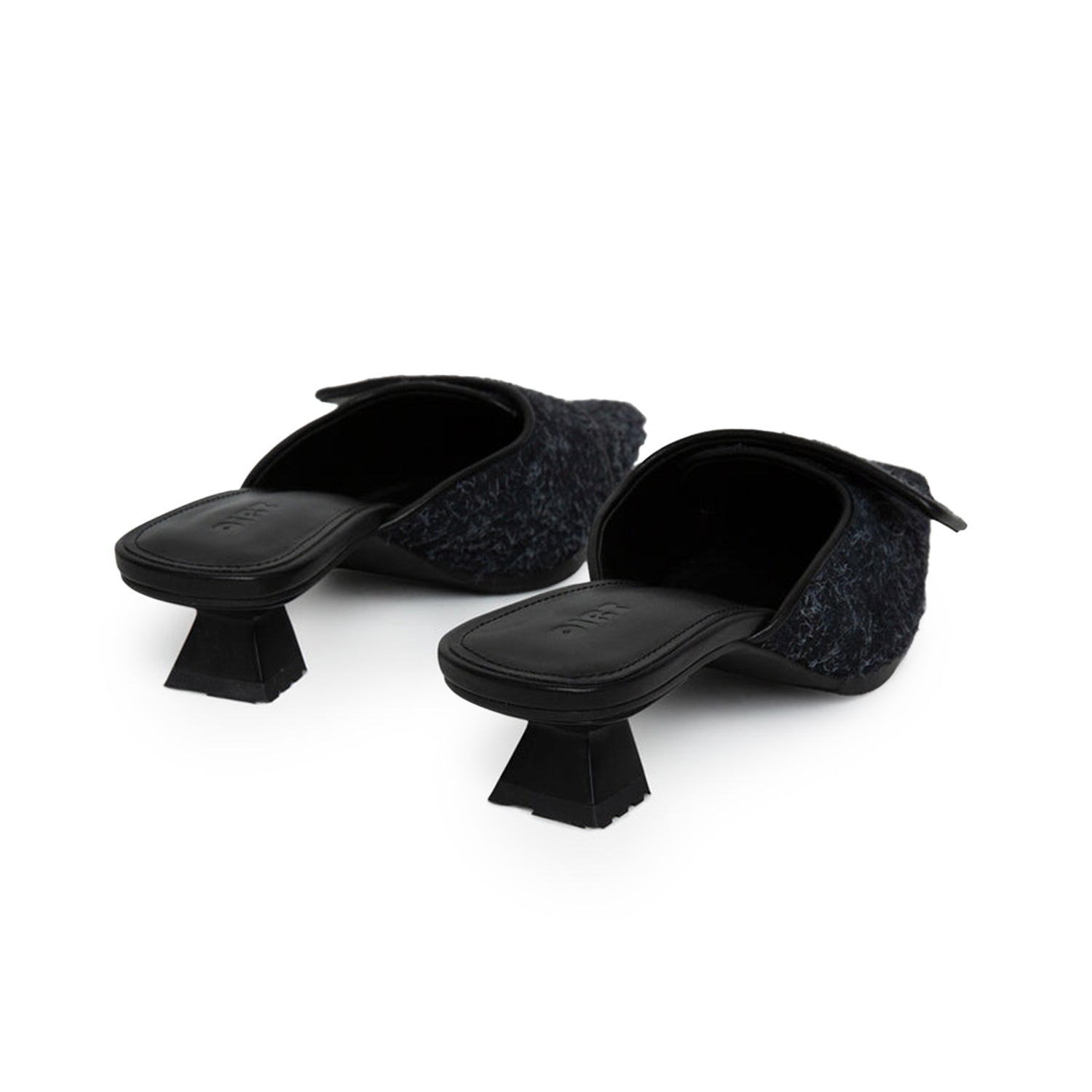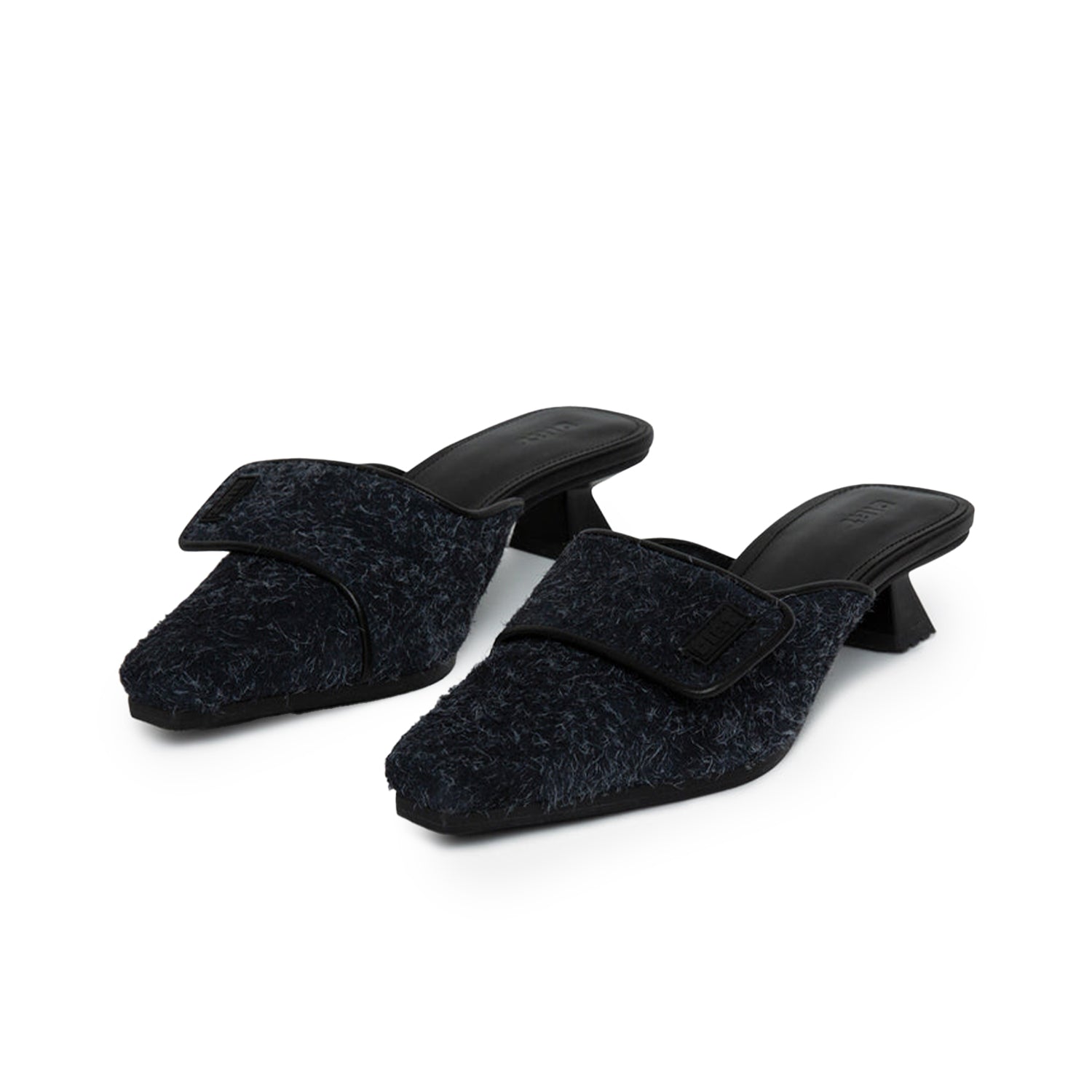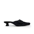 The Kitten Heel Mule is our sporty take on a classic 90s silhouette. Featuring a pointed toe and an adjustable velcro strap for a perfect fit. The durable rubber outsole and 40mm ABS heels ensure all-day wearability. Handcrafted in a black brushed suede.