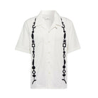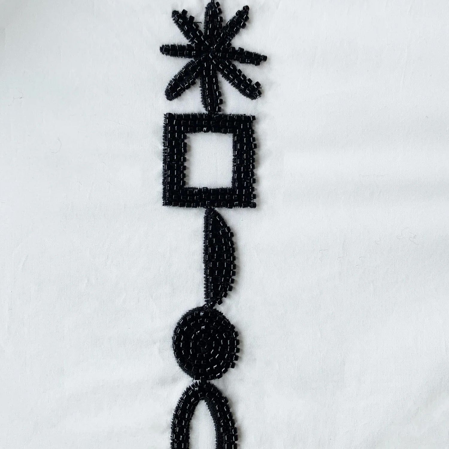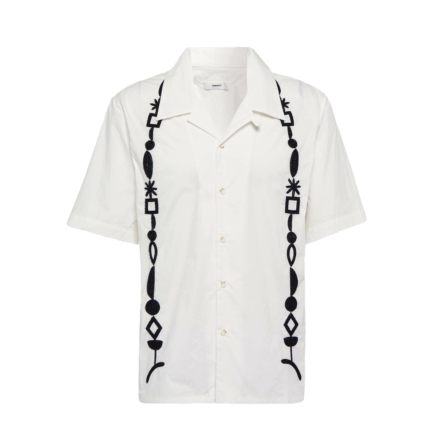 A boxy cotton shirt adorned with embroidery and beading reminiscent of Capron's 1960's designs.