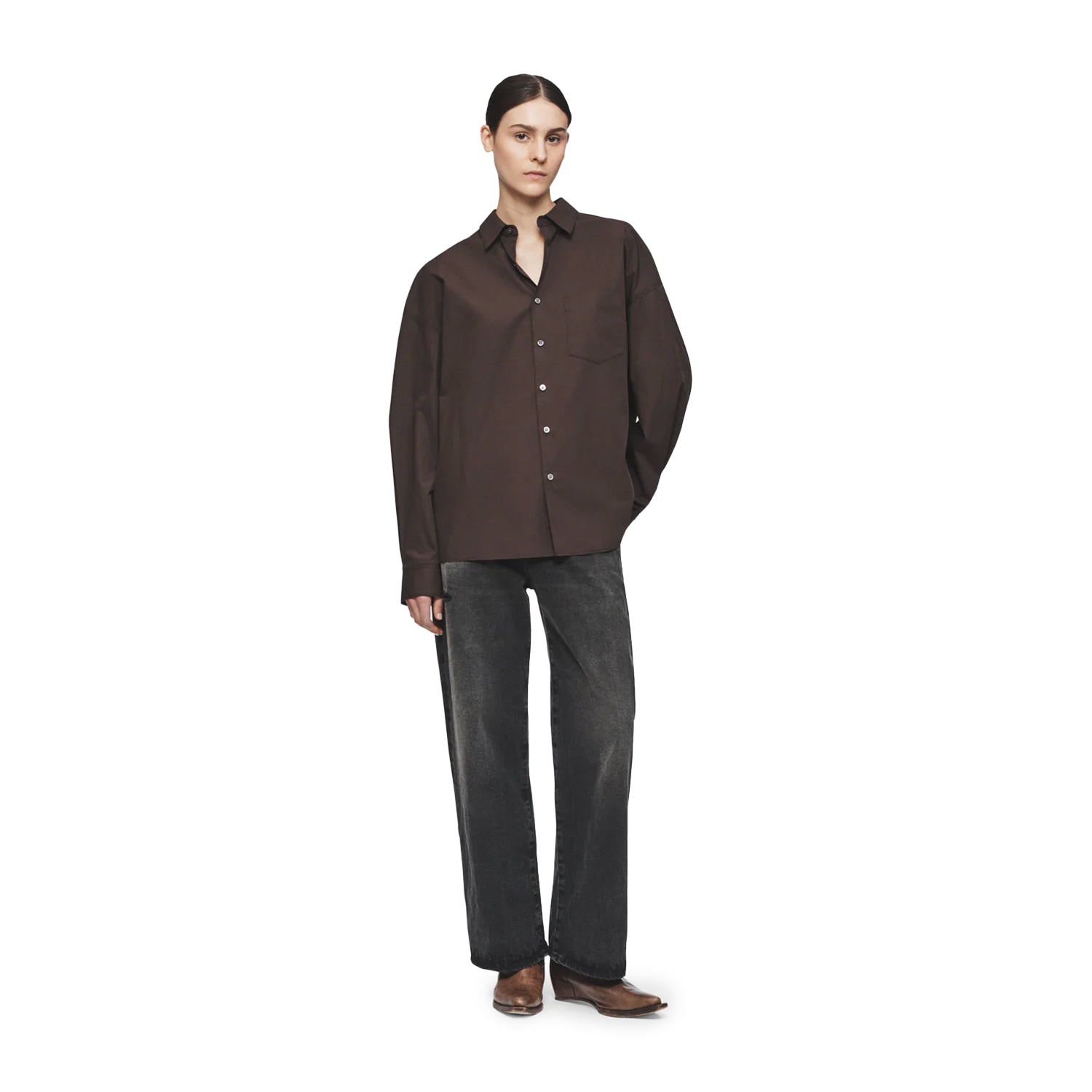 Wide leg, relaxed fitting jean that has a roomy and straight leg. The Wide Jean is intended to sit on the high hip comfortably and has traditional 5-pocket details and a zipper fly.