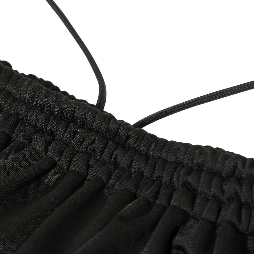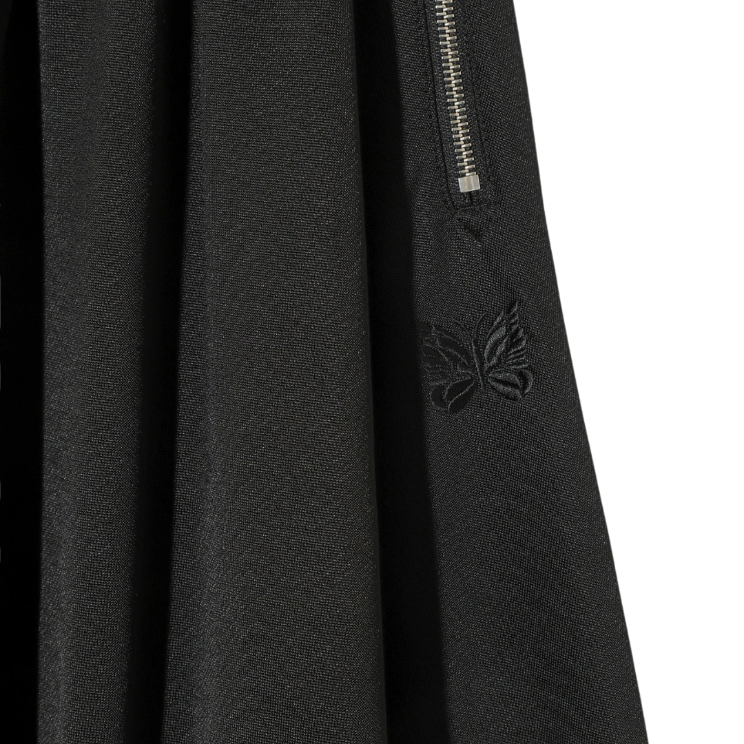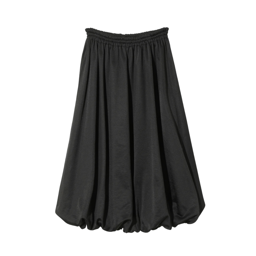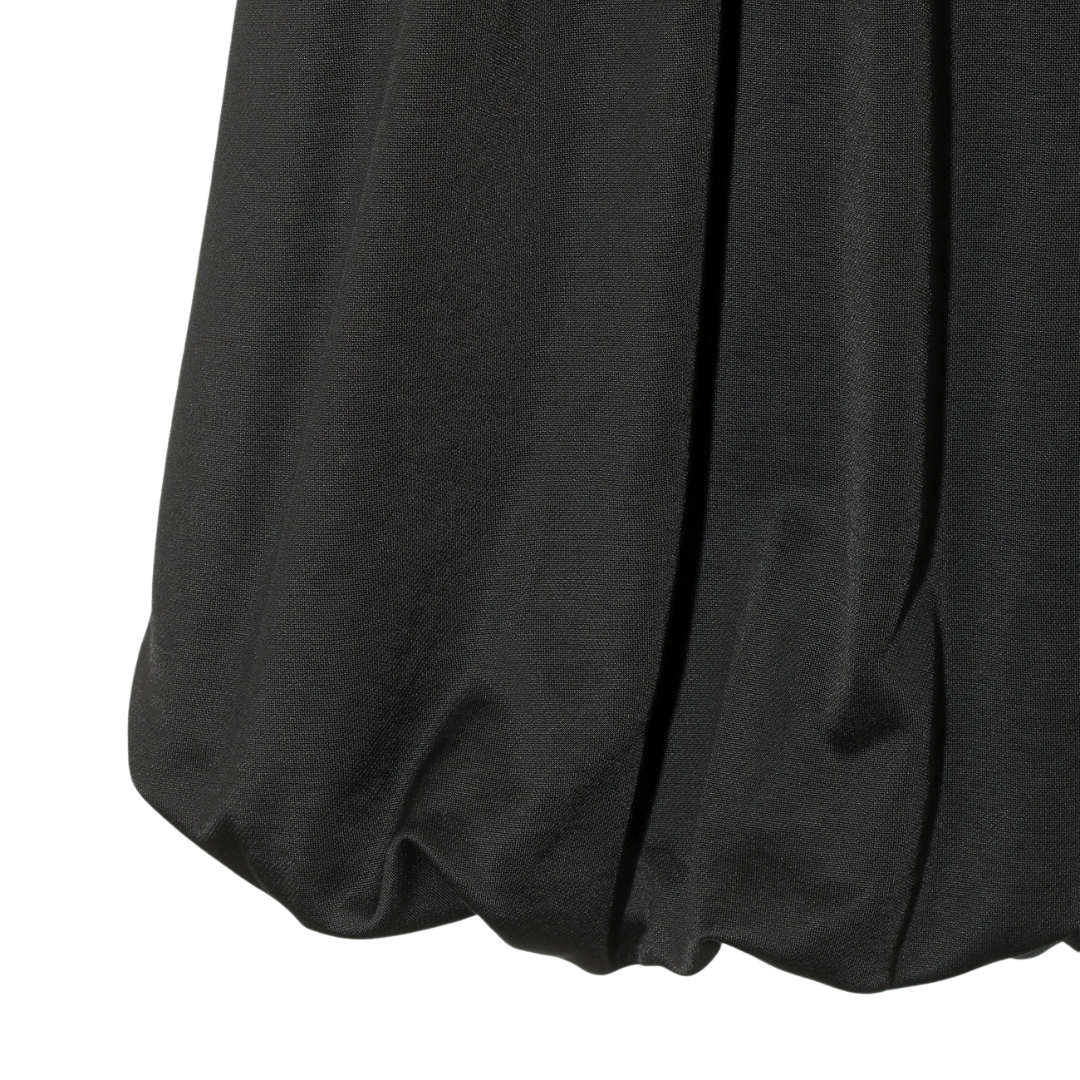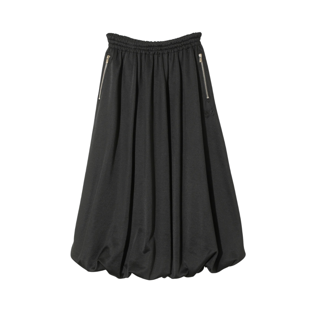 This balloon track skirt features a slightly tapered hemline and a unique, fluffy shape. The resulting silhouette has a three-dimensional feel and depth, and the use of shiny jersey material creates an elegant and playful piece. The sporty elements and sophisticated design bring out your individuality, creating a fresh design.