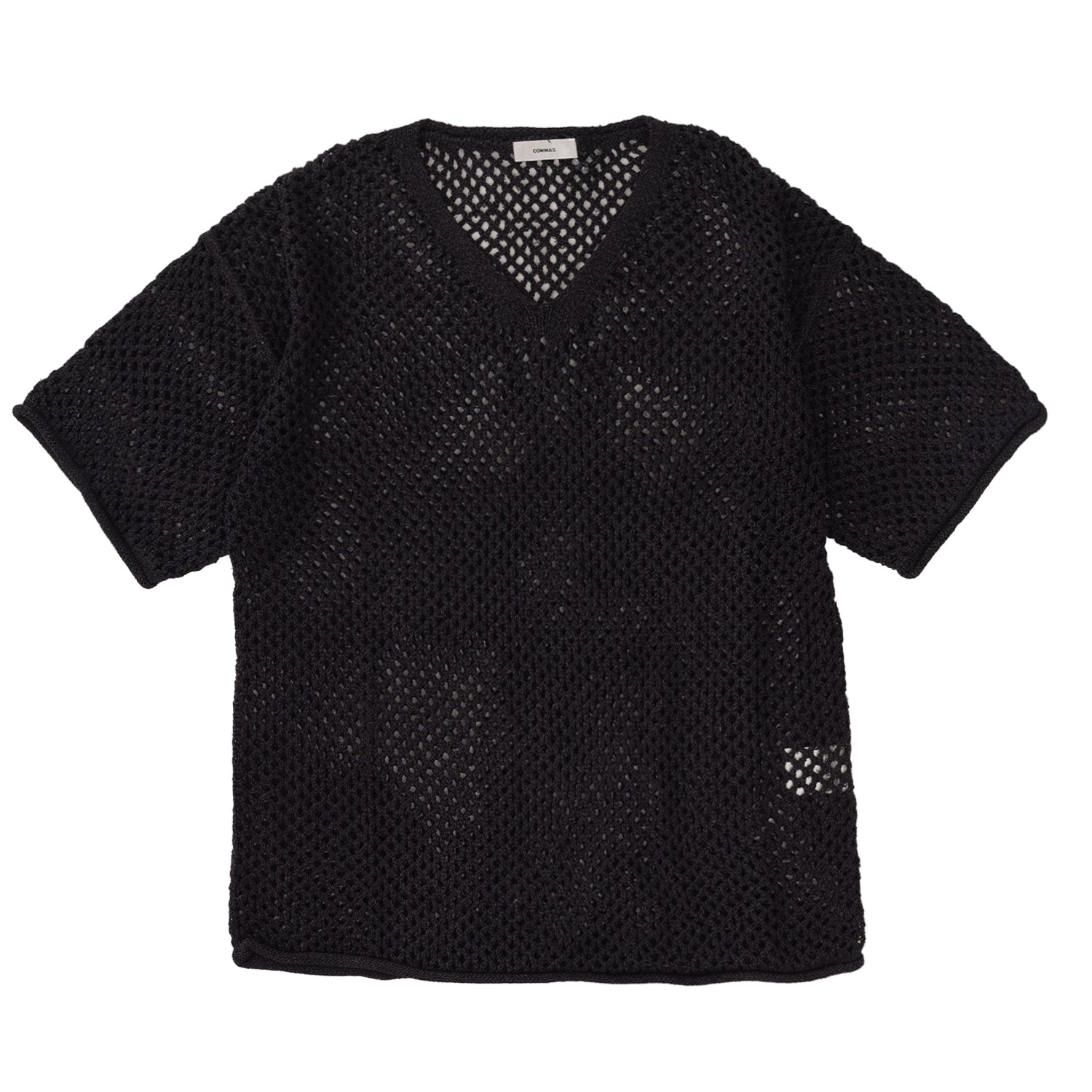 The COMMAS knit top is crafted from an organic cotton blend in an open knit design. Made to fall relaxed over the body, this lightweight silhouette features a V-neckline and a comfortable fit in a versatile black colourway, perfect for layering.