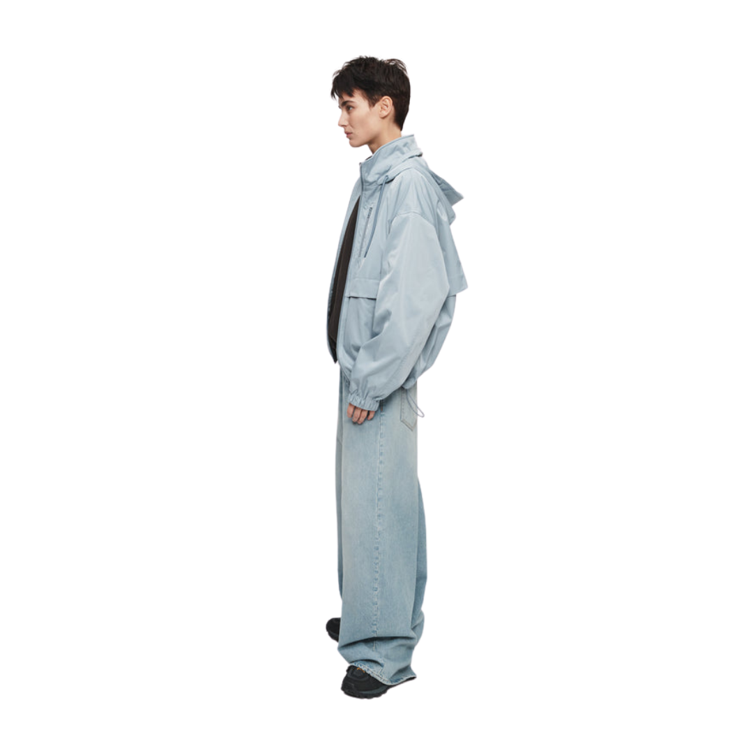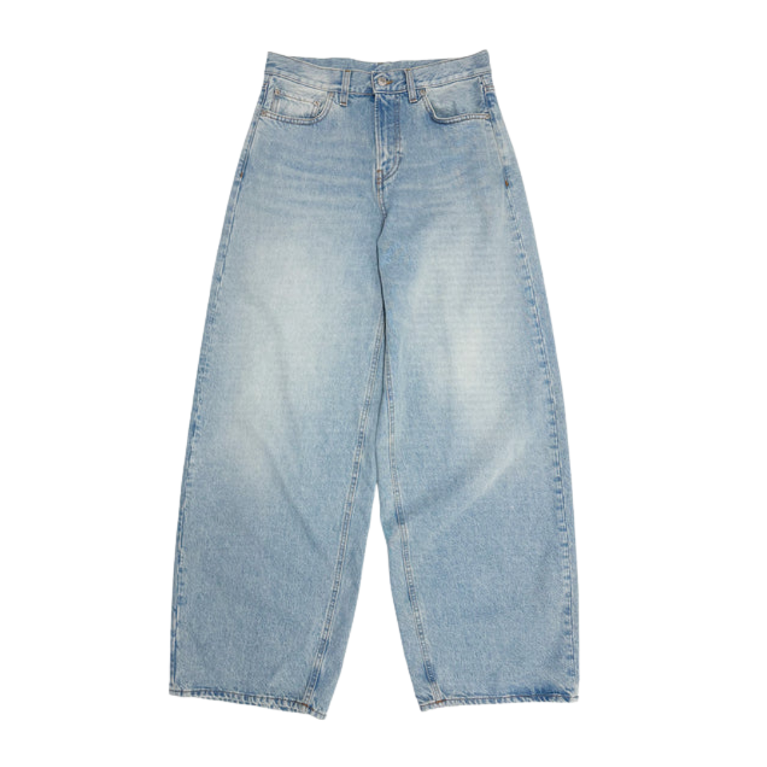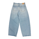 The Roomy Jean in 90s Blue will have a wide leg, with relaxed waistband that sits comfortably on the hip. Traditional 5-pocket details and a zip fly, we'd recommend sizing down, as the 90s Blue wash runs about a half size larger than other color ways in this silhouette.