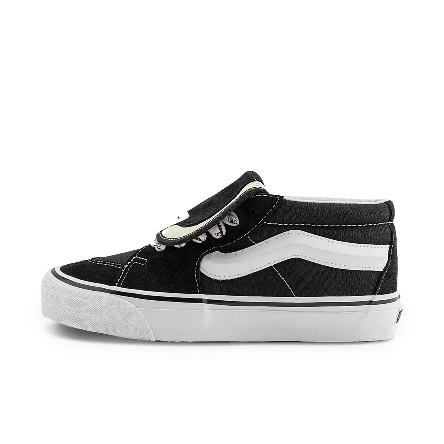 The SK8-Mid 83 brings the retro toebox stitch, a single-row collar, and a skinnier Sidestripe™.