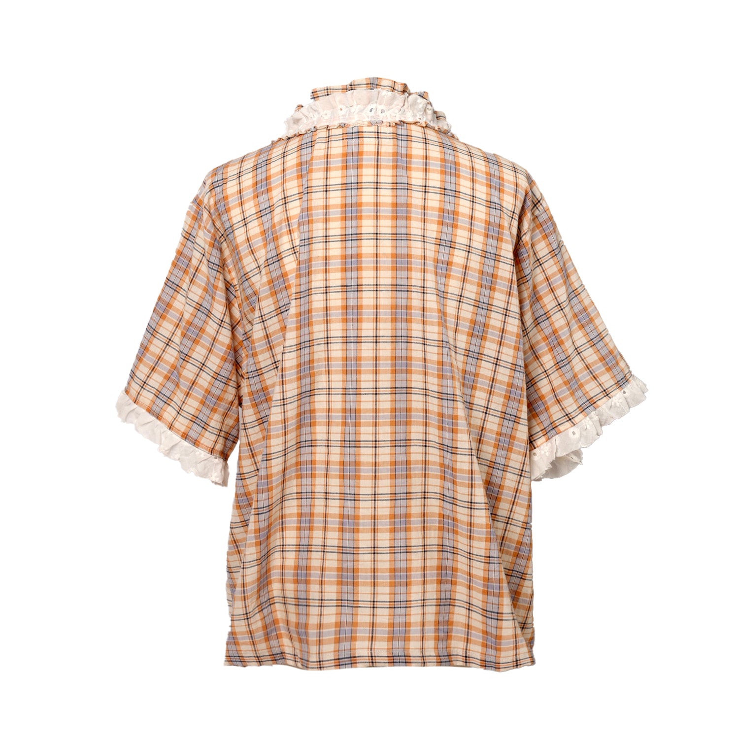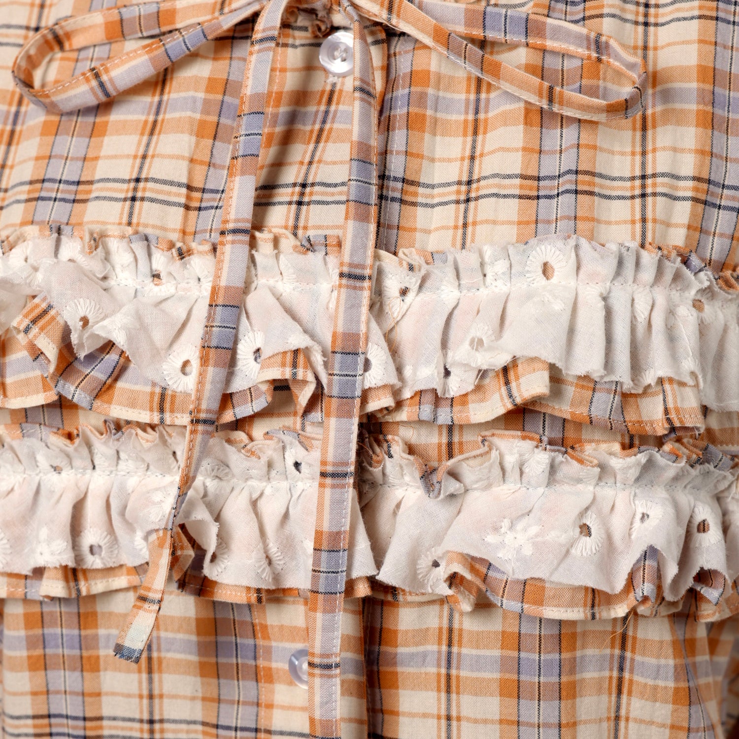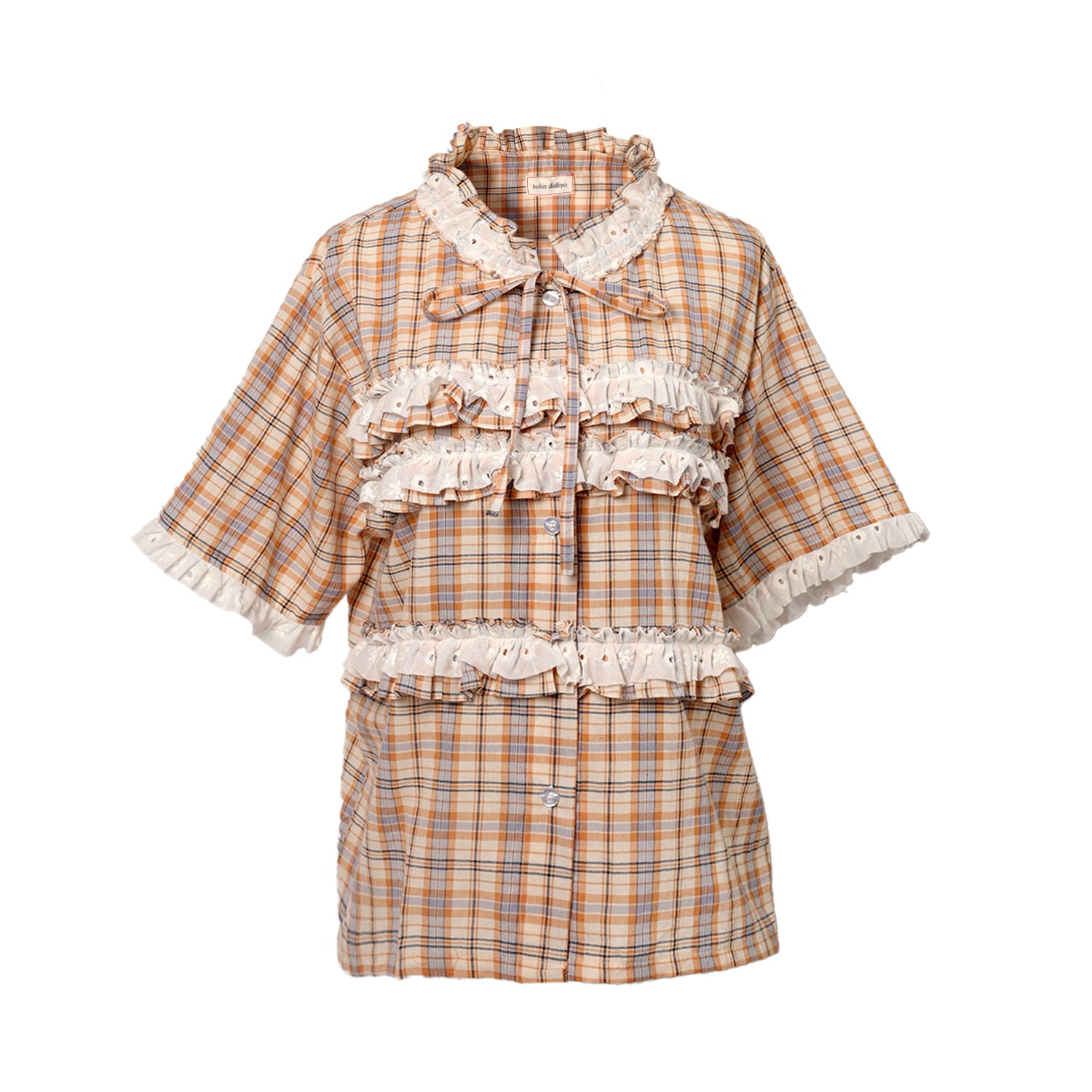 A blouse made from cotton detailed with ruffles and tie at the frontside of the top.