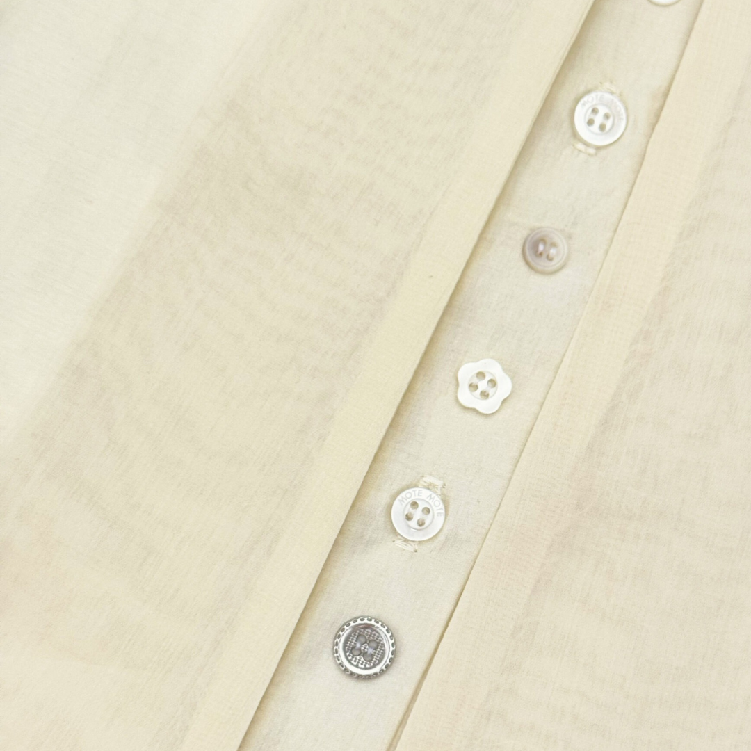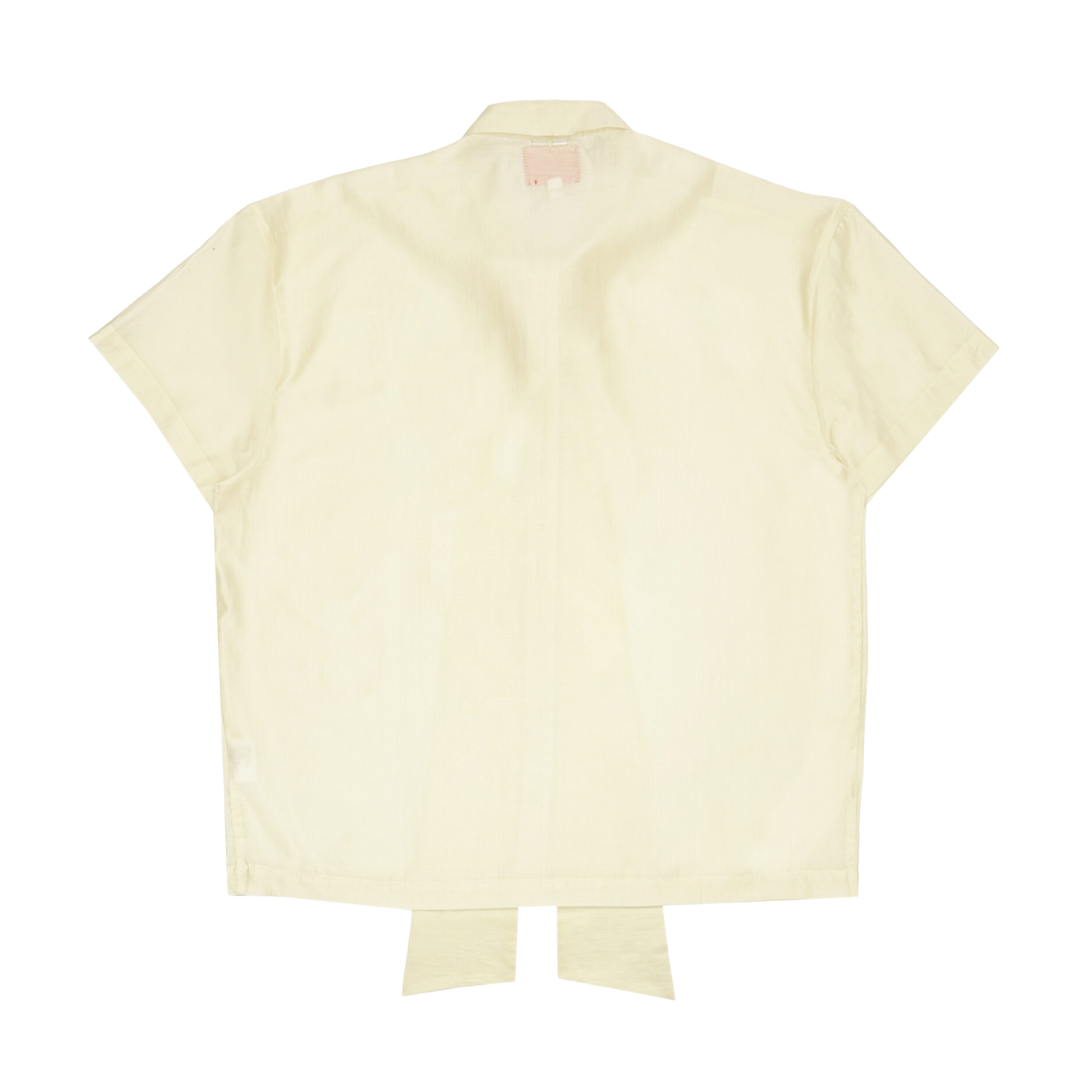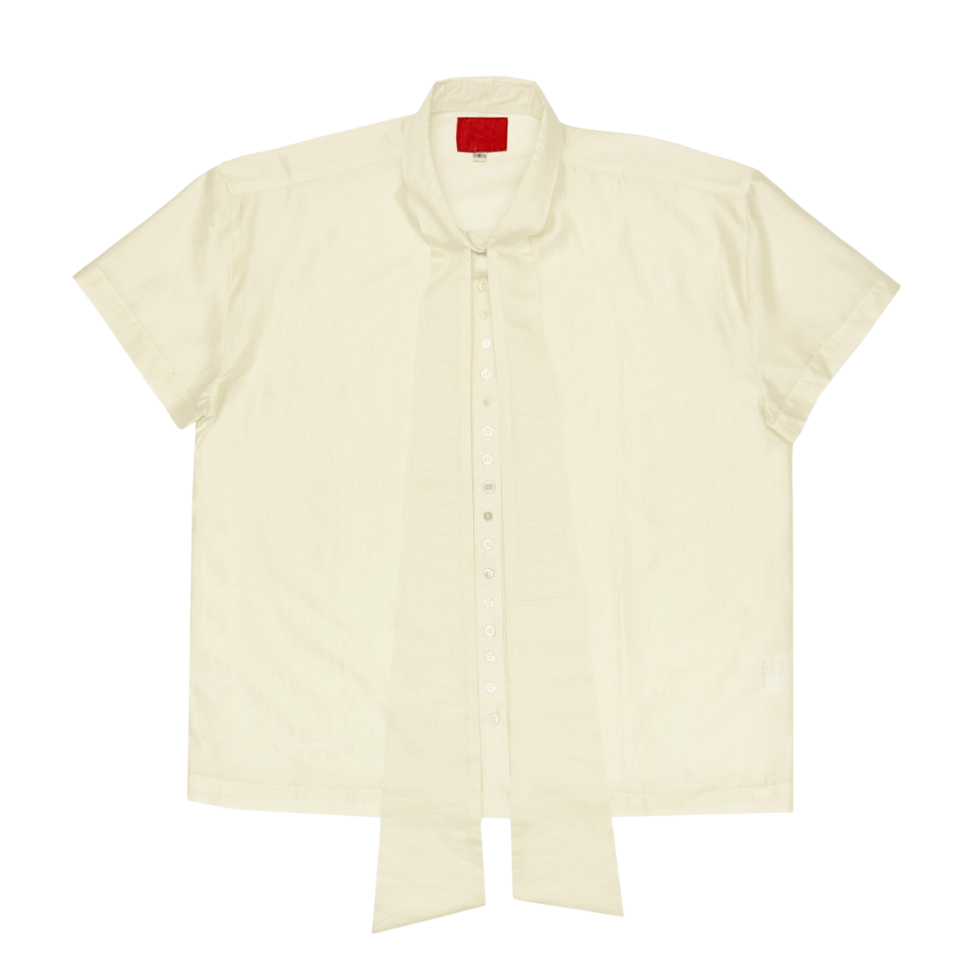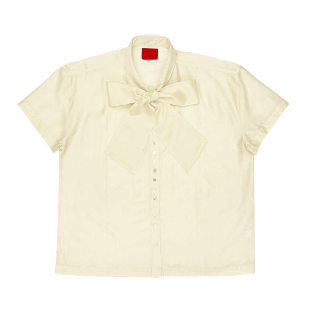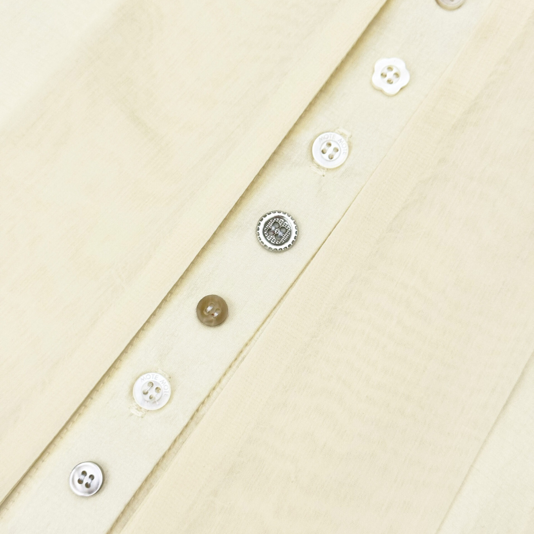Constructed of poplin fabric, with asymmetric buttoning & bowtie details, made in unisex fitting. Adorned with hand-beaded embellishments on the collar, neatly finished with Mote Mote’s embossed transparent buttons.