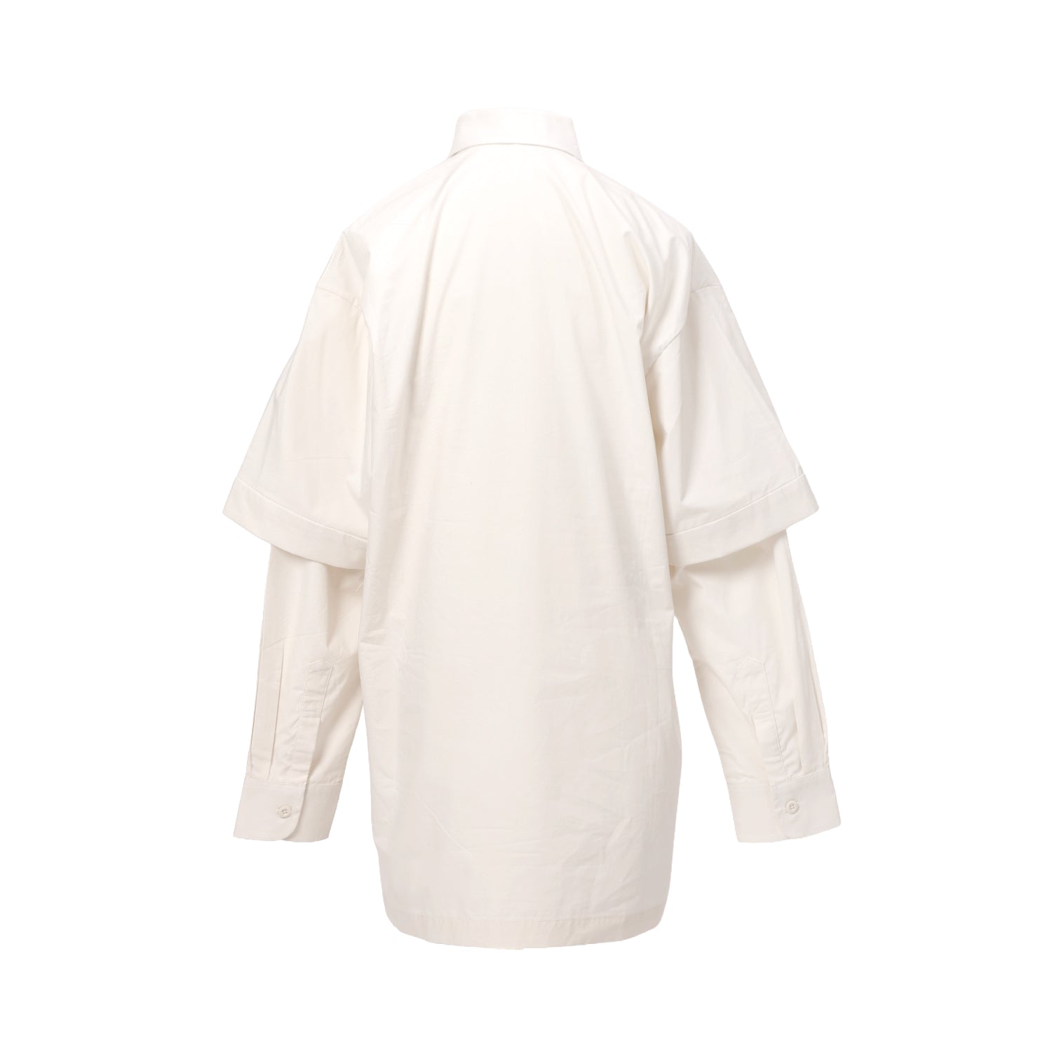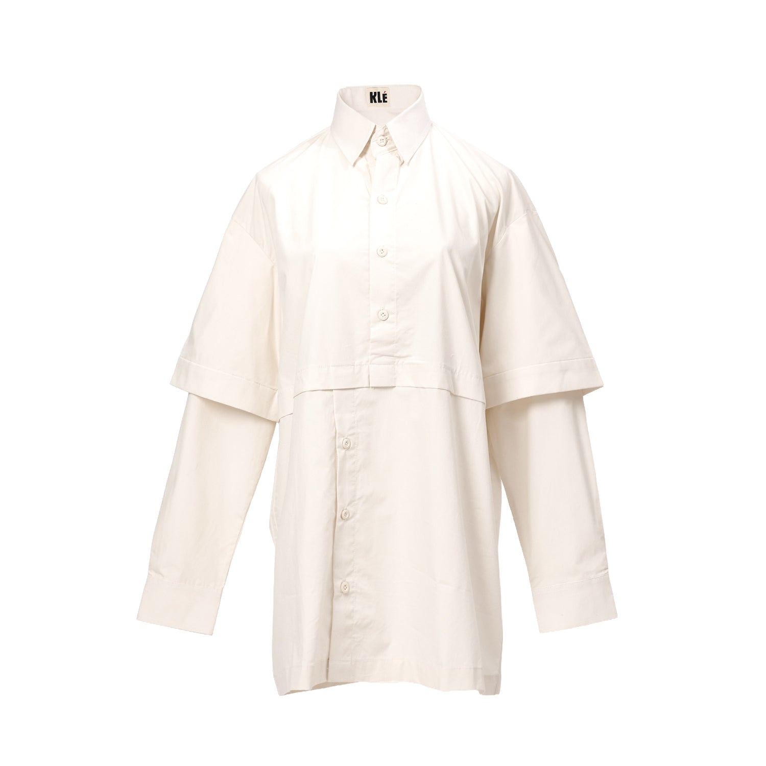 Loose cut shirt with disconnected button opening details, opens only from collar to the chest in Poplin cotton.
