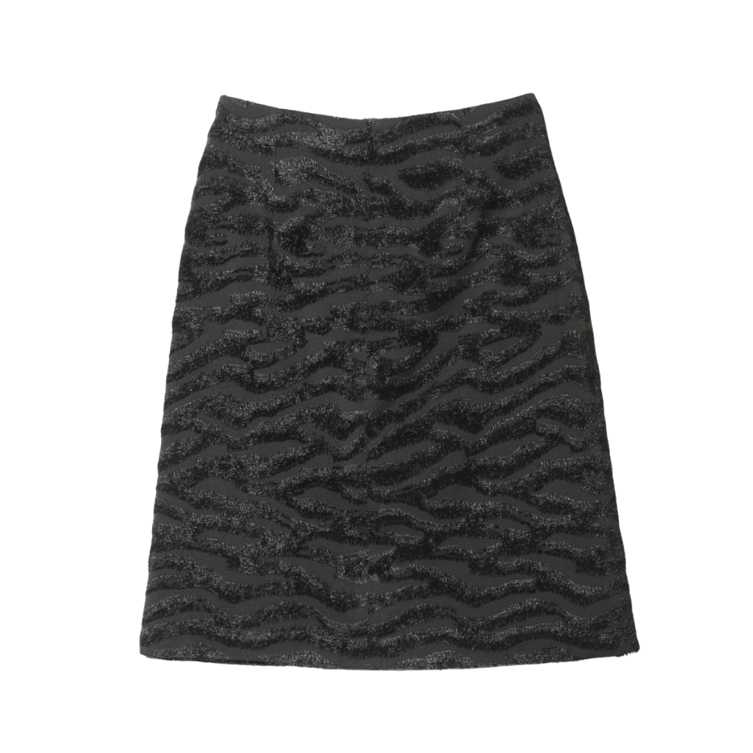 The C.C. Skirt gives a classic and formal impression. It features an extremely simple design with minimal extra details. This season, a gorgeous cut jacquard material with a zebra pattern in the same tone is used.