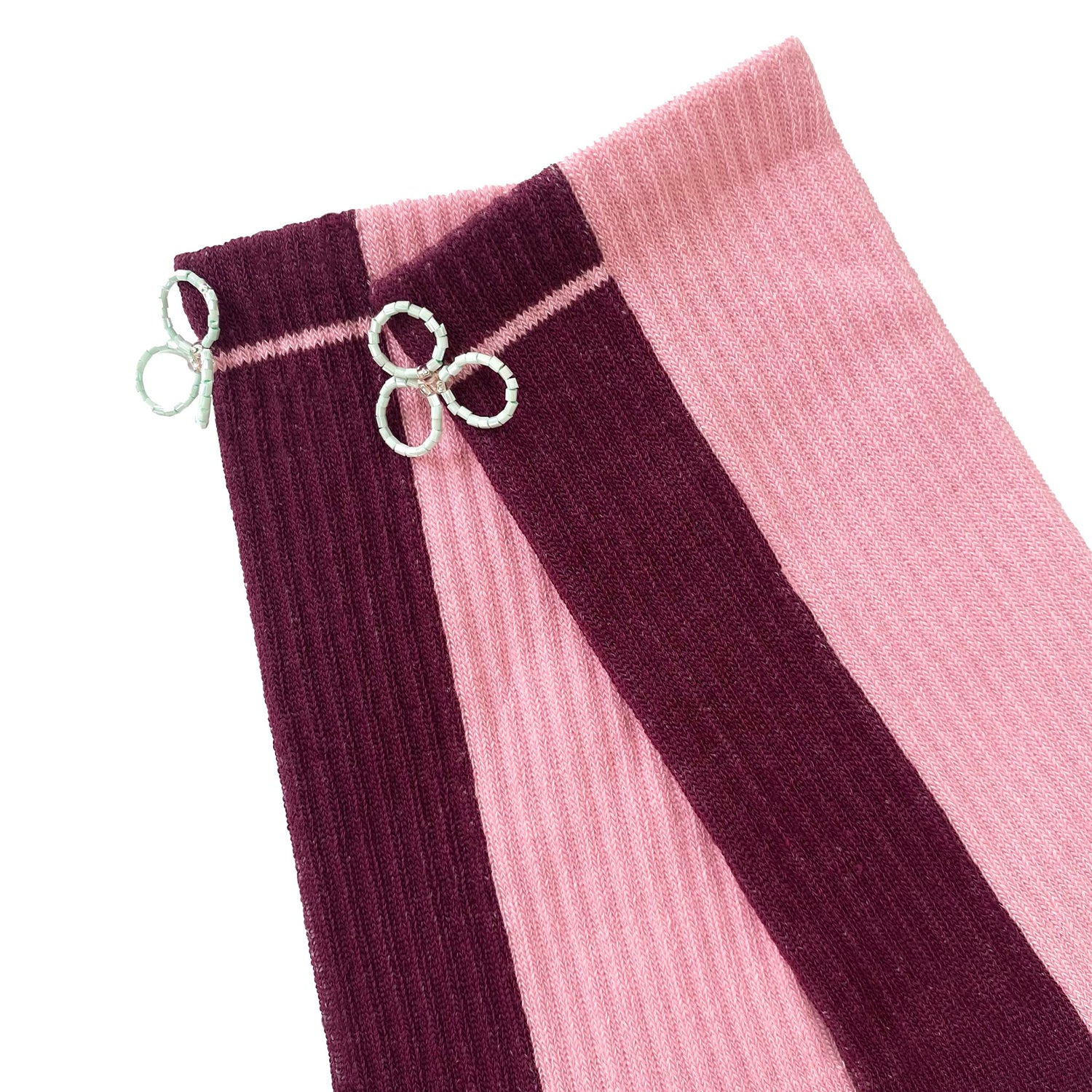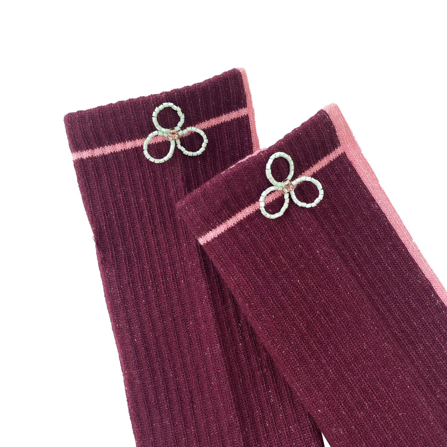 Mote-mote's new take on socks! Adorned with hand- beaded details on the front.