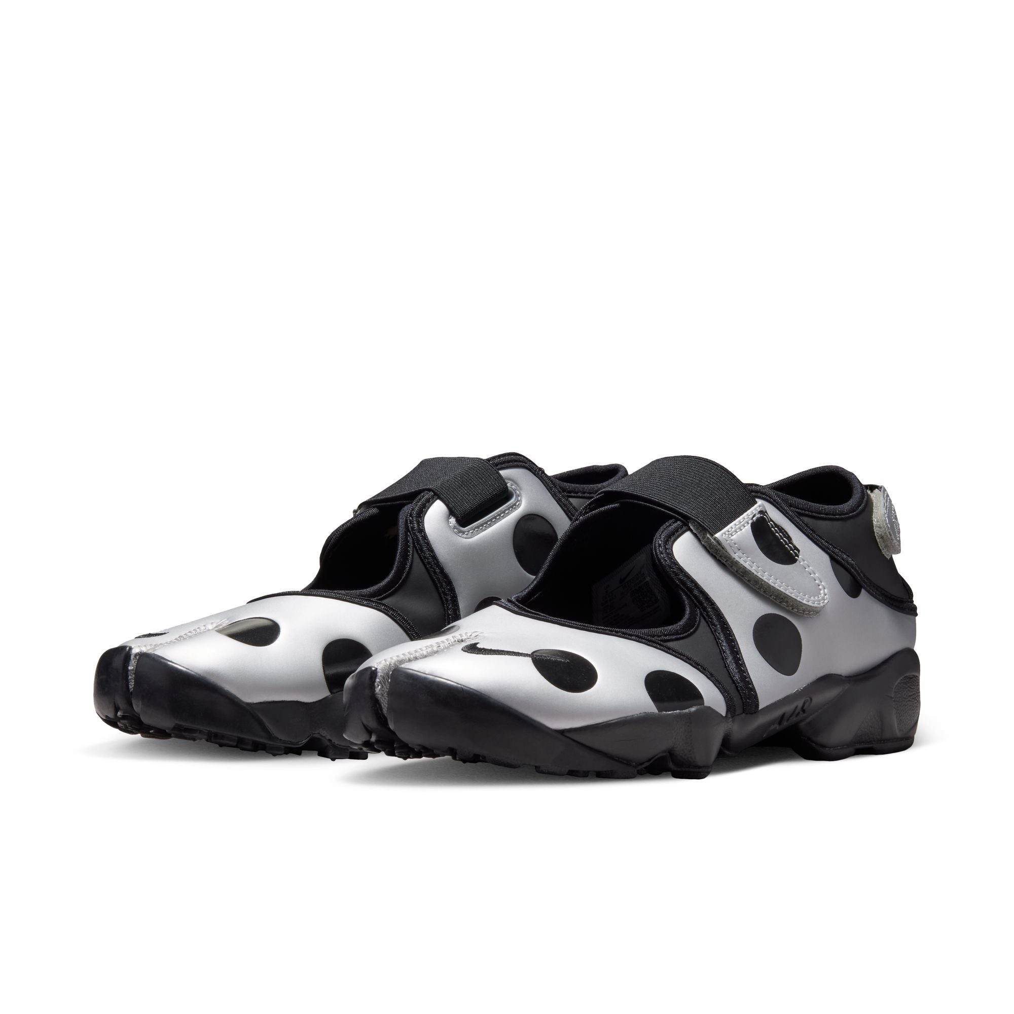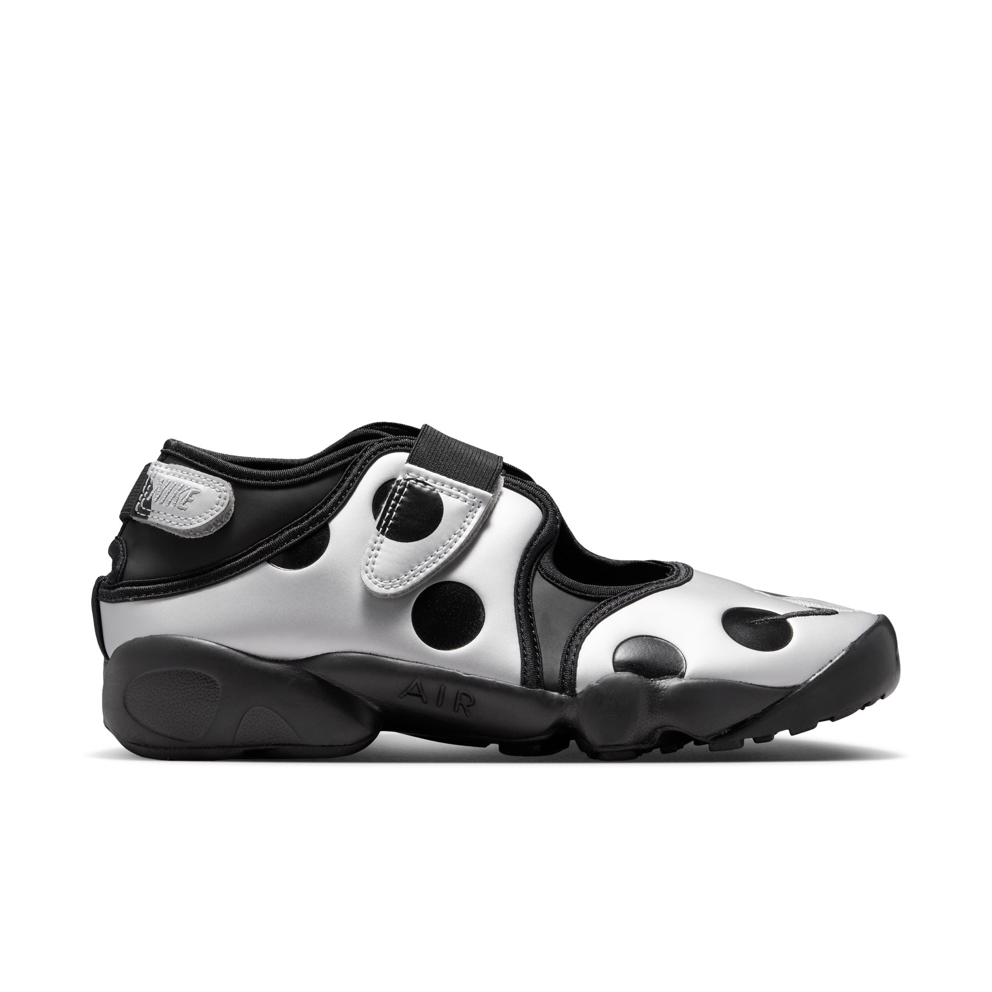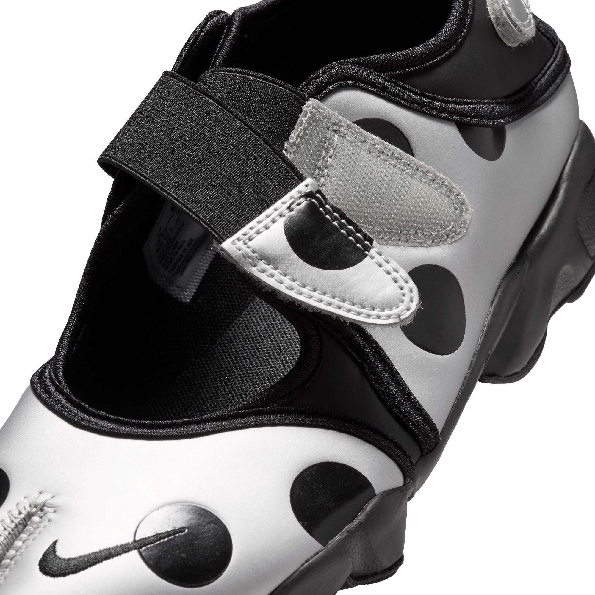 The Air Rift pairs the gracefulness of ballet flats with its distinct split-toe design and the all-day, everyday comfort that comes with Nike Air cushioning. This version mixes smooth, synthetic leather with glossy polka dots and scalloped trim for a look that's work-ready and ready to step out—why not have both?