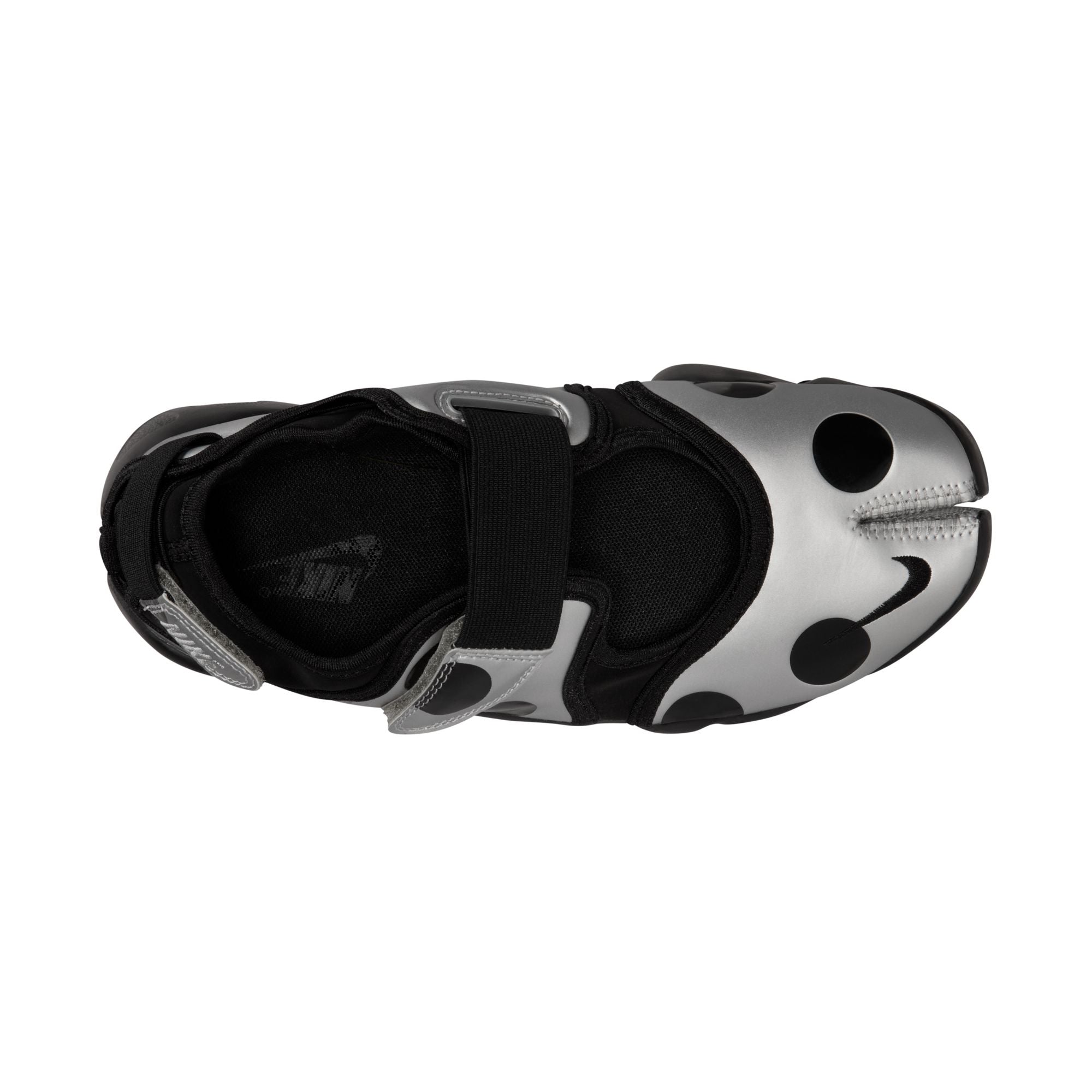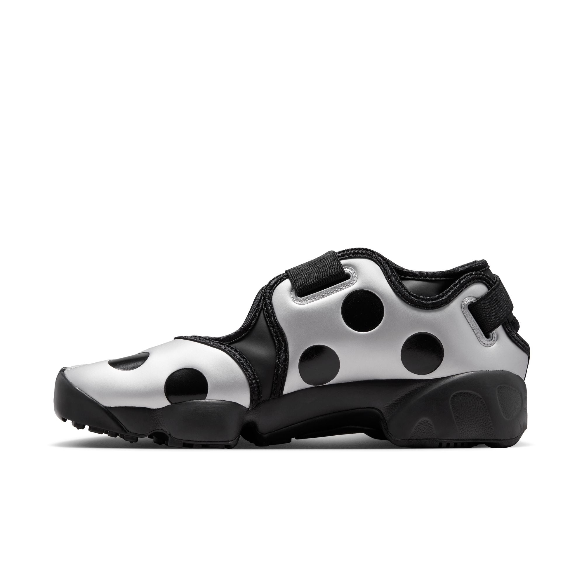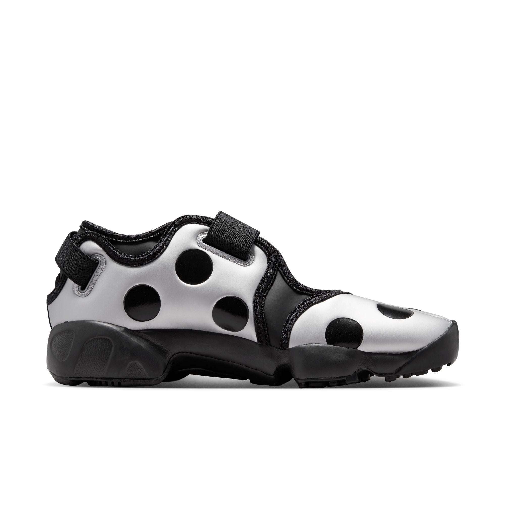 The Air Rift pairs the gracefulness of ballet flats with its distinct split-toe design and the all-day, everyday comfort that comes with Nike Air cushioning. This version mixes smooth, synthetic leather with glossy polka dots and scalloped trim for a look that's work-ready and ready to step out—why not have both?