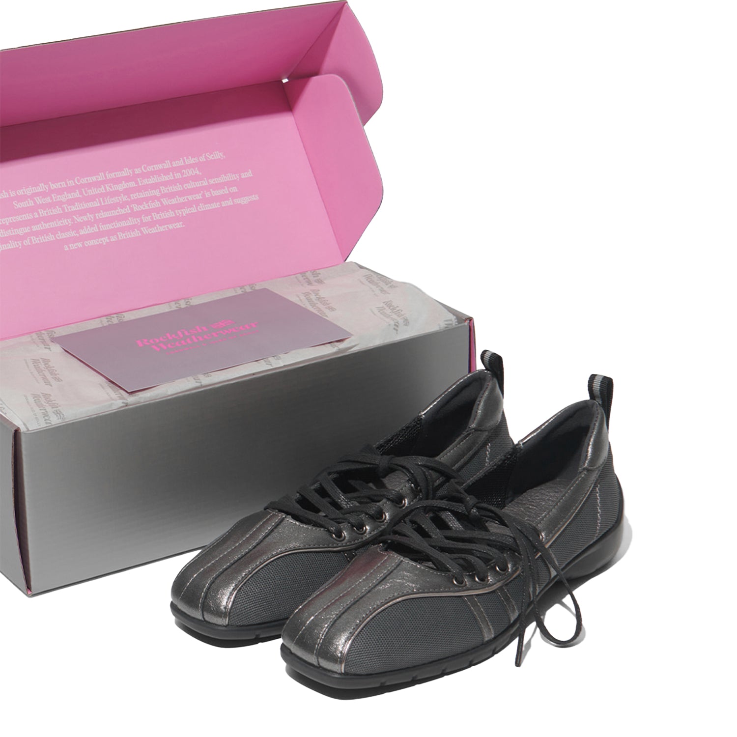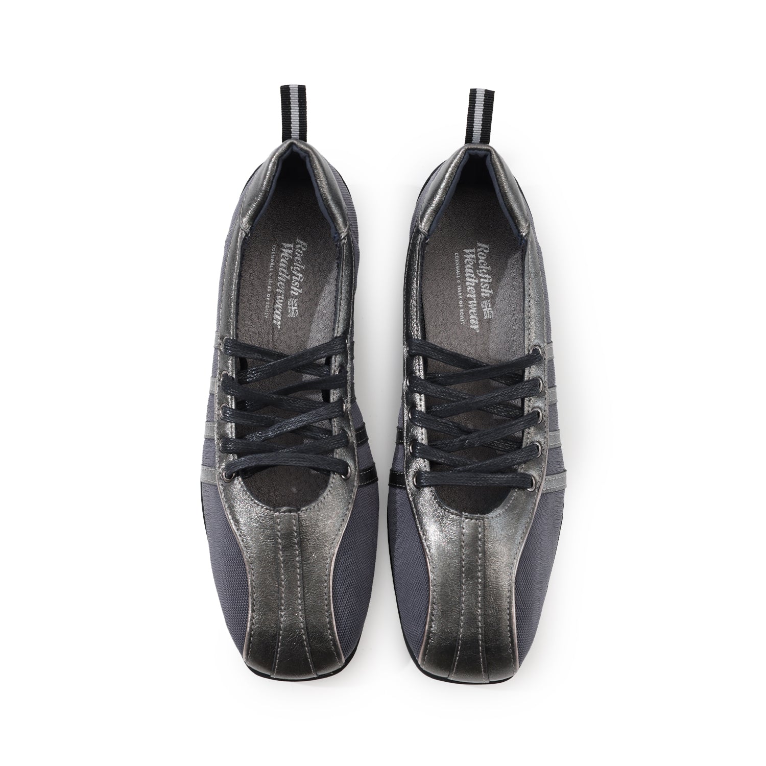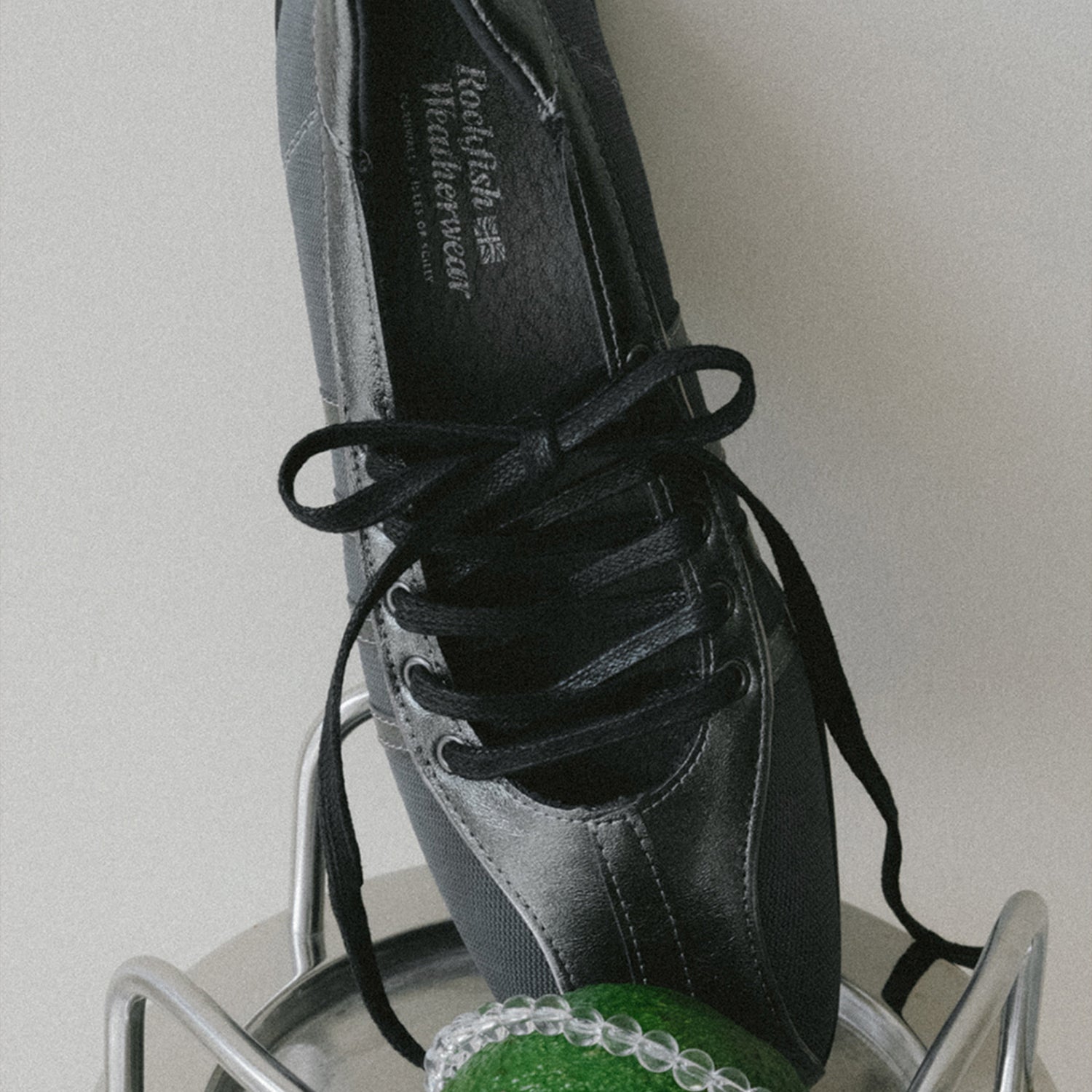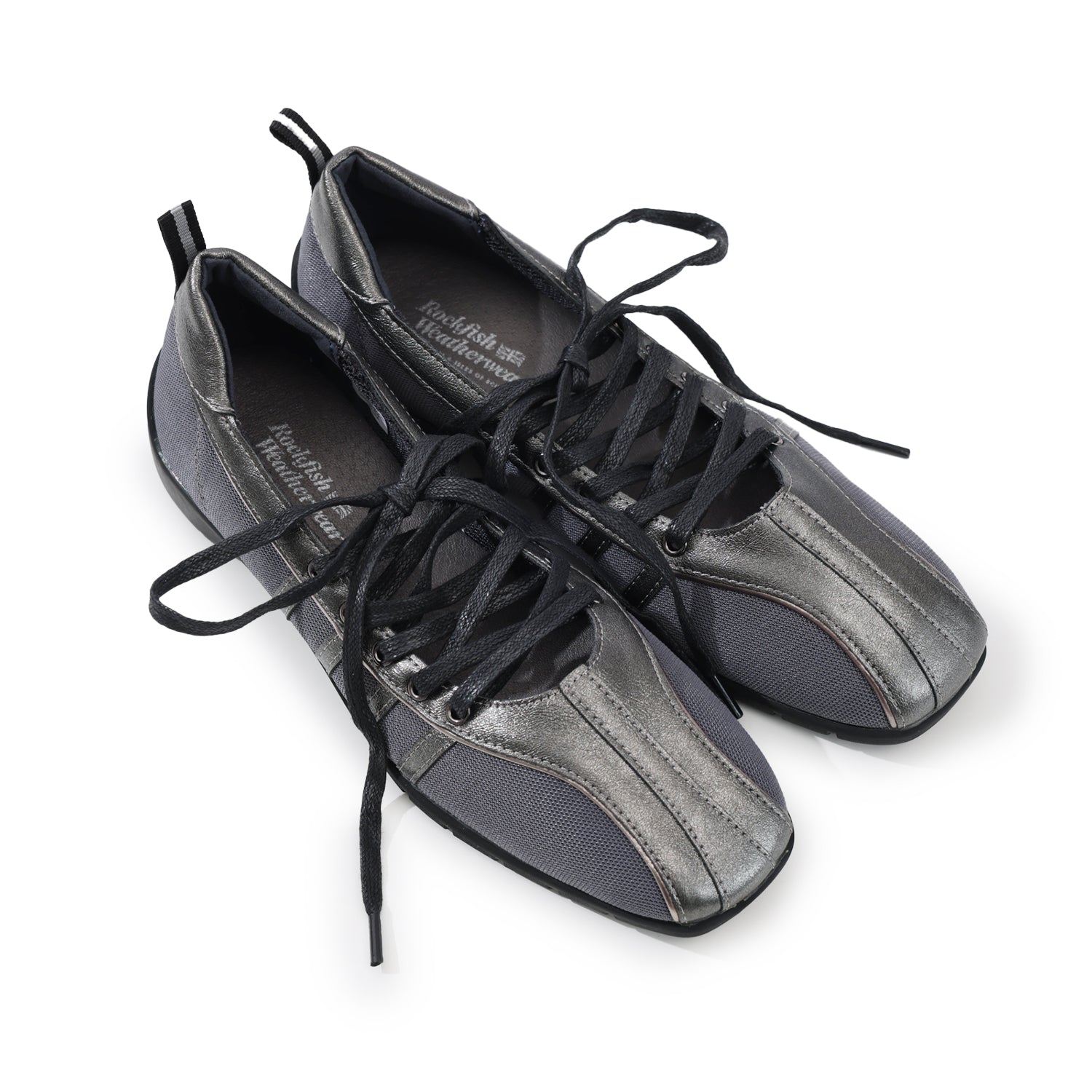 Rockfish Weatherwear introduces a new line of comfort and vintage sensibility. This collection is a modern interpretation of the 90s vintage style, a blend of retro classic and sporty. Utilizing the straps, it's a flat sneaker that can create both sporty and lace up styles, with metallic piping detail.