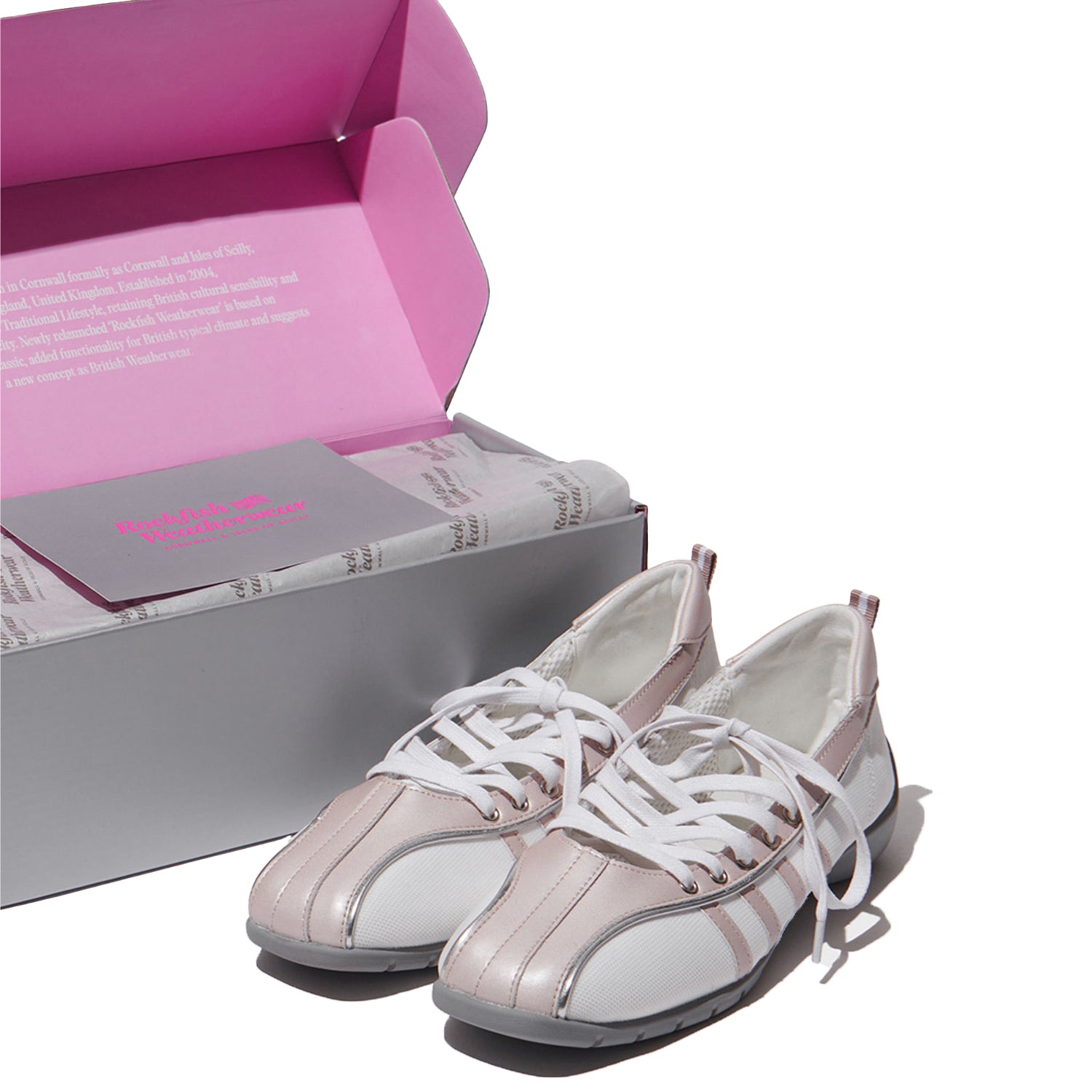 Rockfish Weatherwear introduces a new line of comfort and vintage sensibility. This collection is a modern interpretation of the 90s vintage style, a blend of retro classic and sporty. Utilizing the straps, it's a flat sneaker that can create both sporty and lace up styles, with metallic piping detail.
