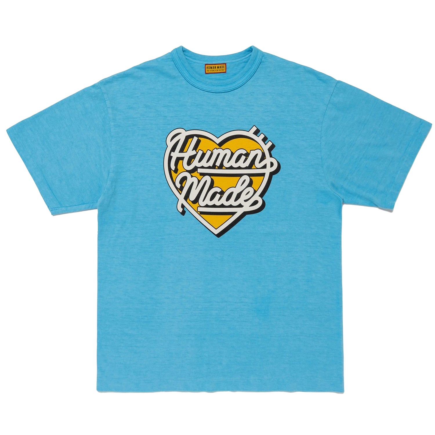 T-shirt with a rounded body and woven with HUMAN MADE’s standard slub yarn. Fresh pastel colors and a heart graphic on the front are features of the design.