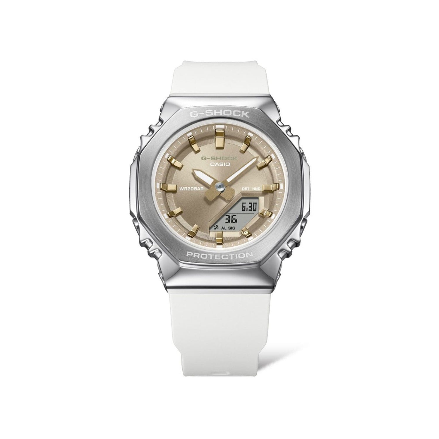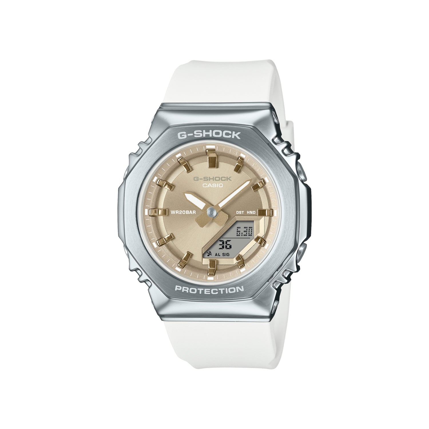 The dial in trendy colors, namely charming beige and glamorous purple, adds a touch of refinement and shine to the wrist. The honed finish on the octagonal metal bezel adds beautiful texture, and the dial combines metal elements for a touch of luxurious style in a flat design with clear indices and LCD.