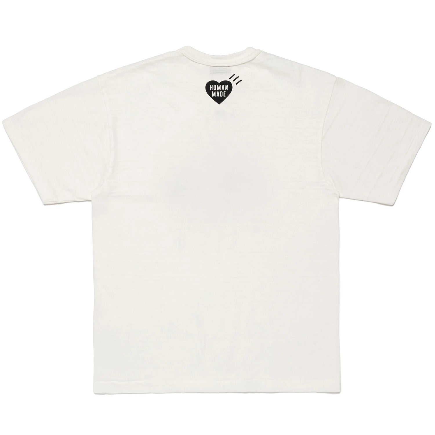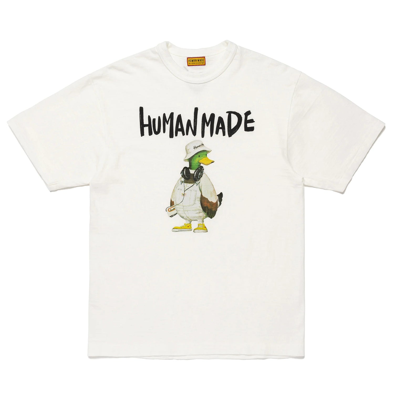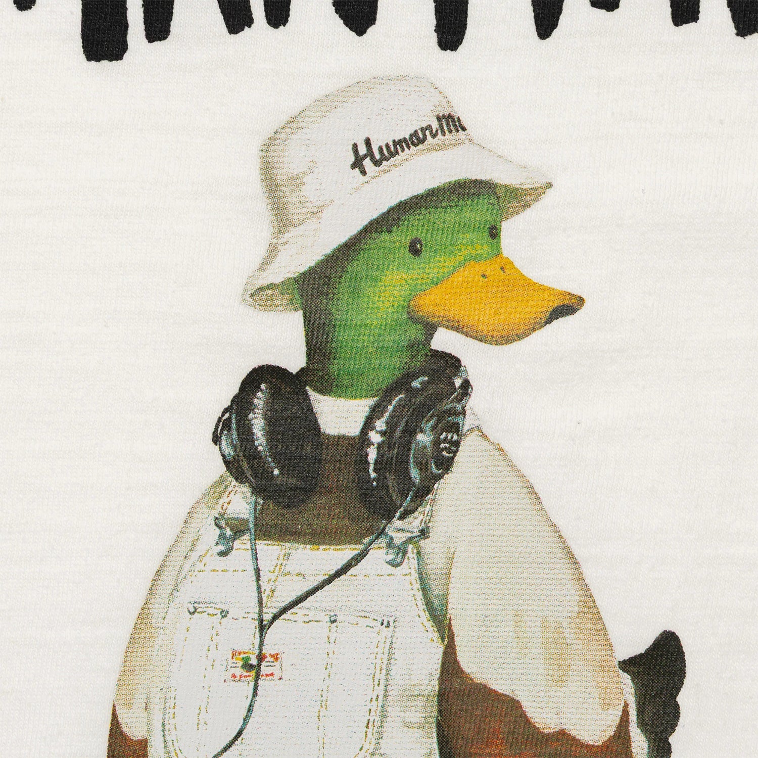 T-shirt made with HUMAN MADE’s standard rounded body. The use of slub yarn results in a soft texture, while a duck graphic adorns the front.
