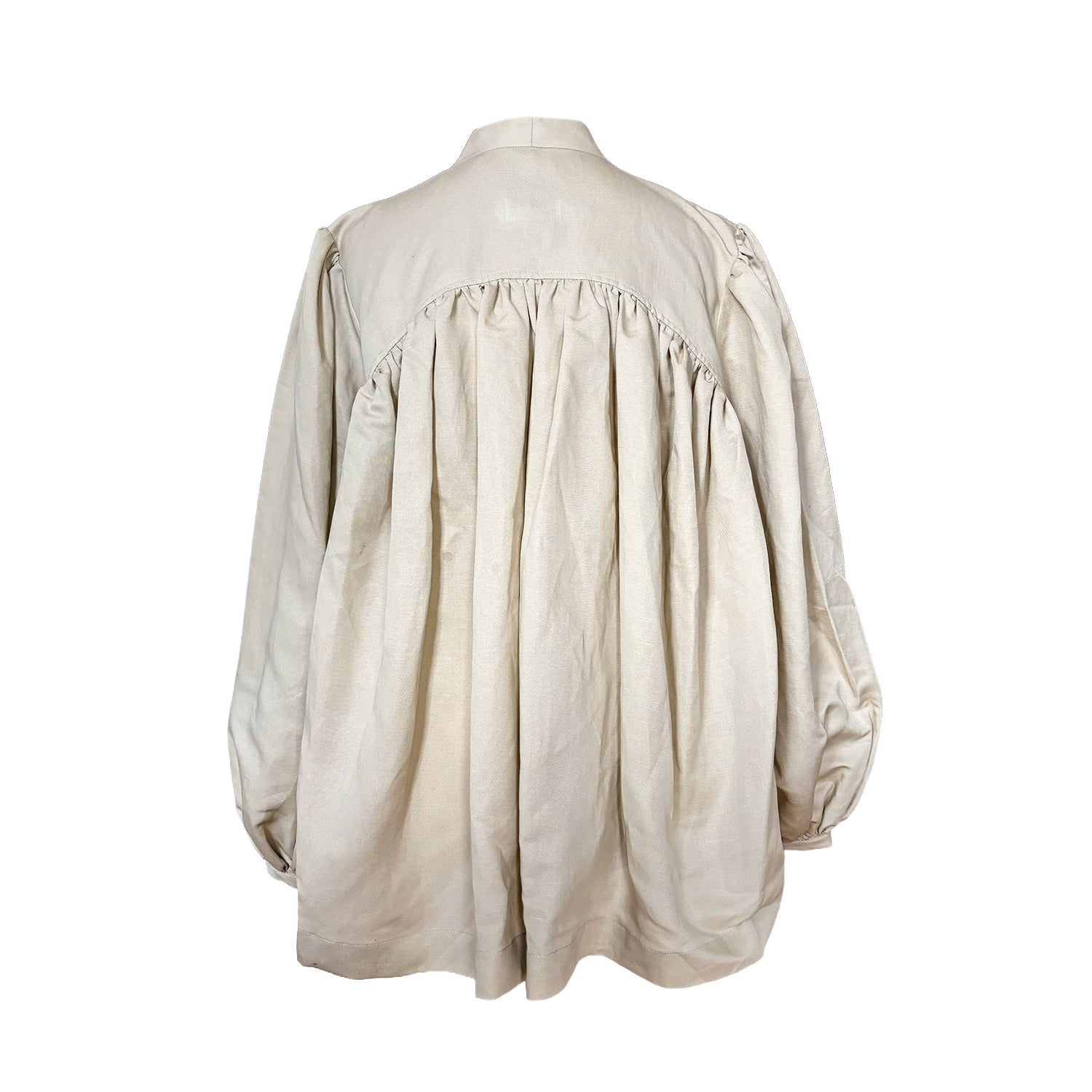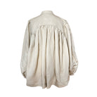 Inspired by the hanbok, Hana features an asymmetric front opening with a side bow detail. Puff sleeves and a gathered back yoke create volume reminiscent of traditional hanbok silhouettes. Crafted from natural fiber fabrics and finished with OHMA’s signature orchid embellishment.