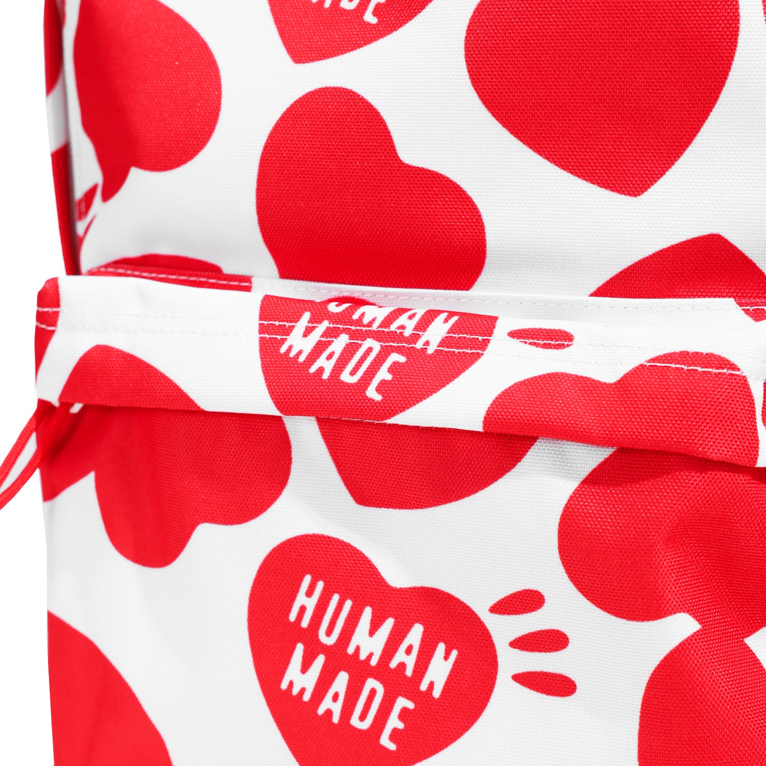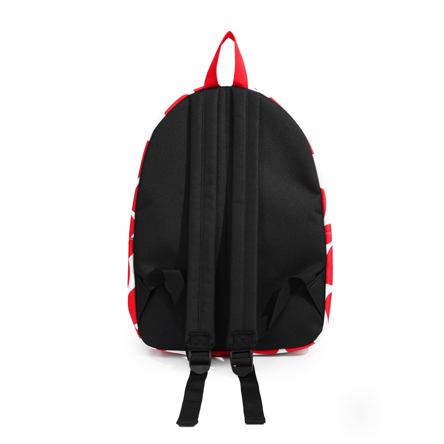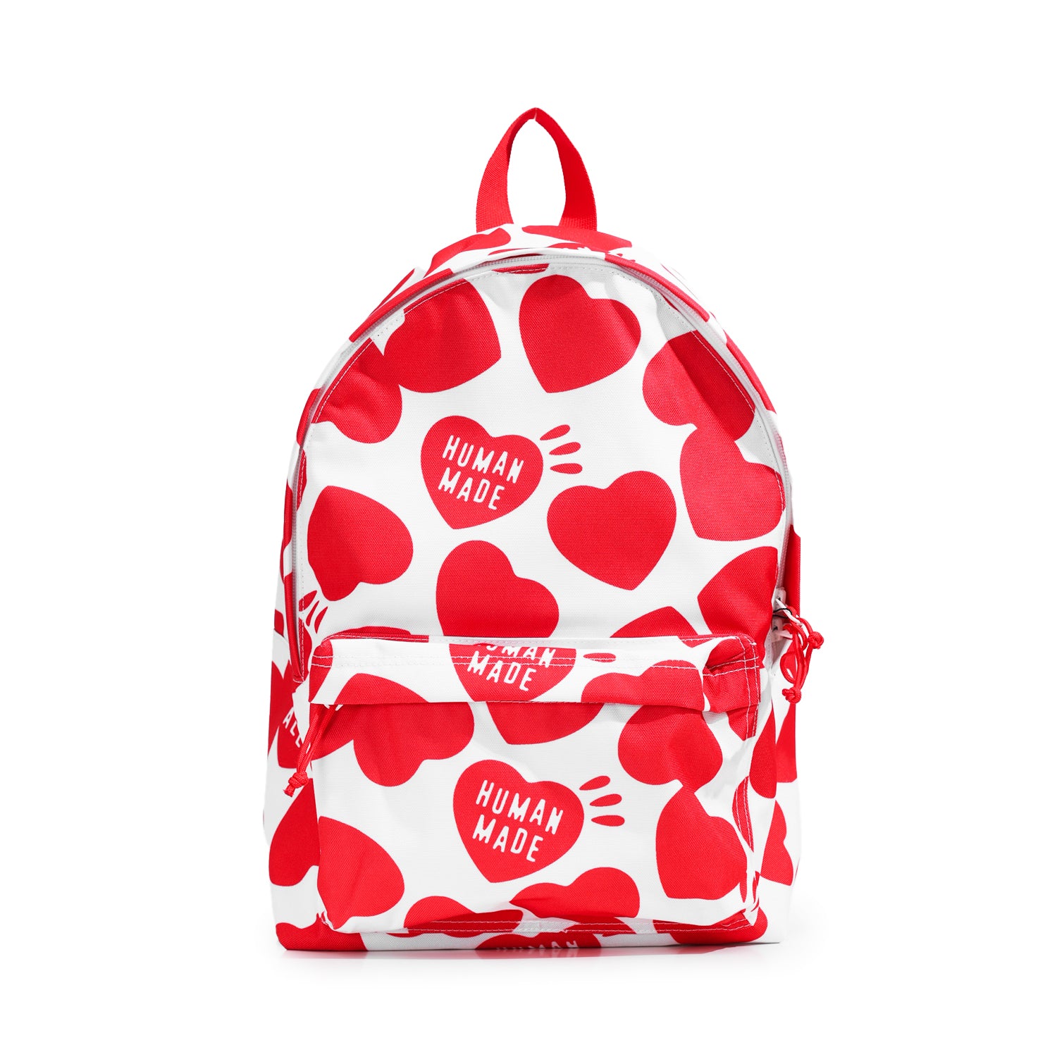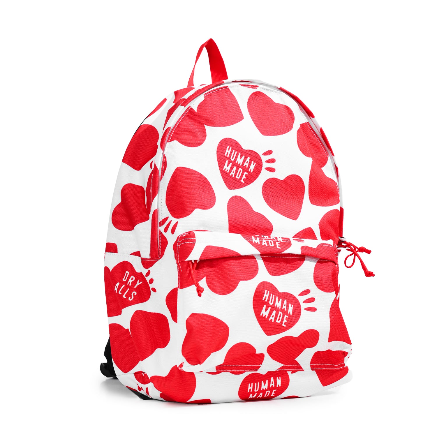 Polyester canvas backpack with an all-over heart pattern. The inside has a vinyl coating for extra protection against water and dirt, making it suitable for both daily use and outdoor adventures. Designed with a 17L capacity.