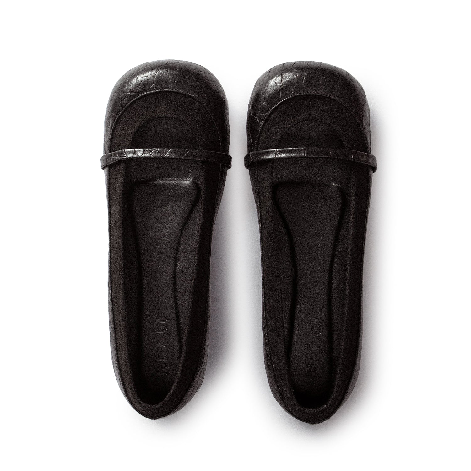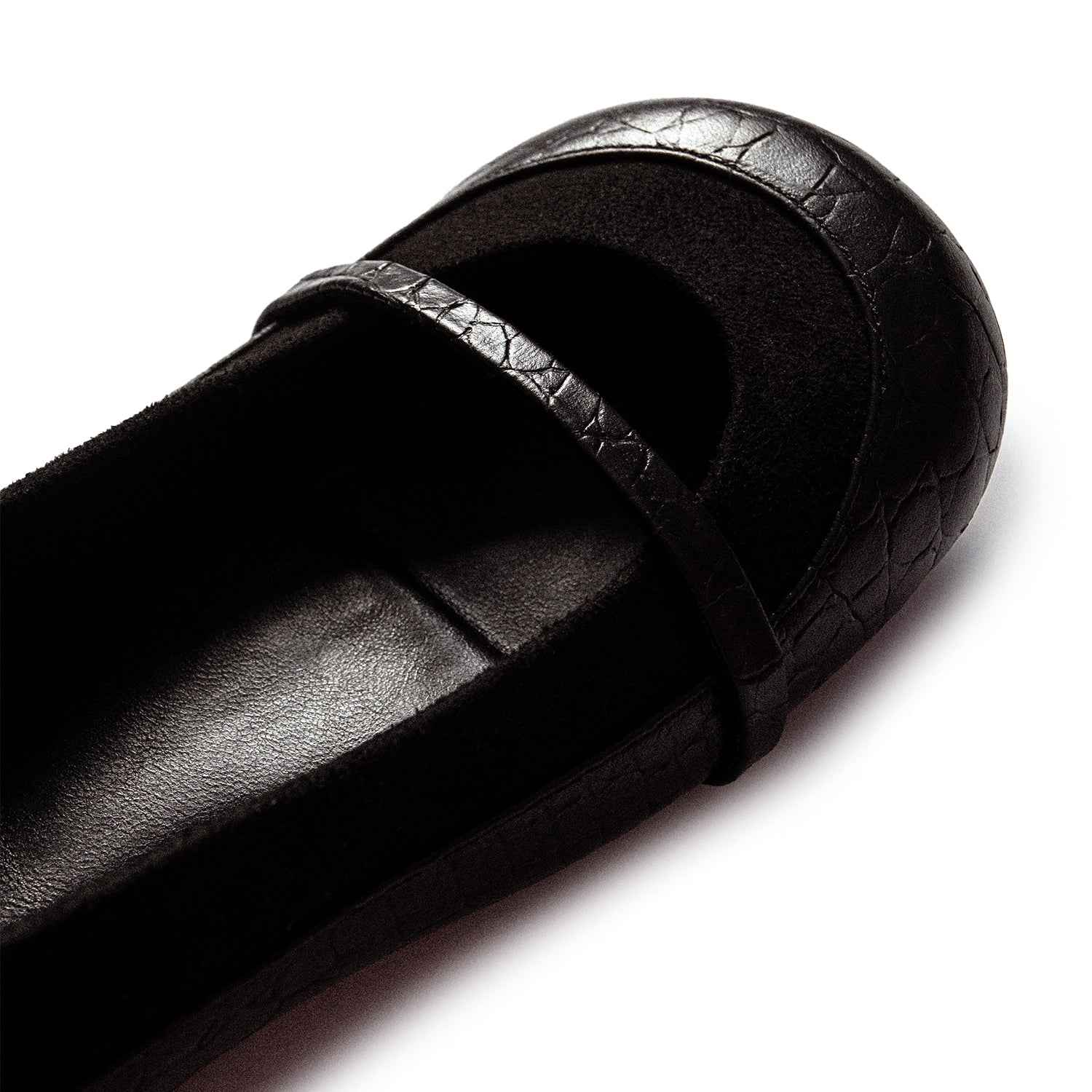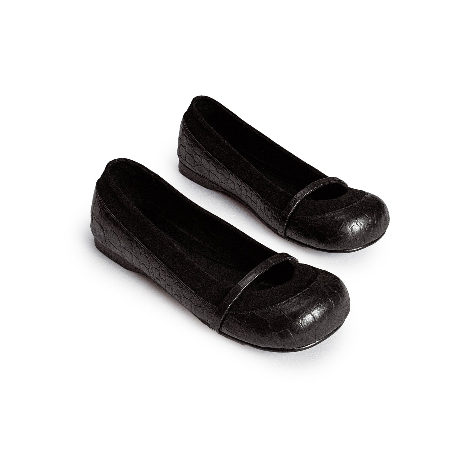A rounded toe flat shoe crafted in genuine leather featuring a thin line of leather detail in the upper front.