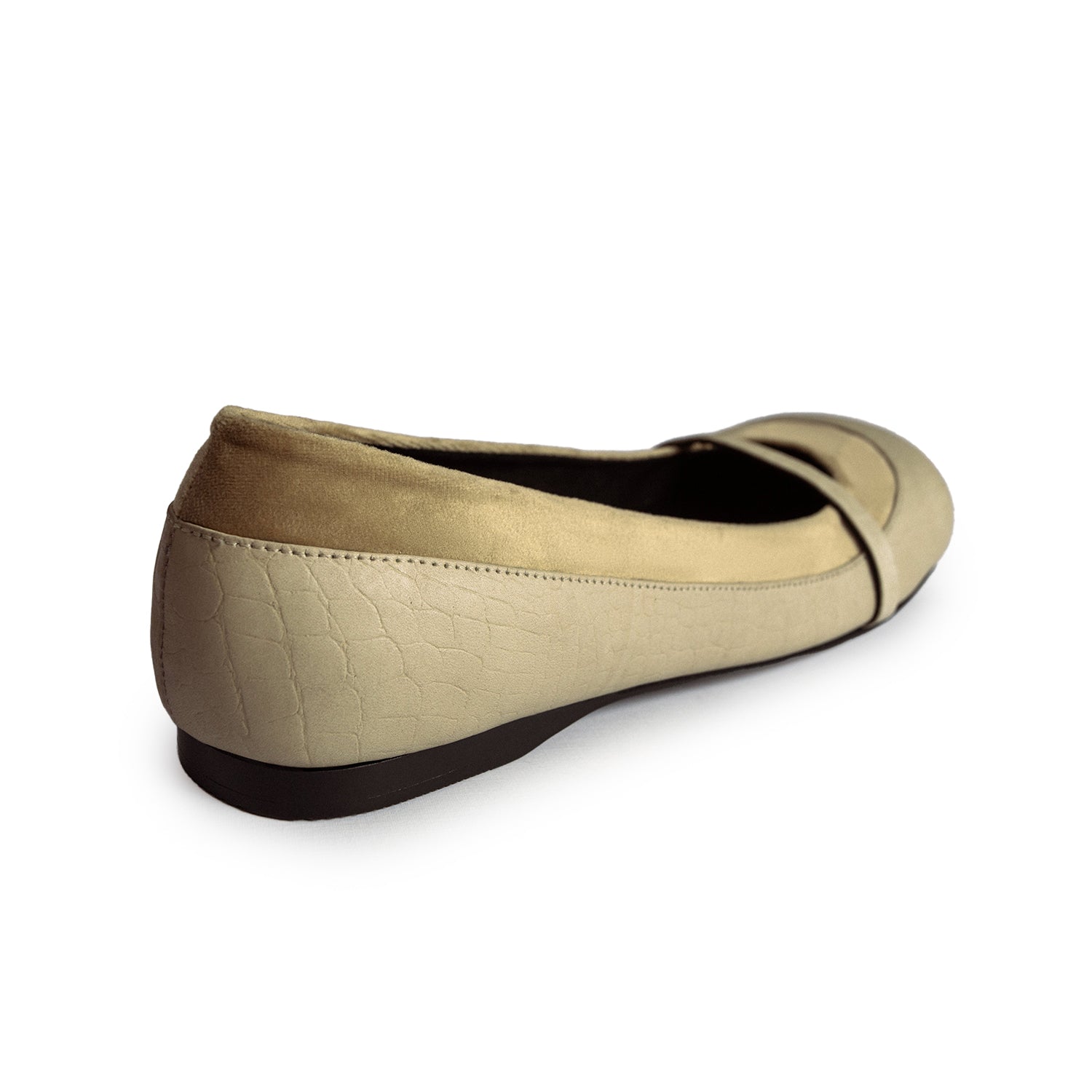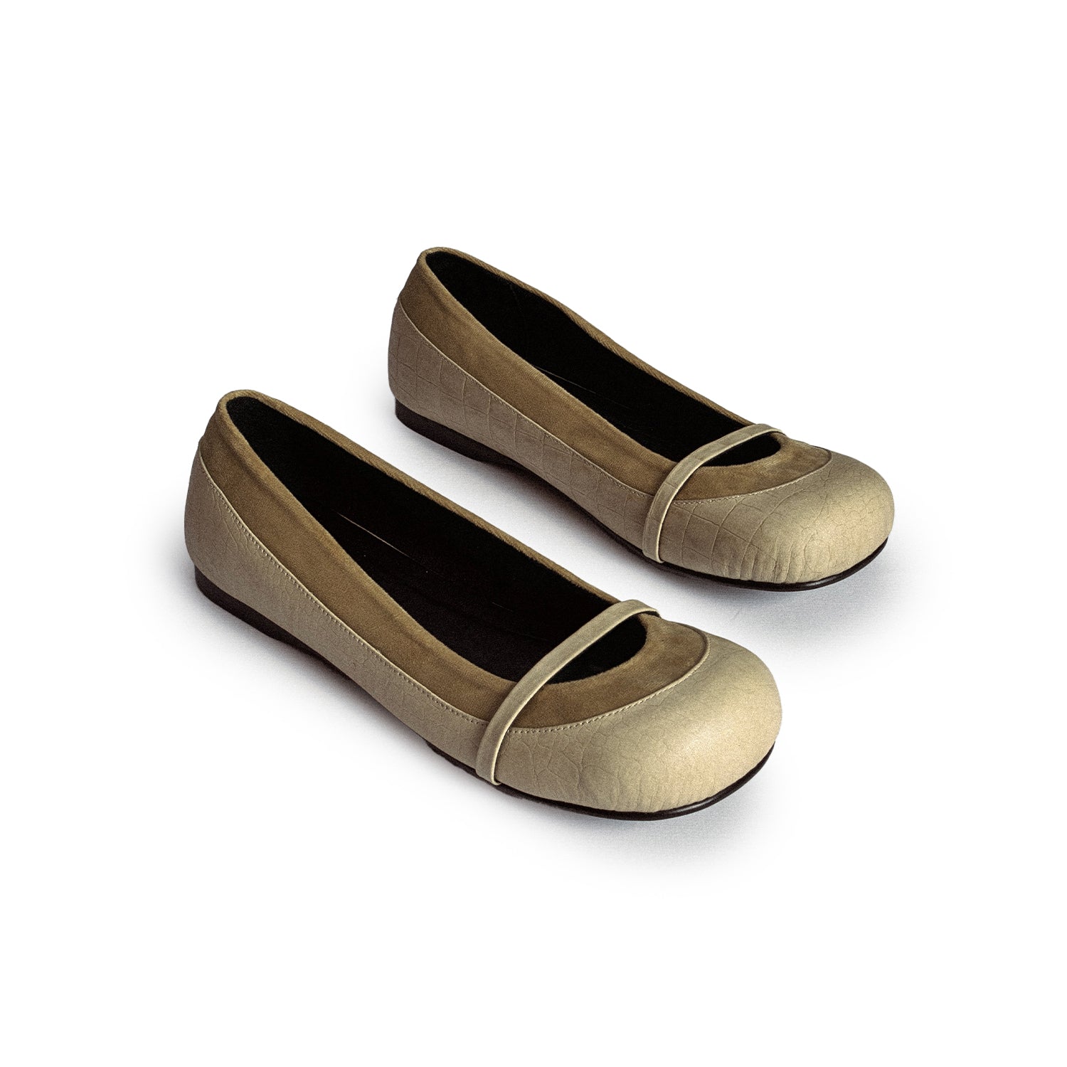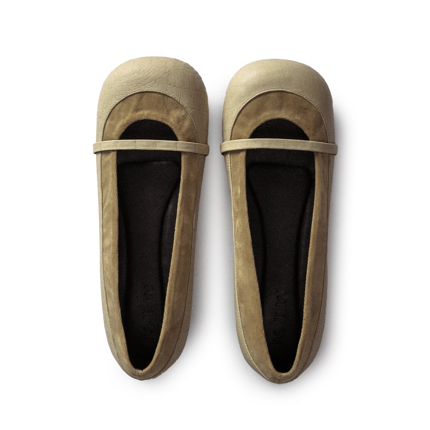 A rounded toe flat shoe crafted in genuine leather featuring a thin line of leather detail in the upper front.