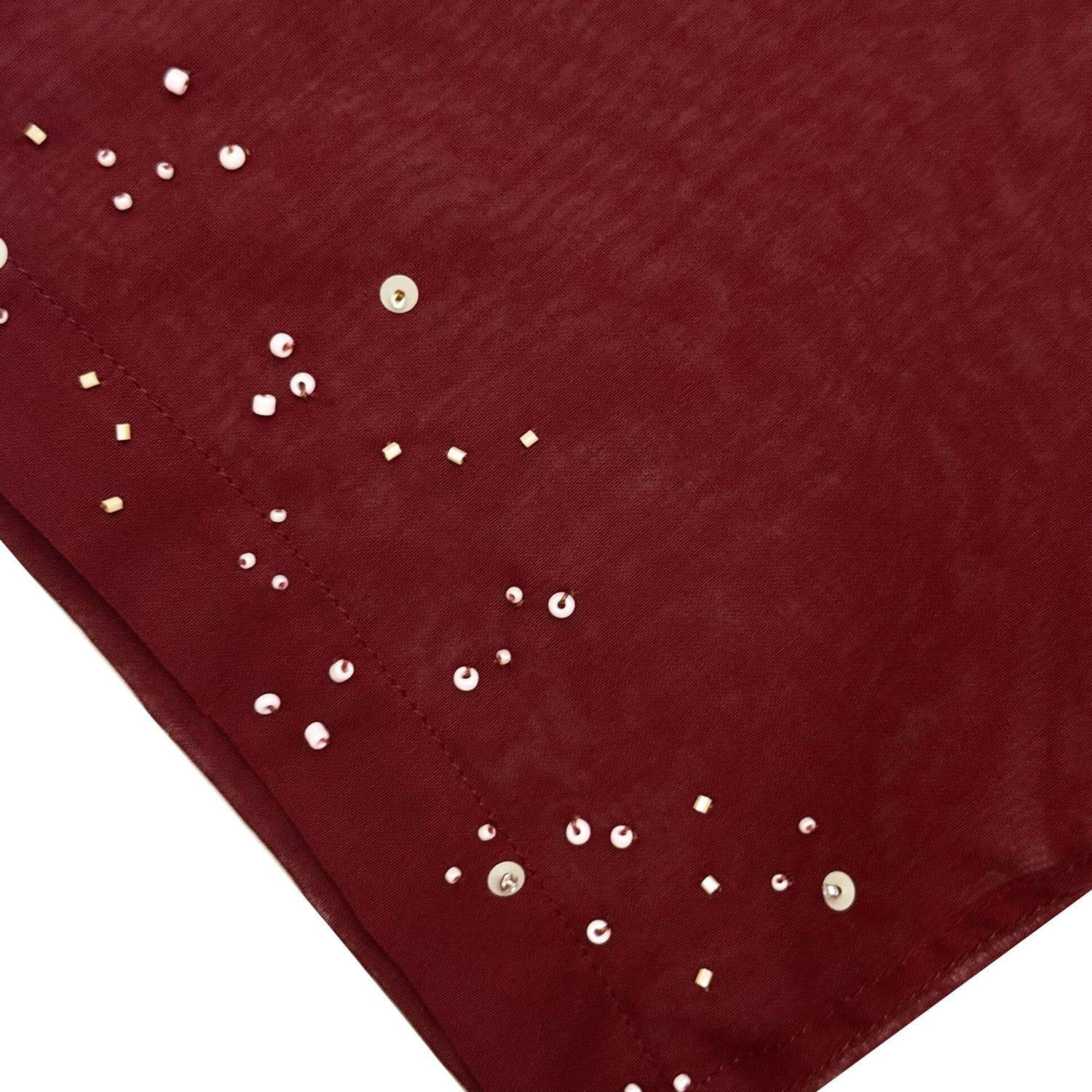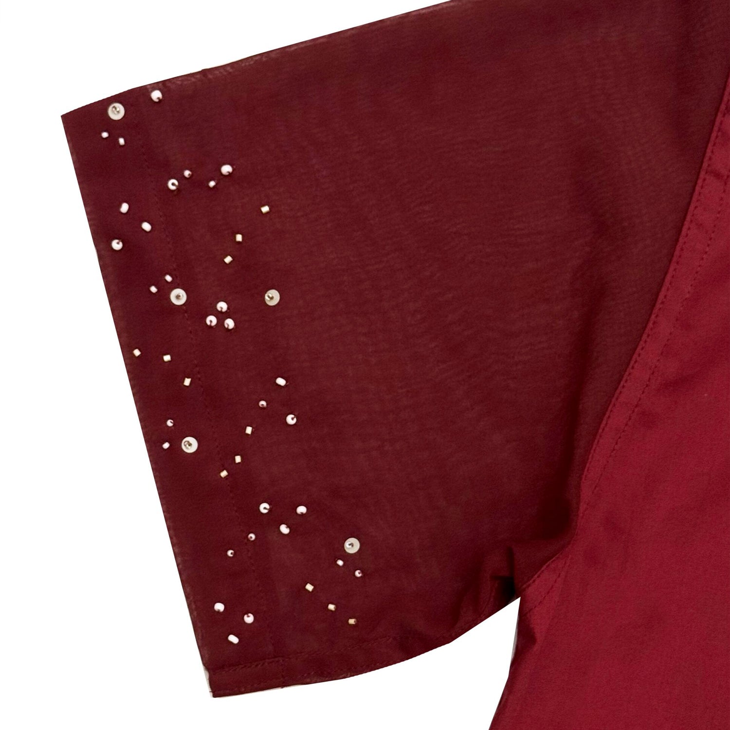Boxy cut short sleeve shirt constructed of a mix of cotton-poplin & voile fabric made in oversized fitting. Adorned with subtle hand-beaded embellishments on the sleeves, neatly finished with Mote Mote’s buttons.