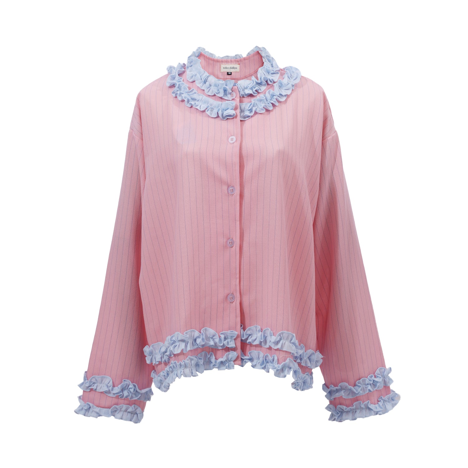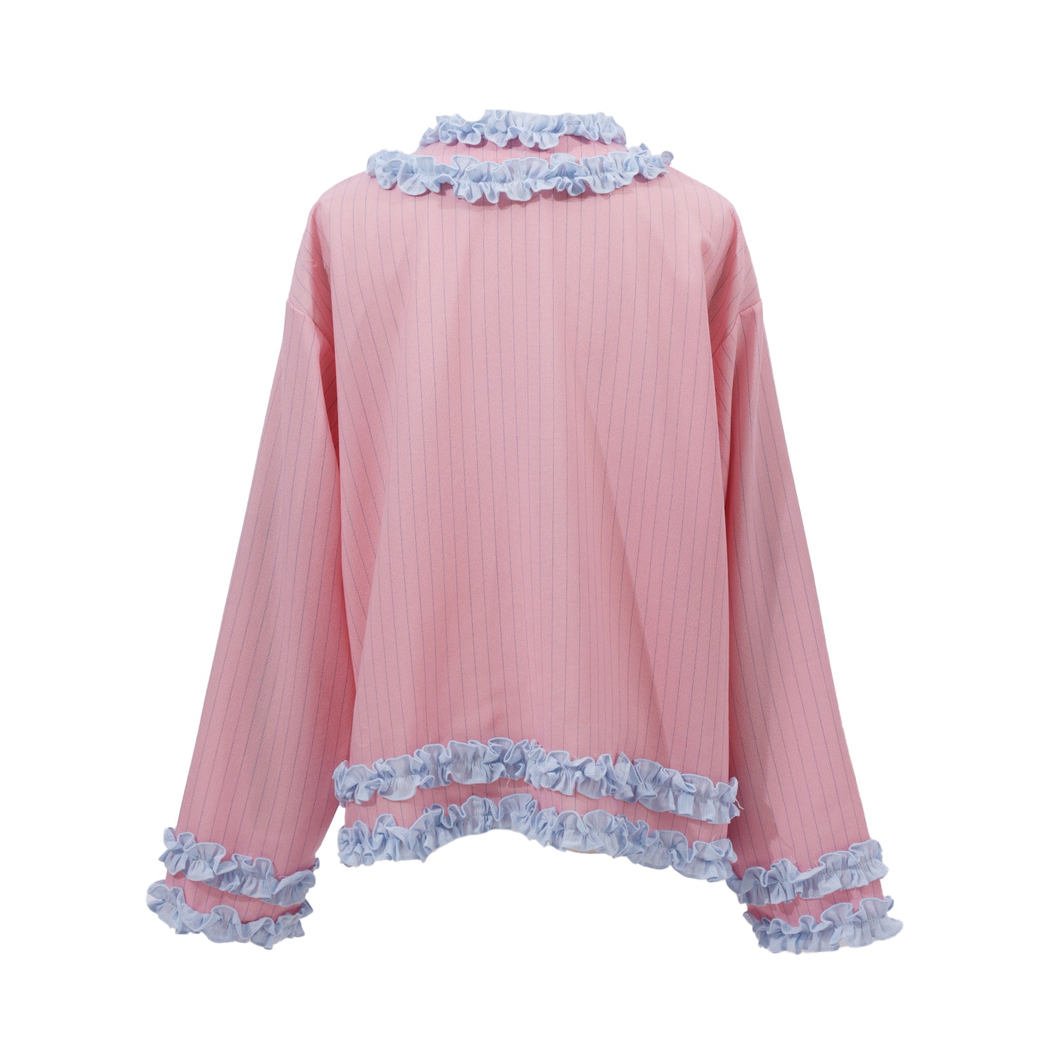 A jacket made from cotton, featuring frill details along the neckline and cuff.