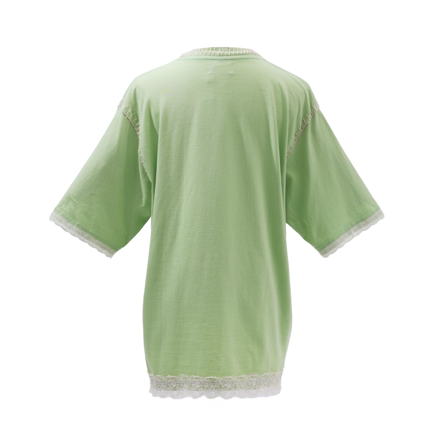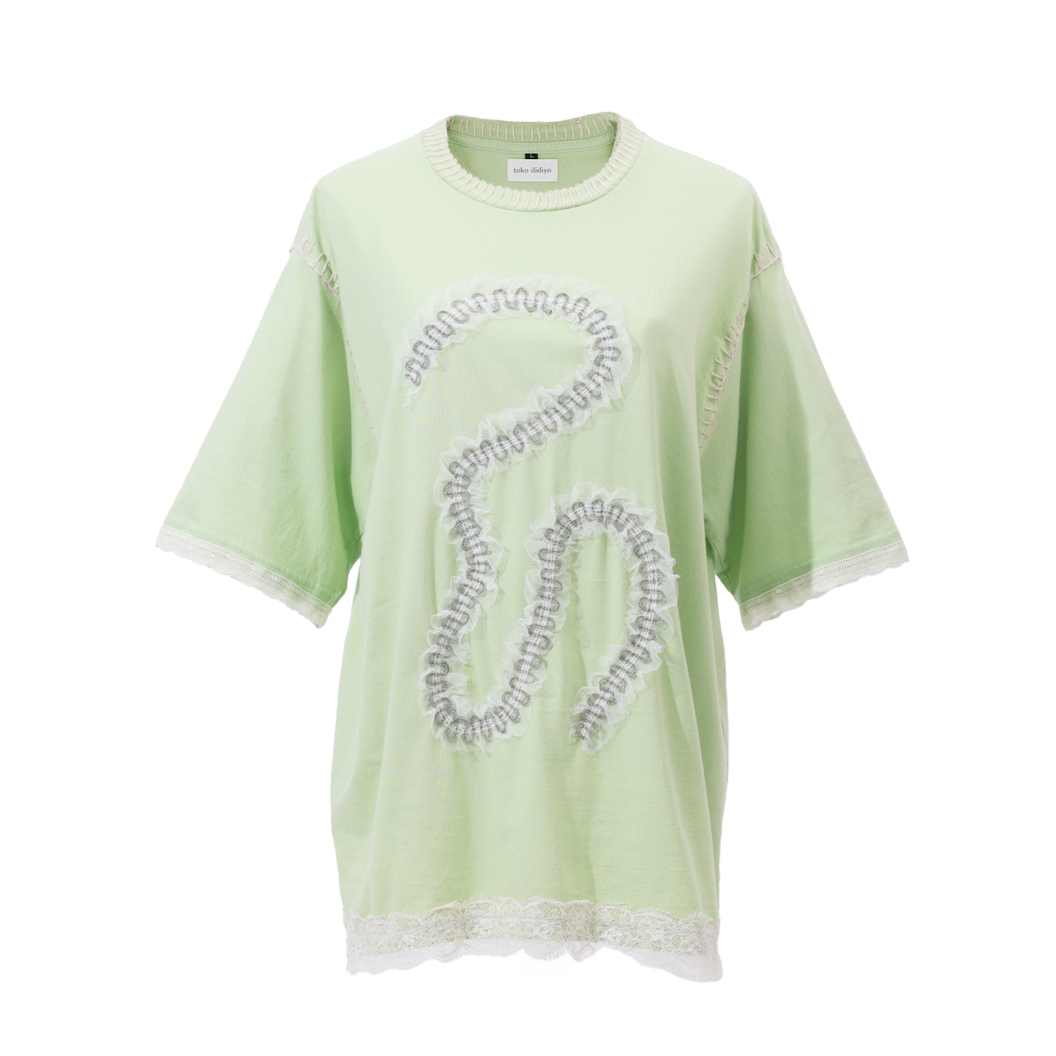 A t-shirt made from cotton with lace details at the front, hand sticthes at the neckline, and delicate lace trim along the hem.