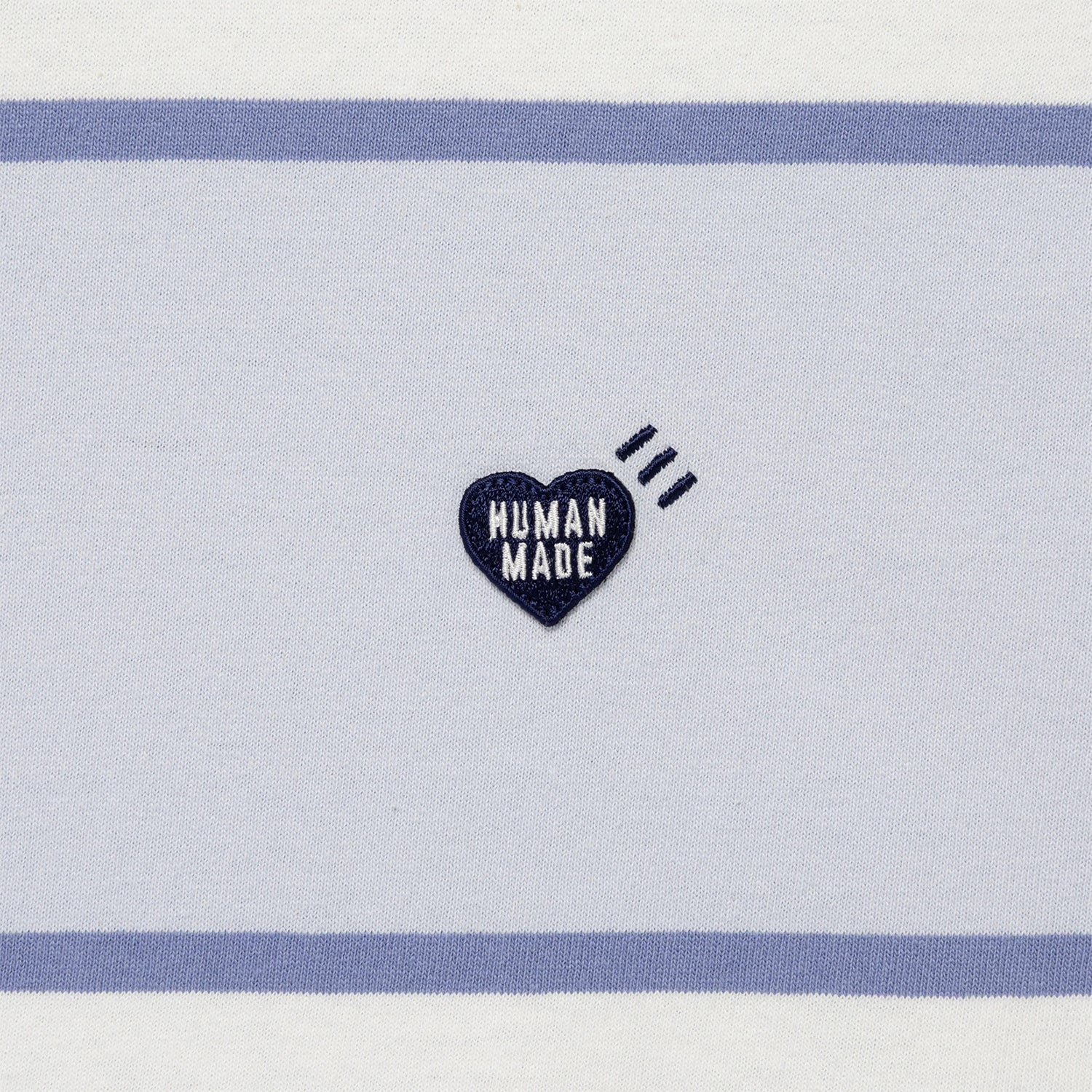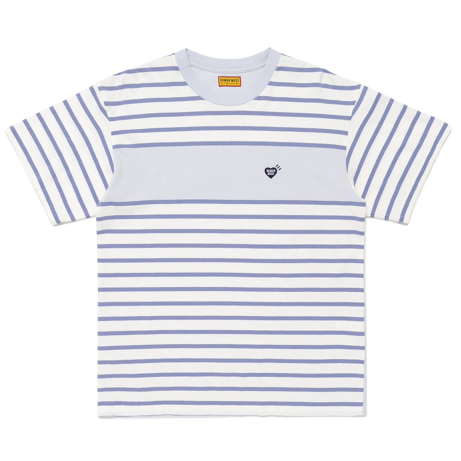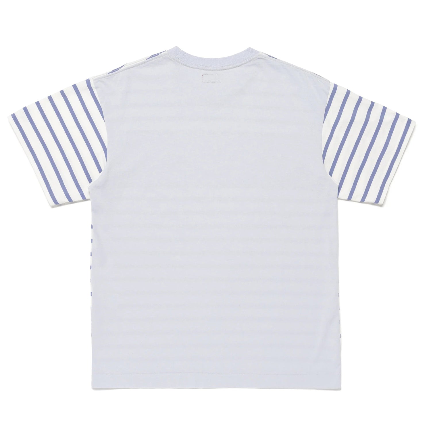 Cotton T-shirt with a striped panel design. The use of yarn dyeing produces a unique texture, while the stripes and colors combine for a distinctive look.
