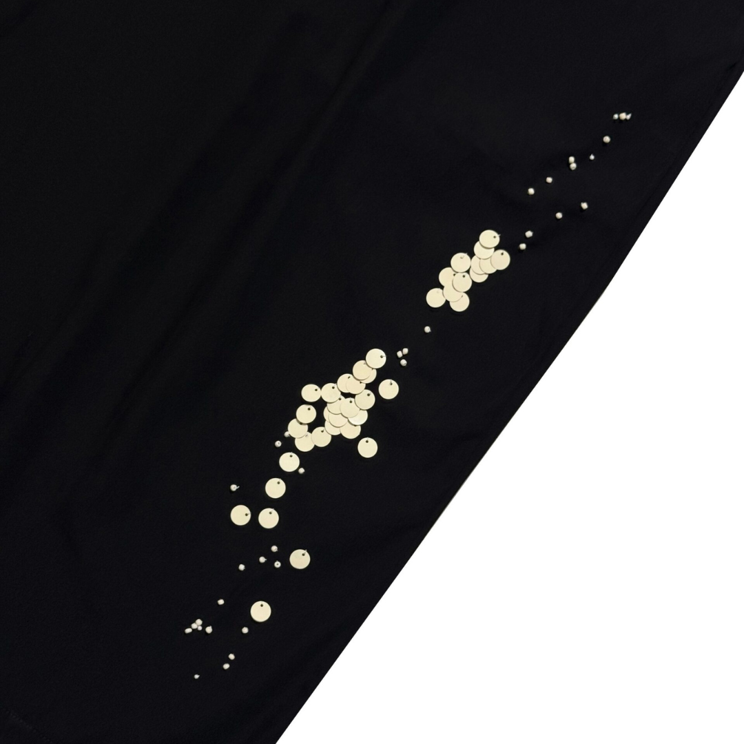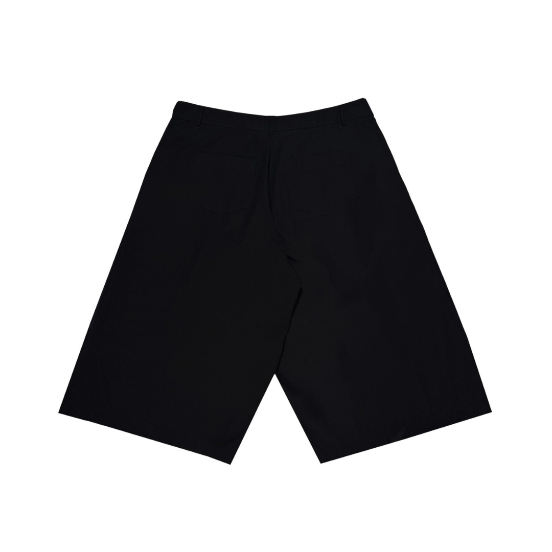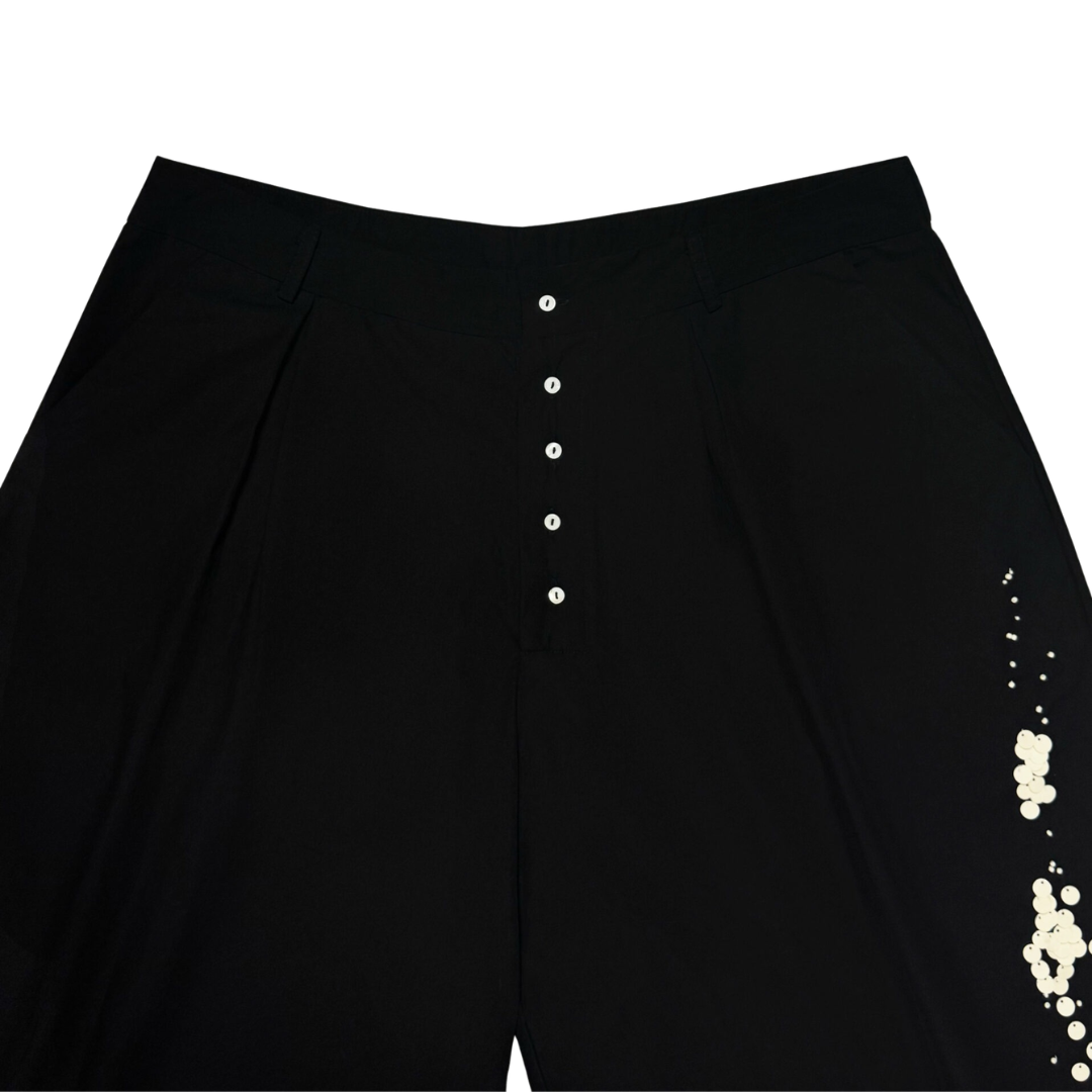 Wide-leg bermuda shorts designed in a mid- rise fit with pleated front detailing and belt loops. Finished with a button-up front closure and side pockets for functionality. Accented with hand-beaded embellishment on the side for a refined, playful touch.