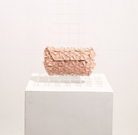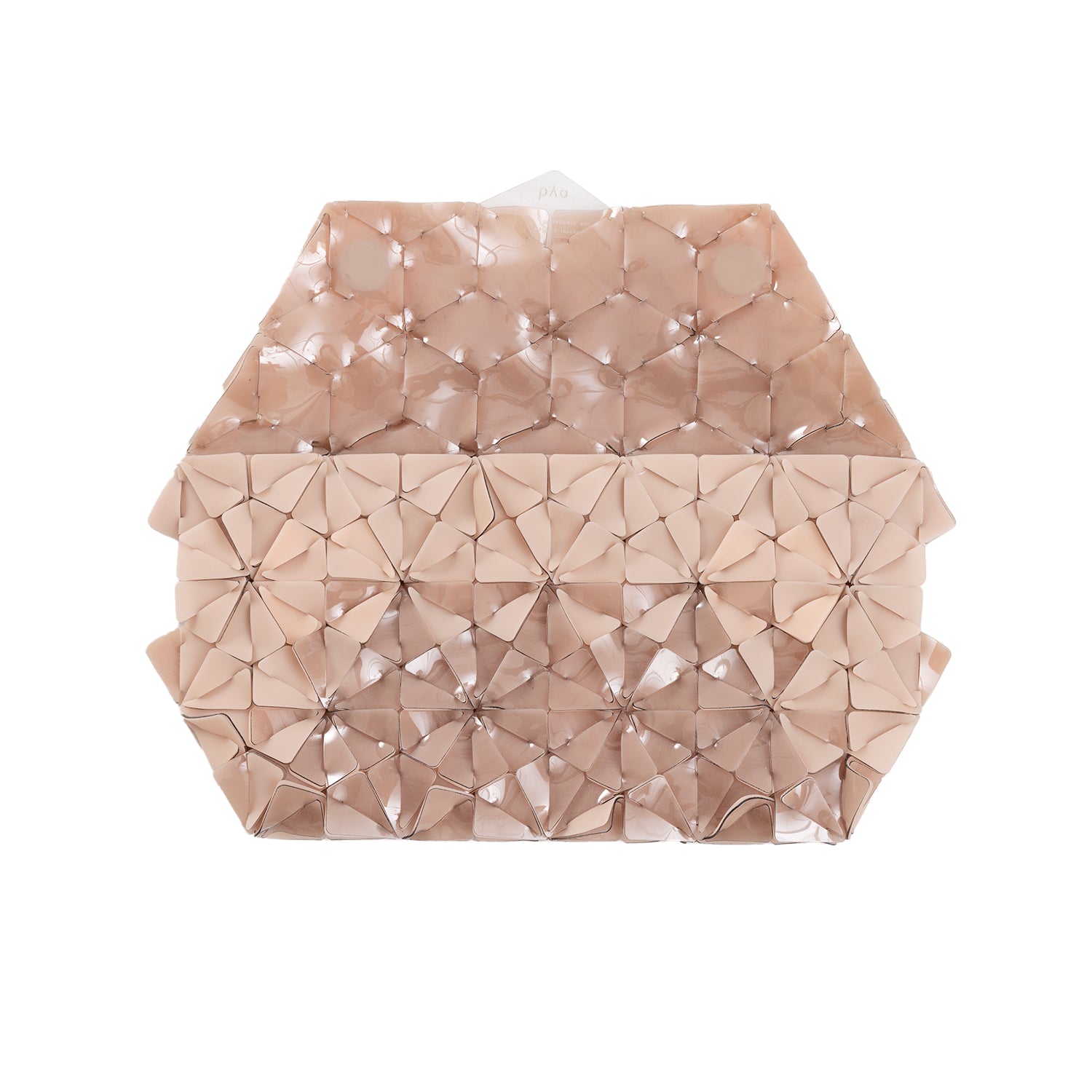 Machine-cut, Hand-woven geometric clutch held together by an interwoven right triangle shape. Soft and comfortable to hold 3D surface texture with rounded corners. Features a magnetic flap and a laser-cut acrylic label. Fits phones, keys, wallet, compact, or any of your everyday objects. D-rings are available for straps.
