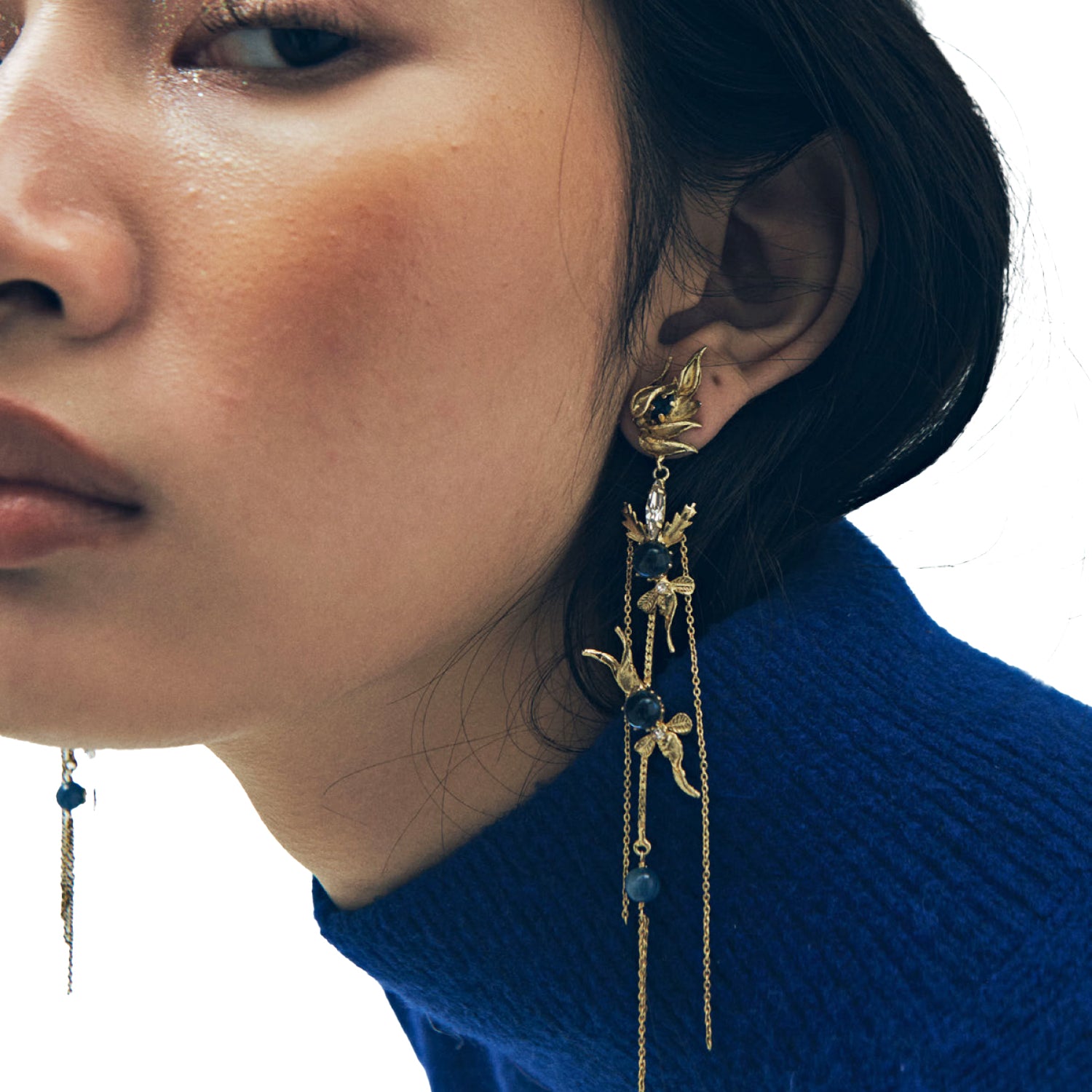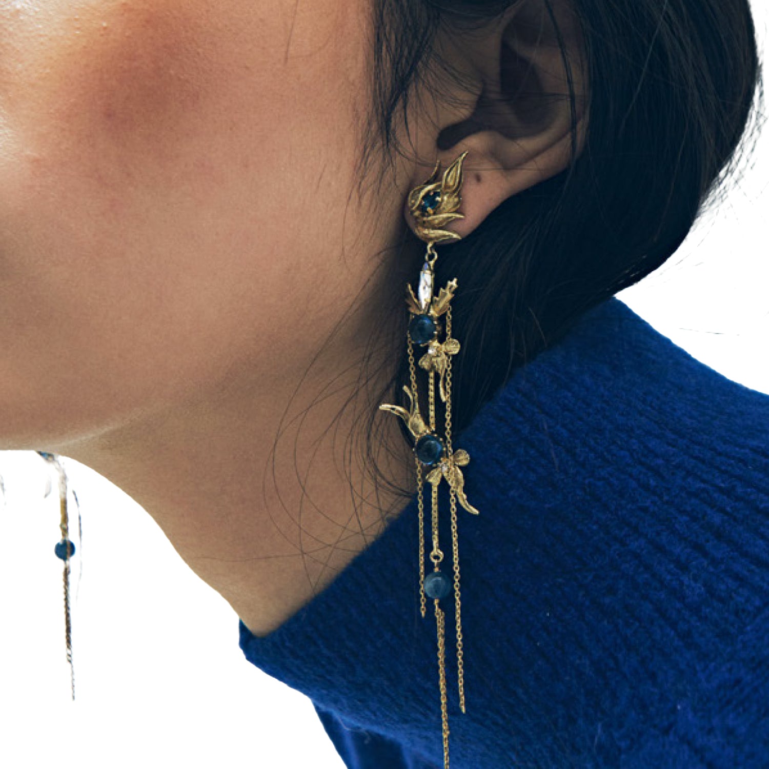 Material info : Brass, Gold Plated, Zircon, Swarovski, Stone Montana Cabuchon