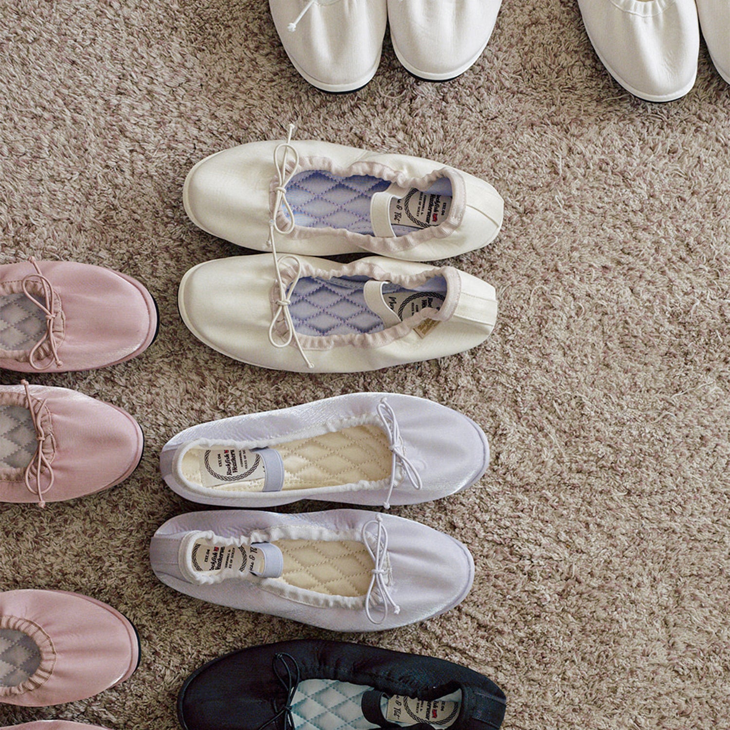 The natural scrunch detail on the instep adds a feminine yet ballet-core vibe. The instep band made of elastic material lightly holds the foot, making it very stable when wearing.