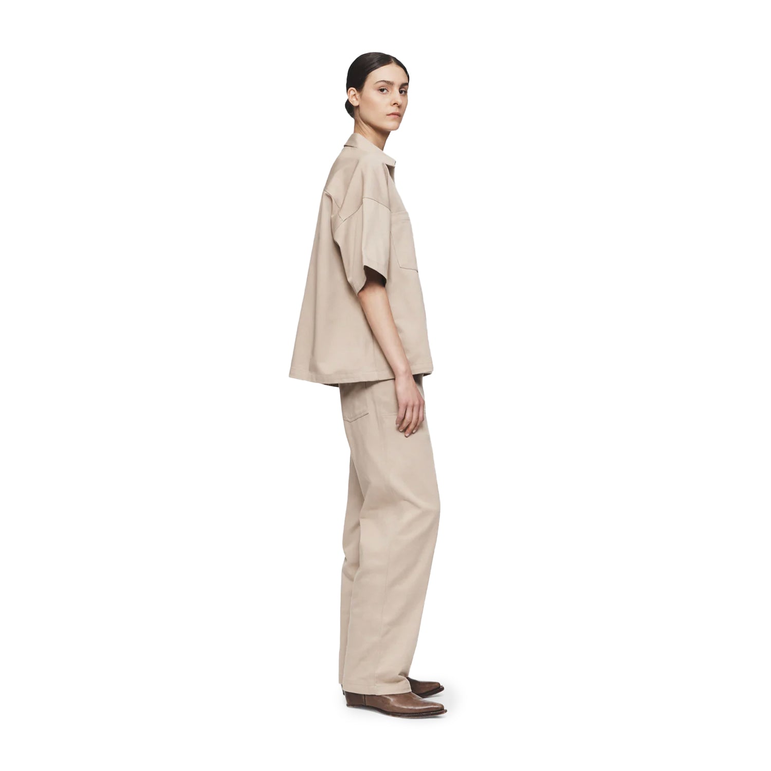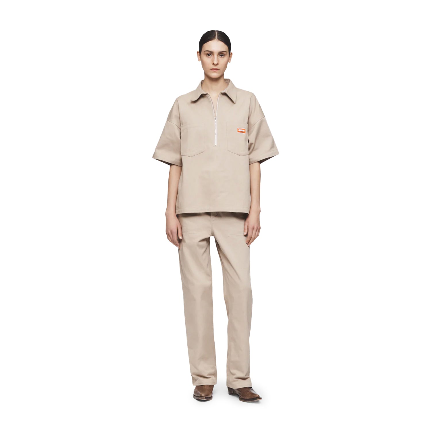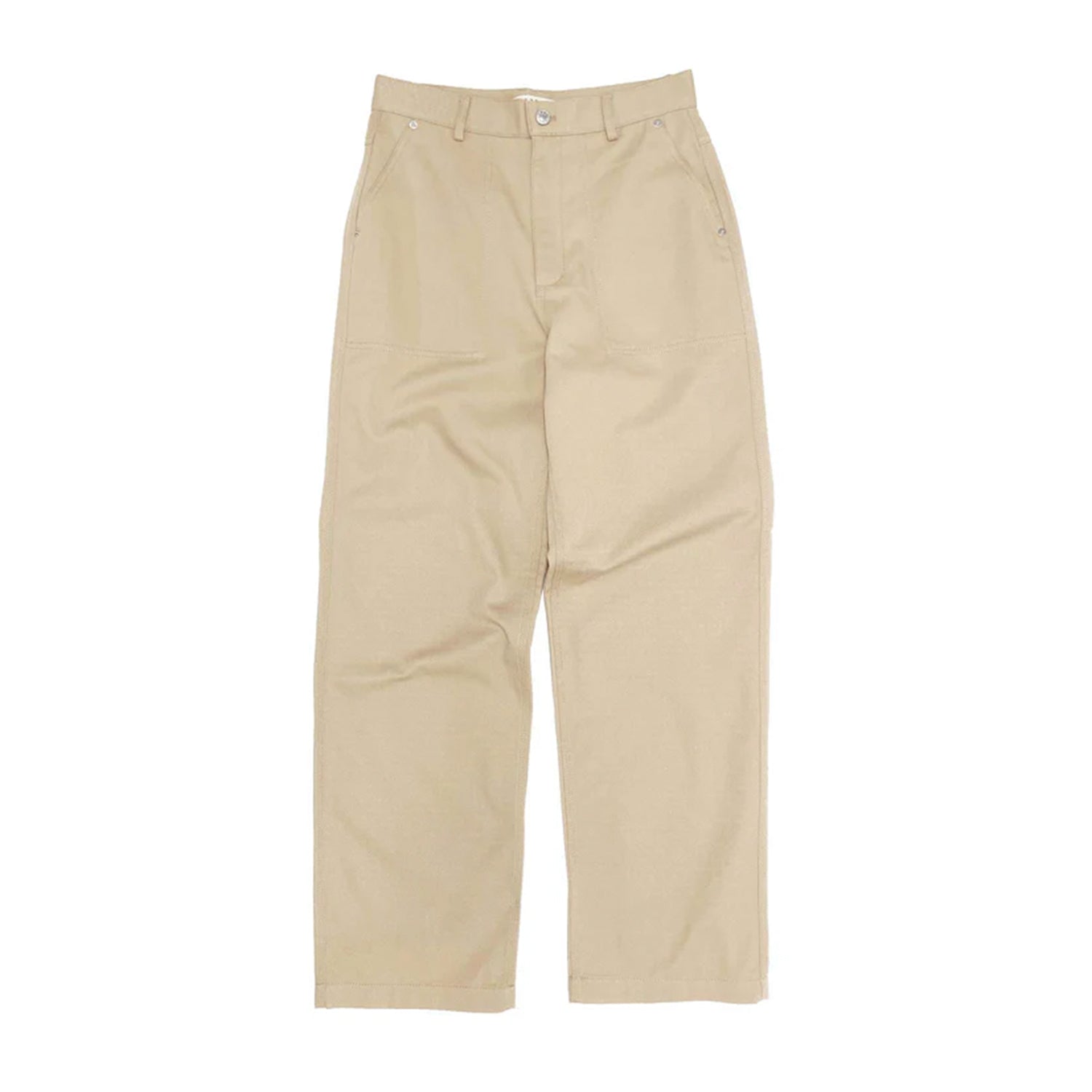 The Carpenter Pant sits on your high-hip comfortably and has a relaxed, straight leg. Flat front with button and zip closure. Front patch pockets with rivet detail, back patch pockets with 6397 brand tag. Cut in a Japanese cotton and poly blend twill, it has a soft hand.