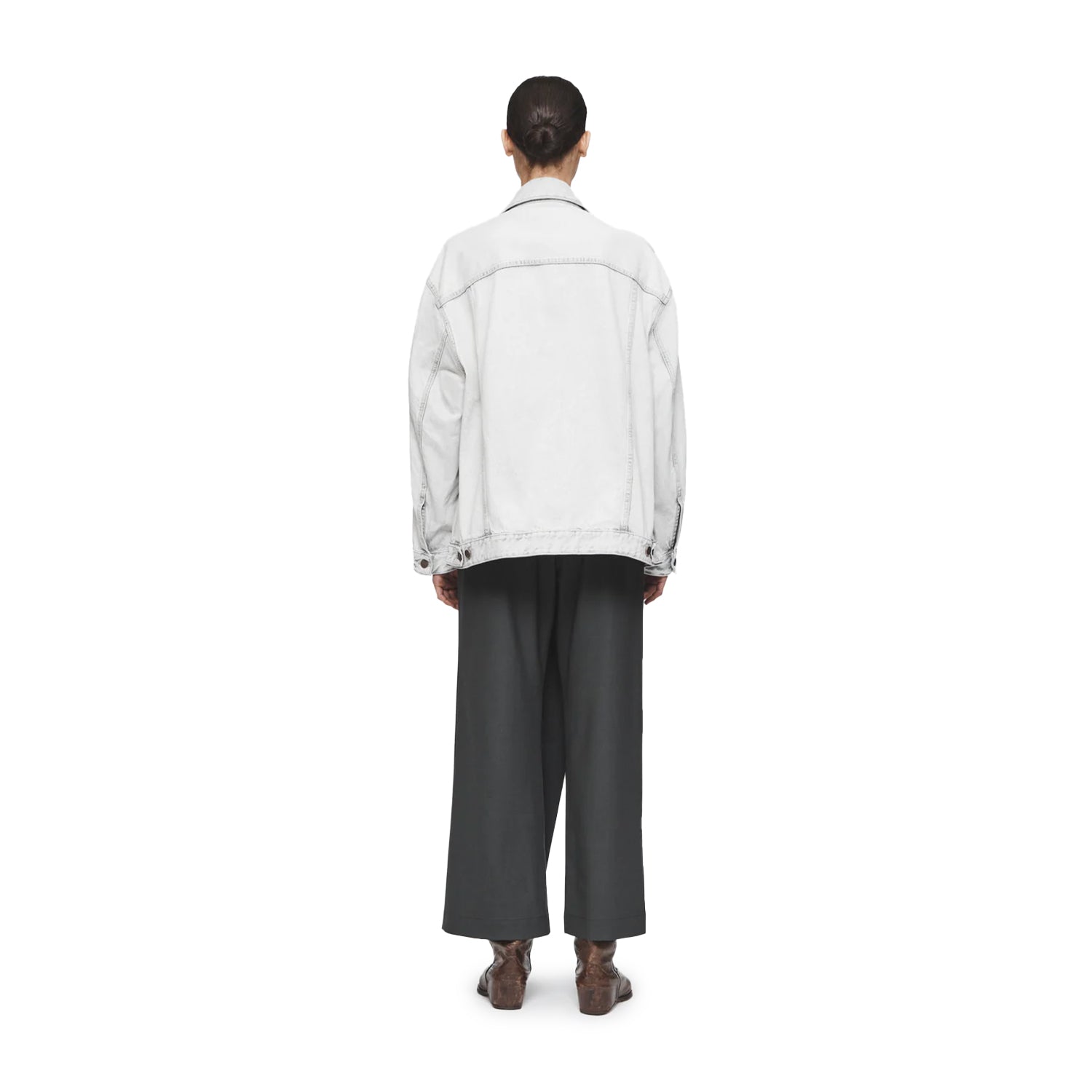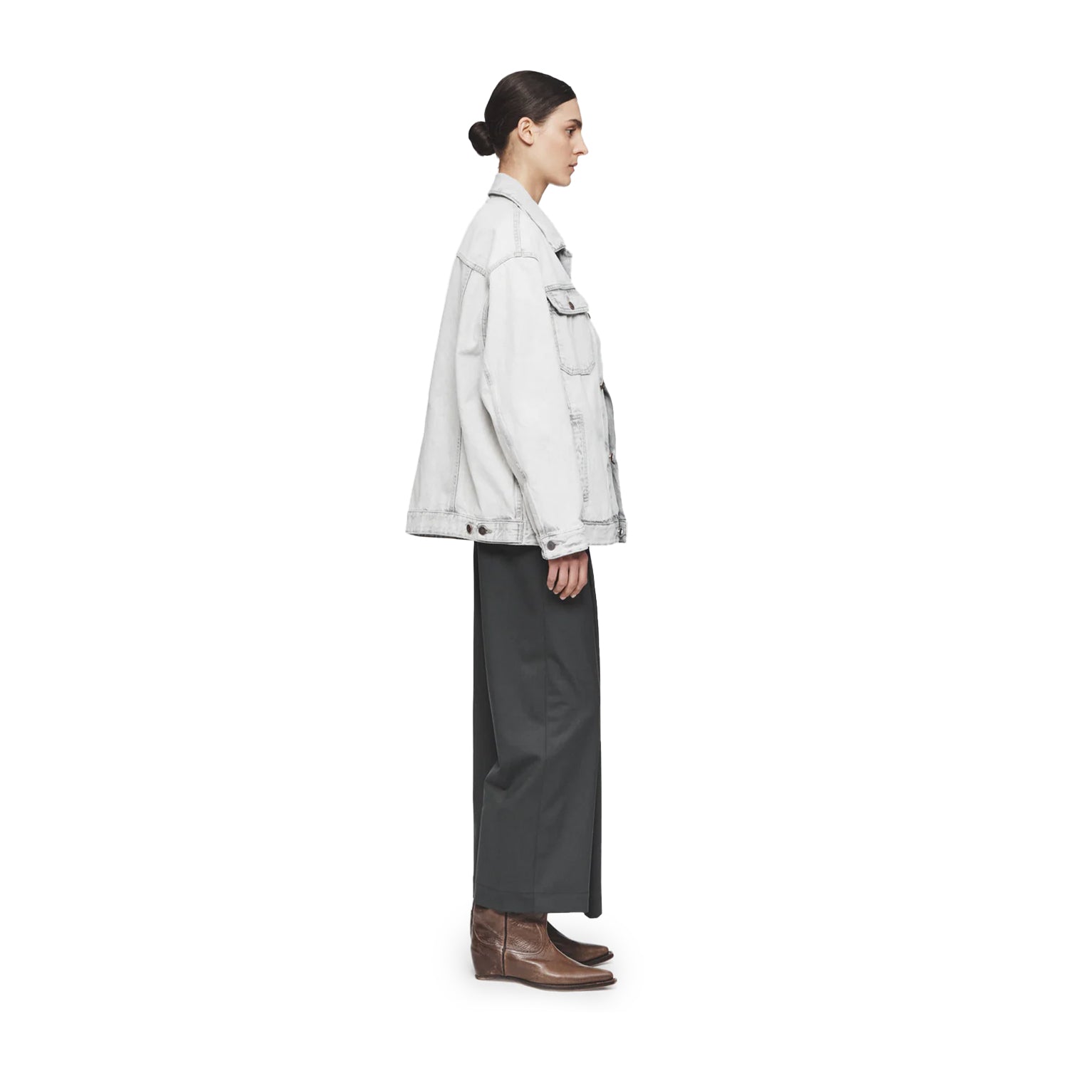 Our Oversized Denim Jacket in a stonewashed "superlight" grey. The Oversized Denim Jacket has new and fresh proportions which breathe life into a classic wardrobe staple. Boxy, oversized fit with big chest pockets and collar. Front welt side pockets.