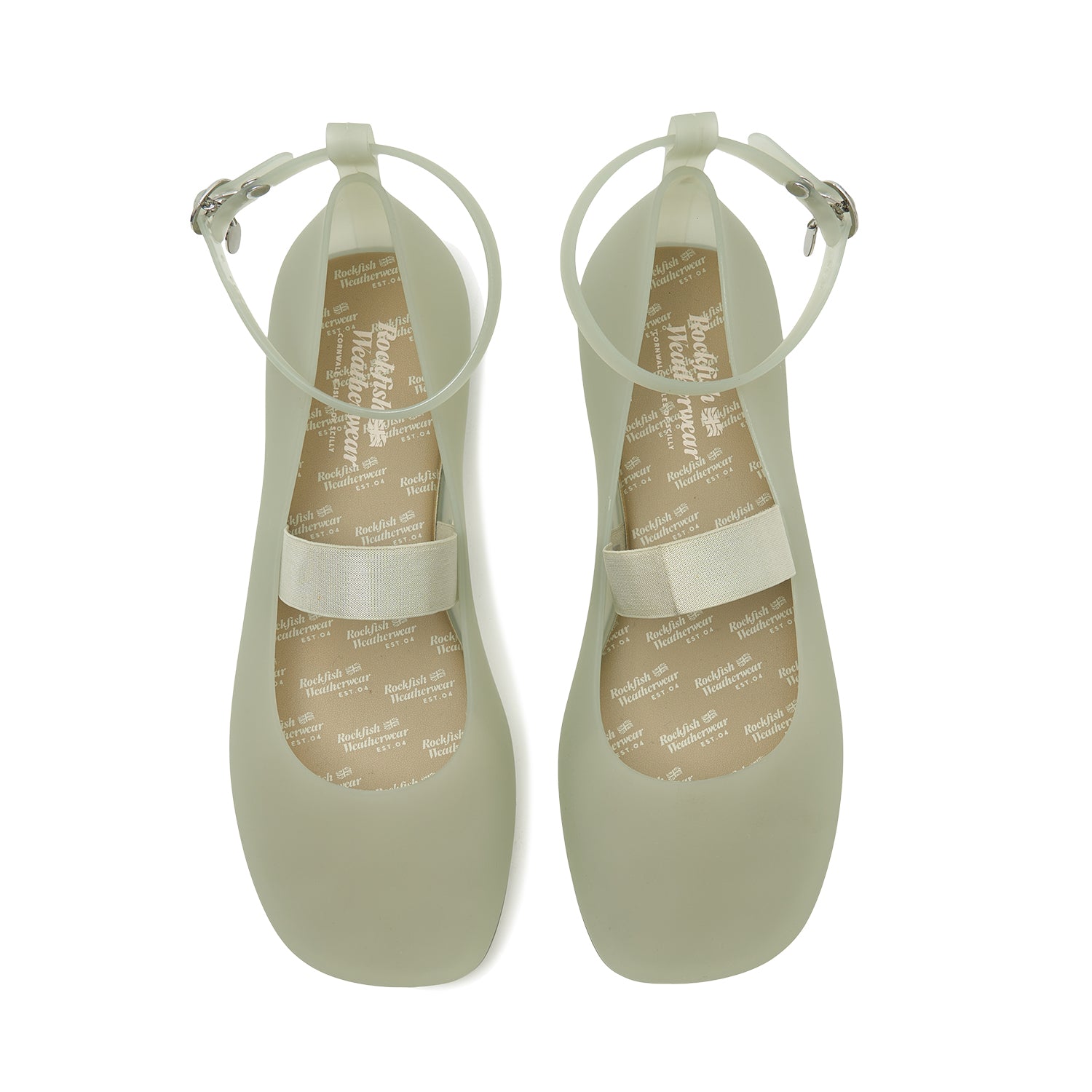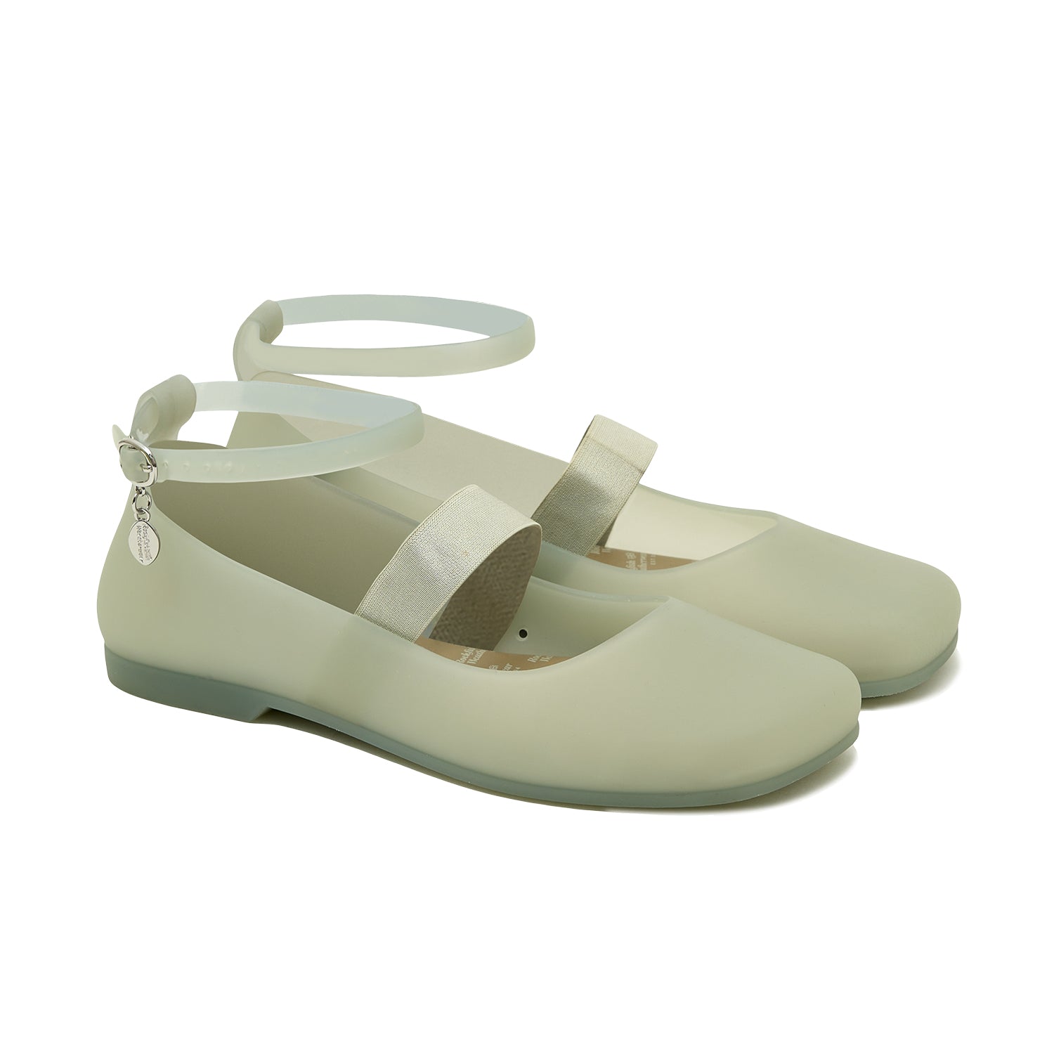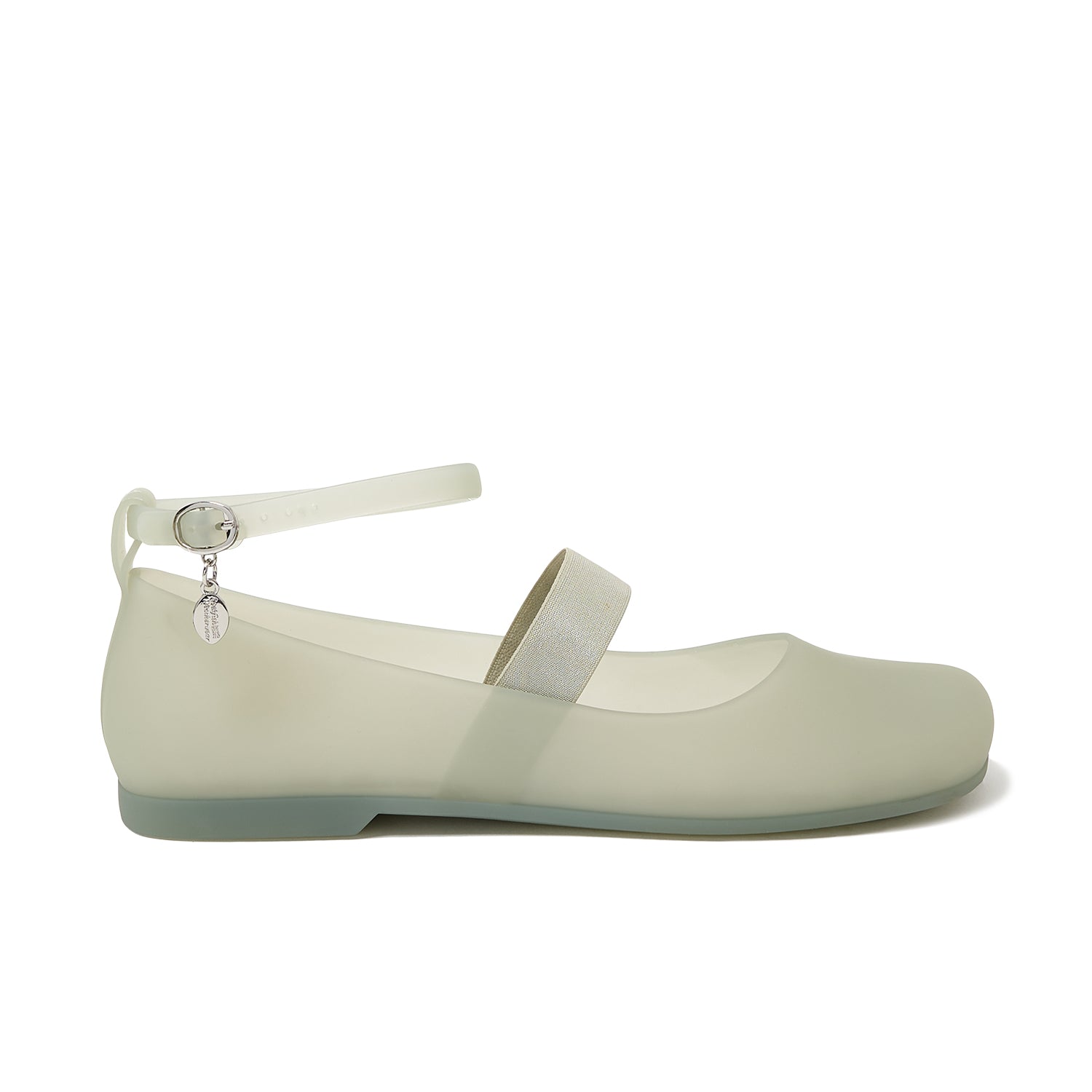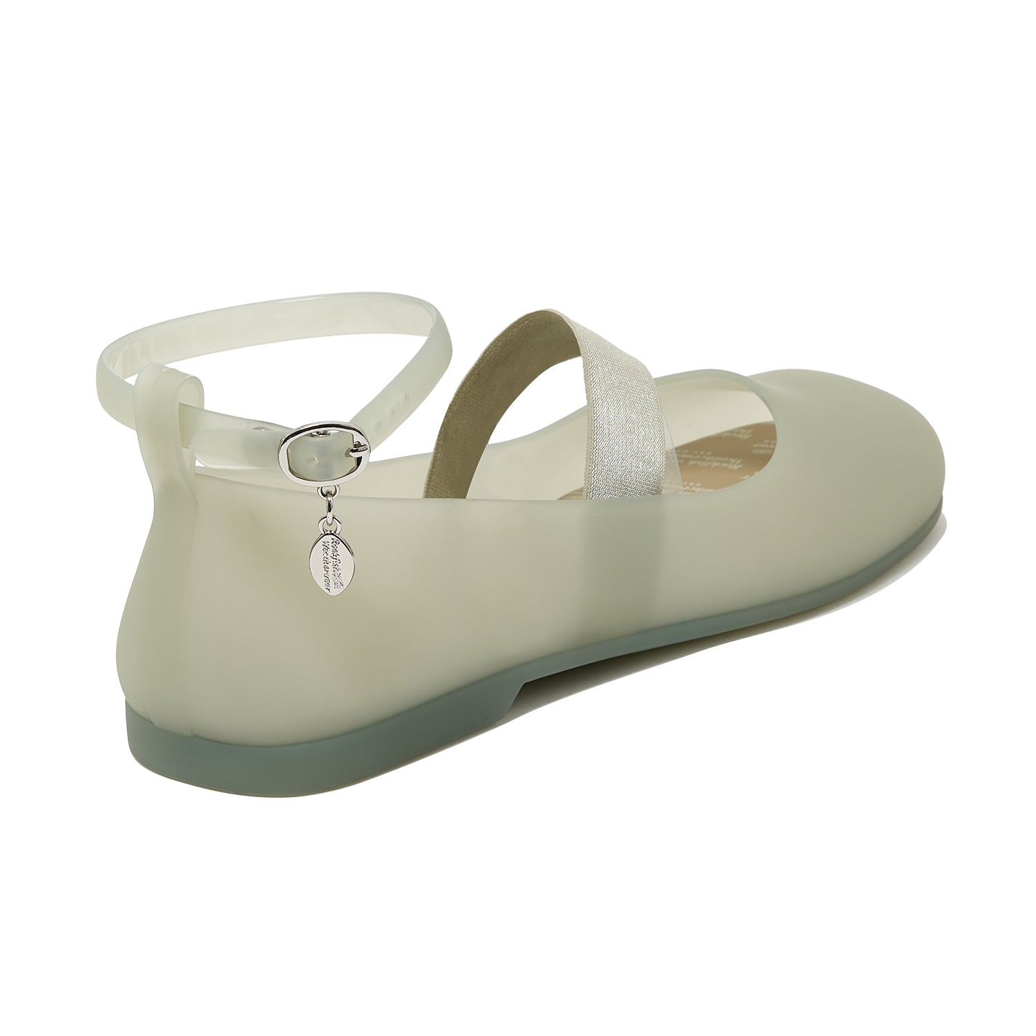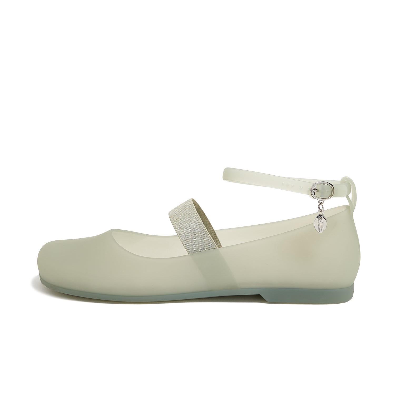 These jelly flats feature a square toe shape and a buckle charm detail.